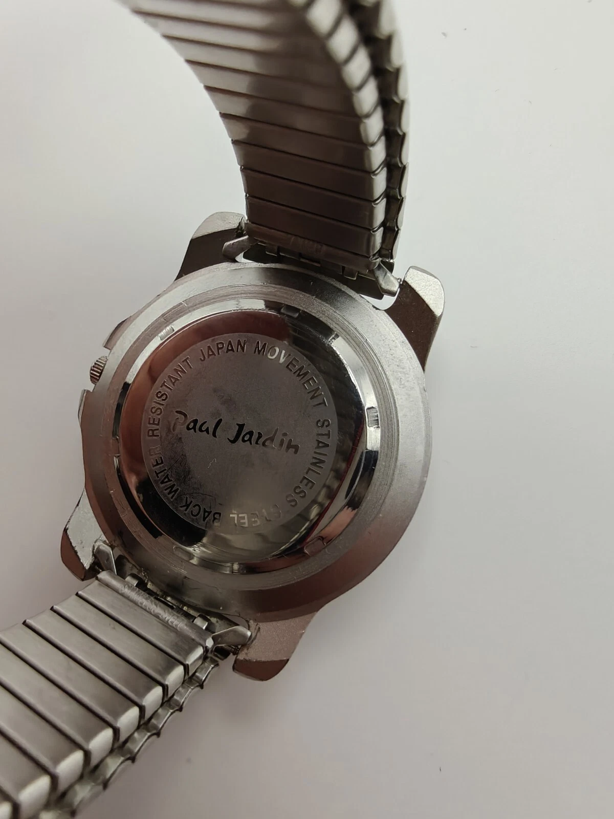 Mens Paul Jardin Black Dial Round Silver Tone Case Stainless St Band Watch