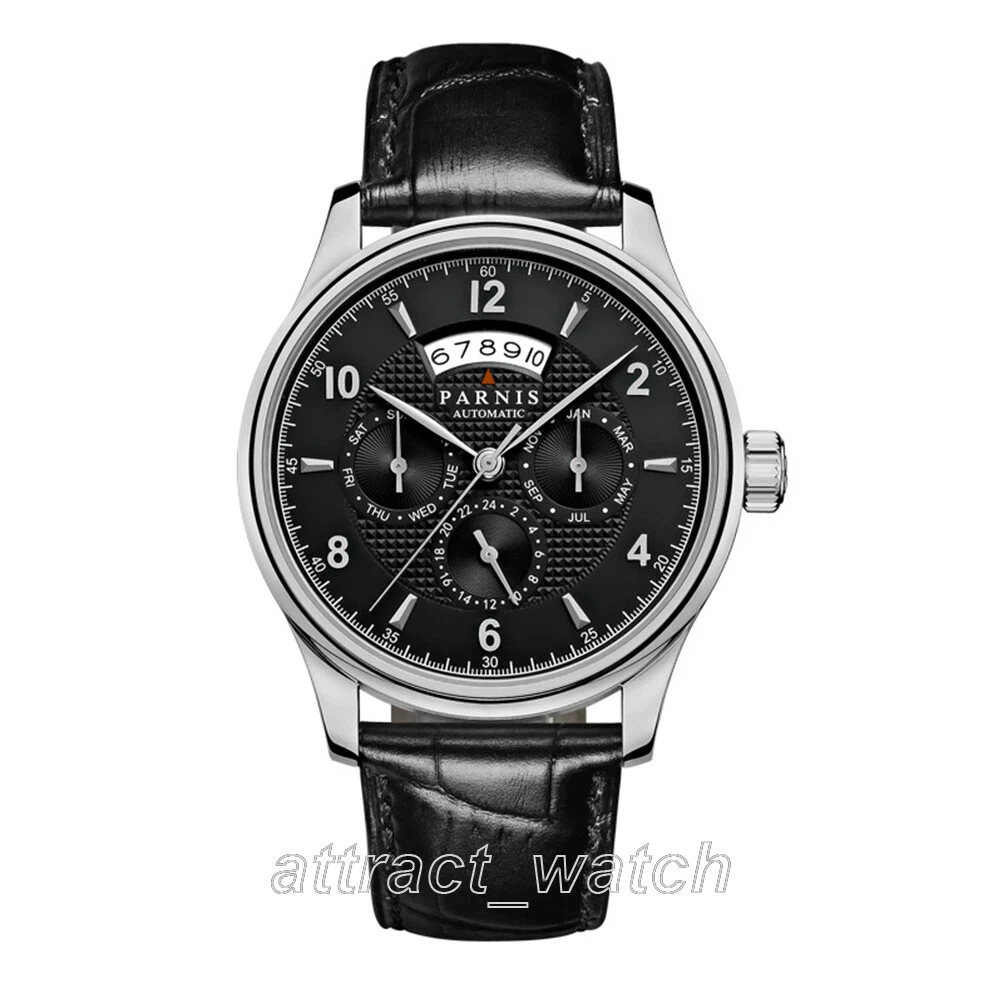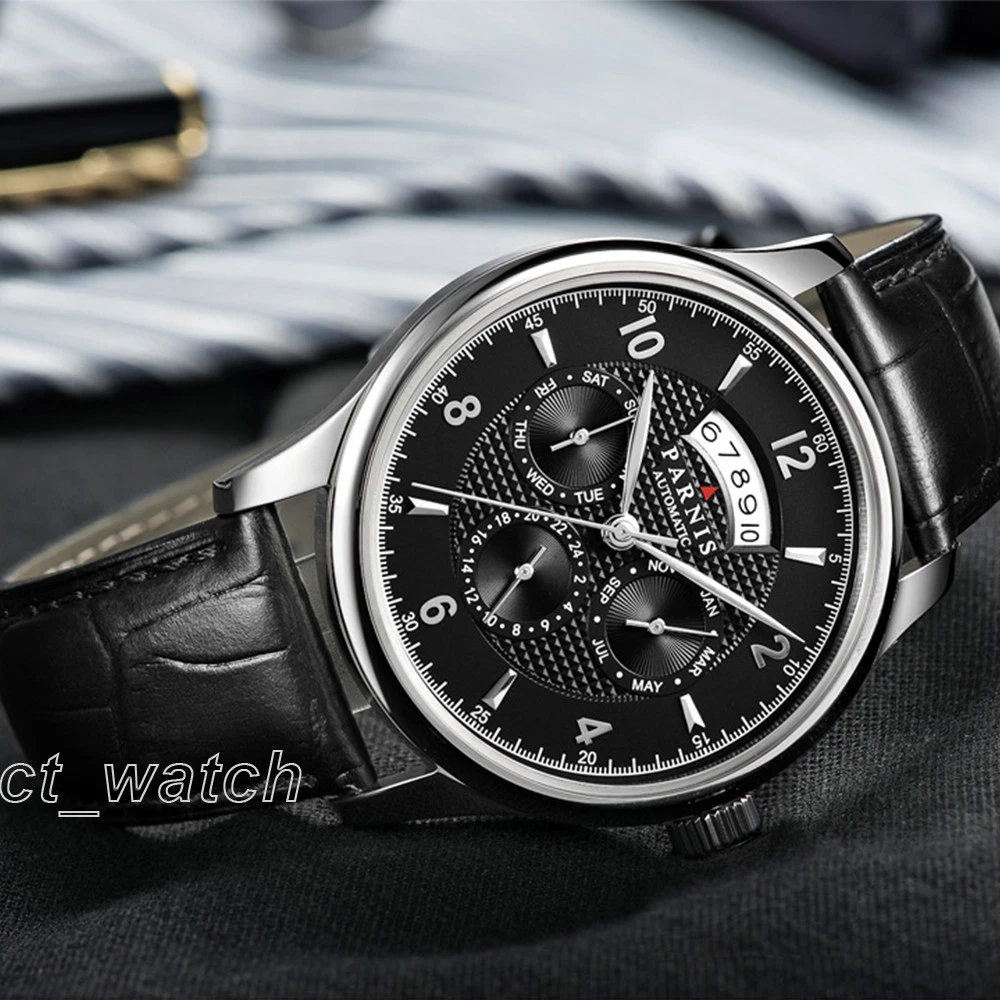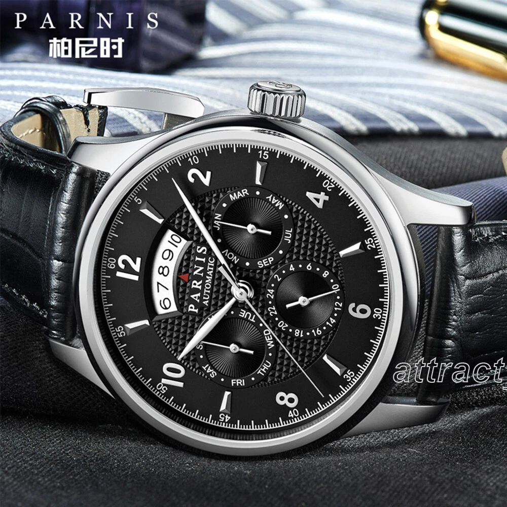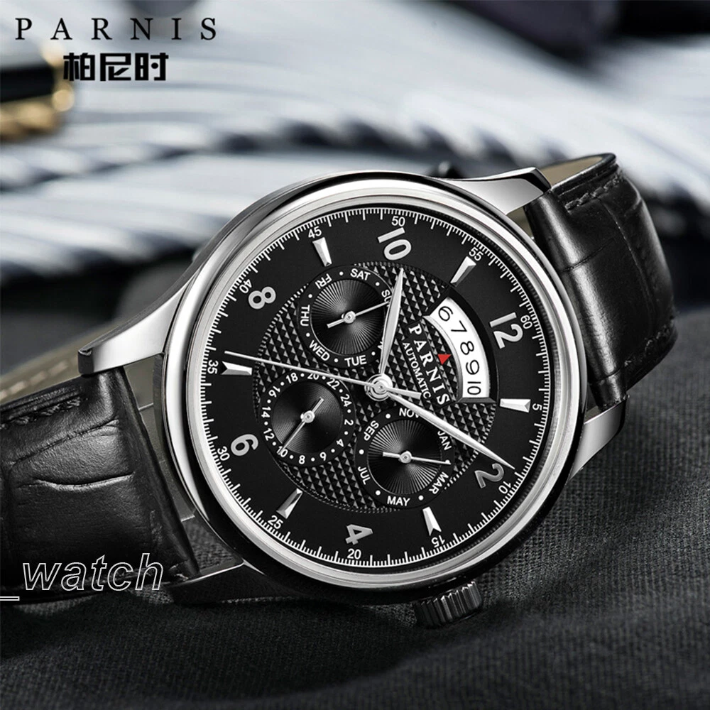 43mm Parnis Miyota Automatic Men Watch Sapphire Crystal Month Day Date Indicator