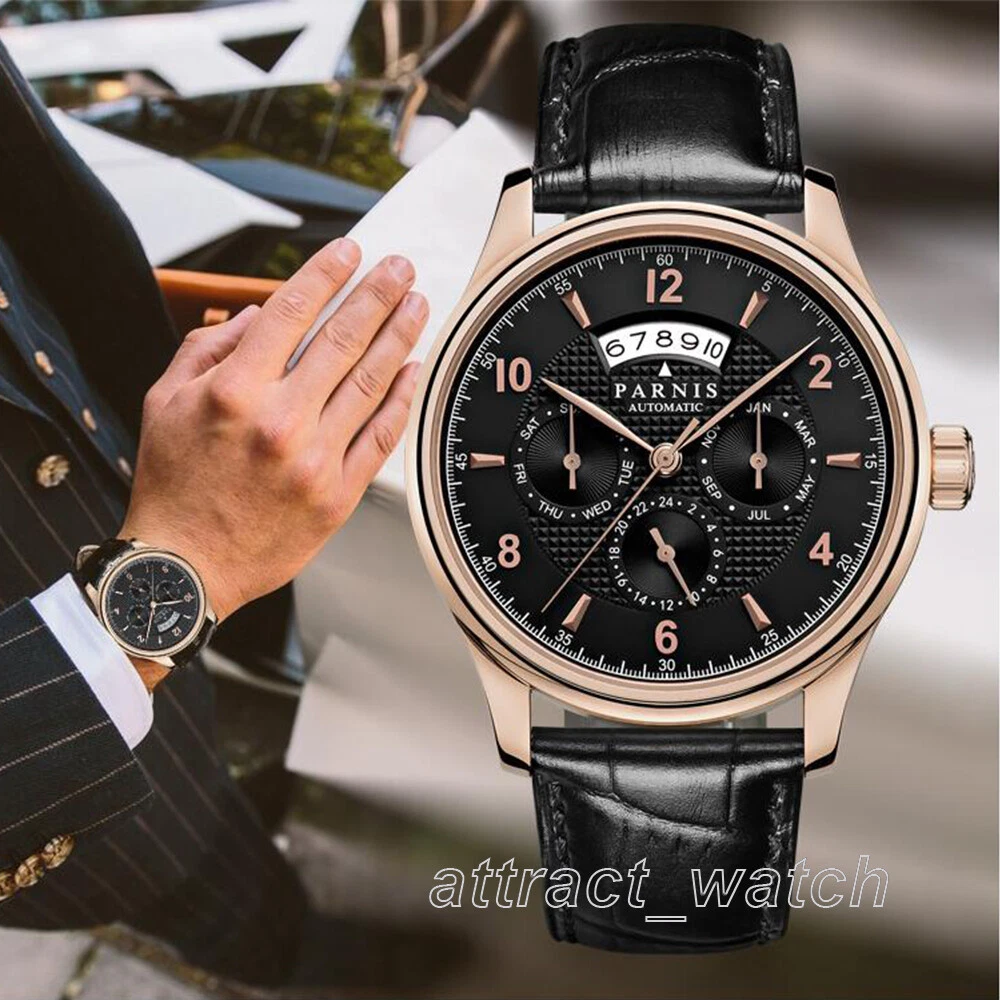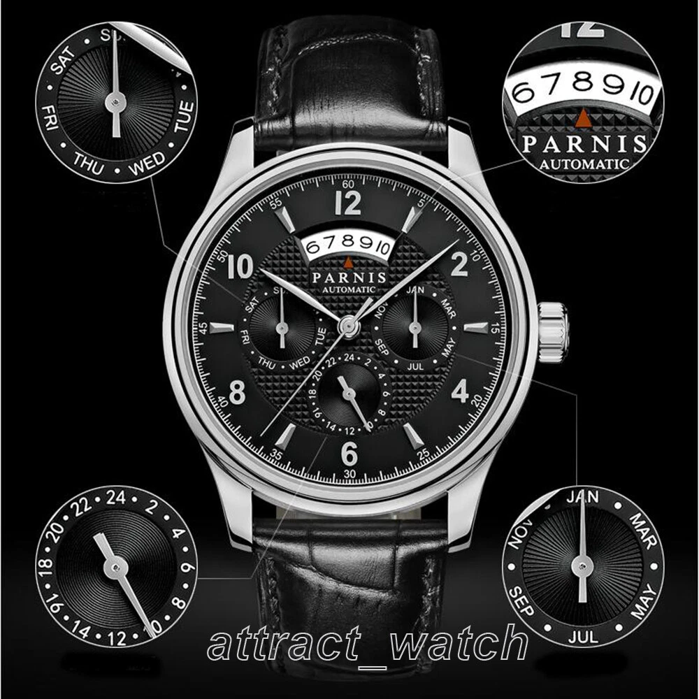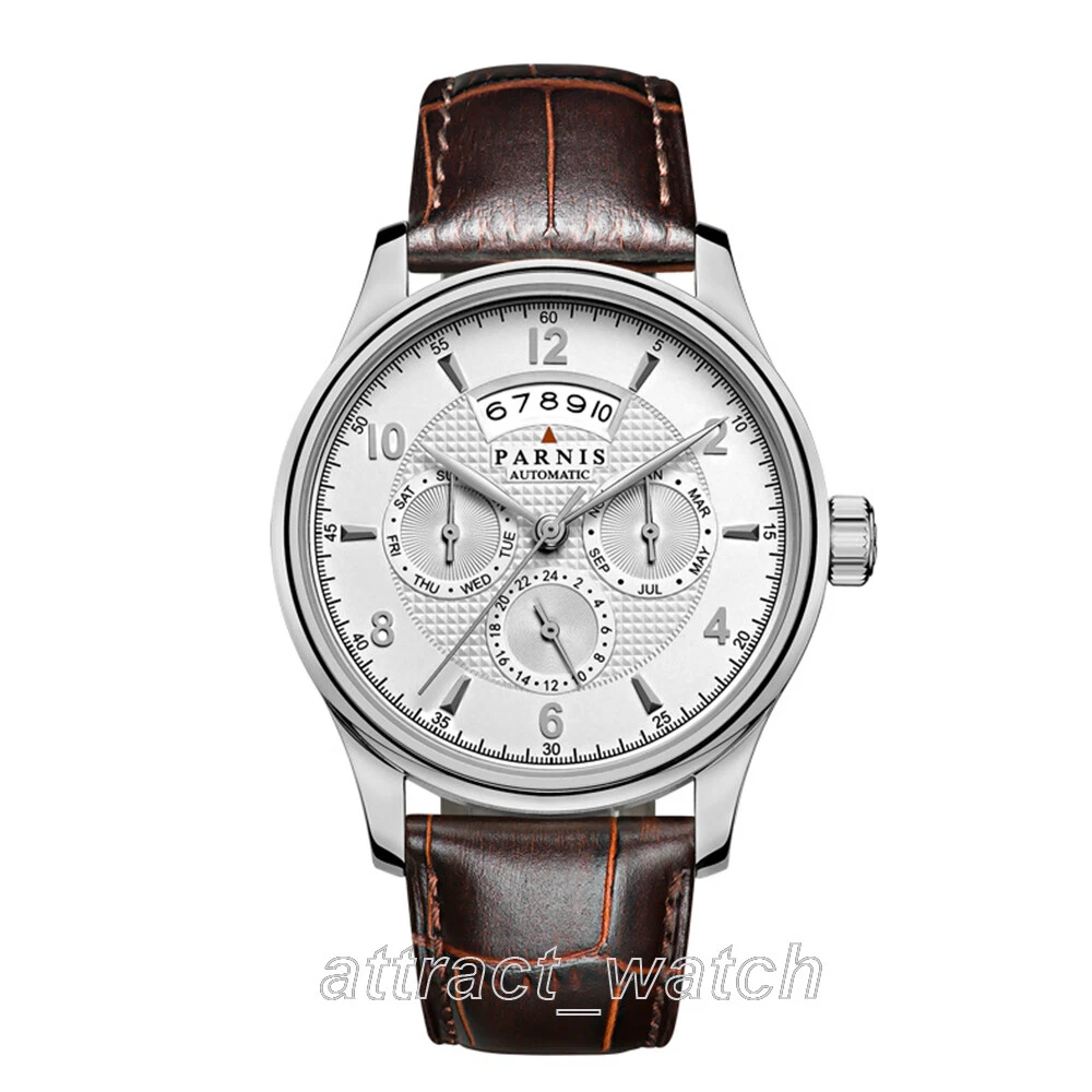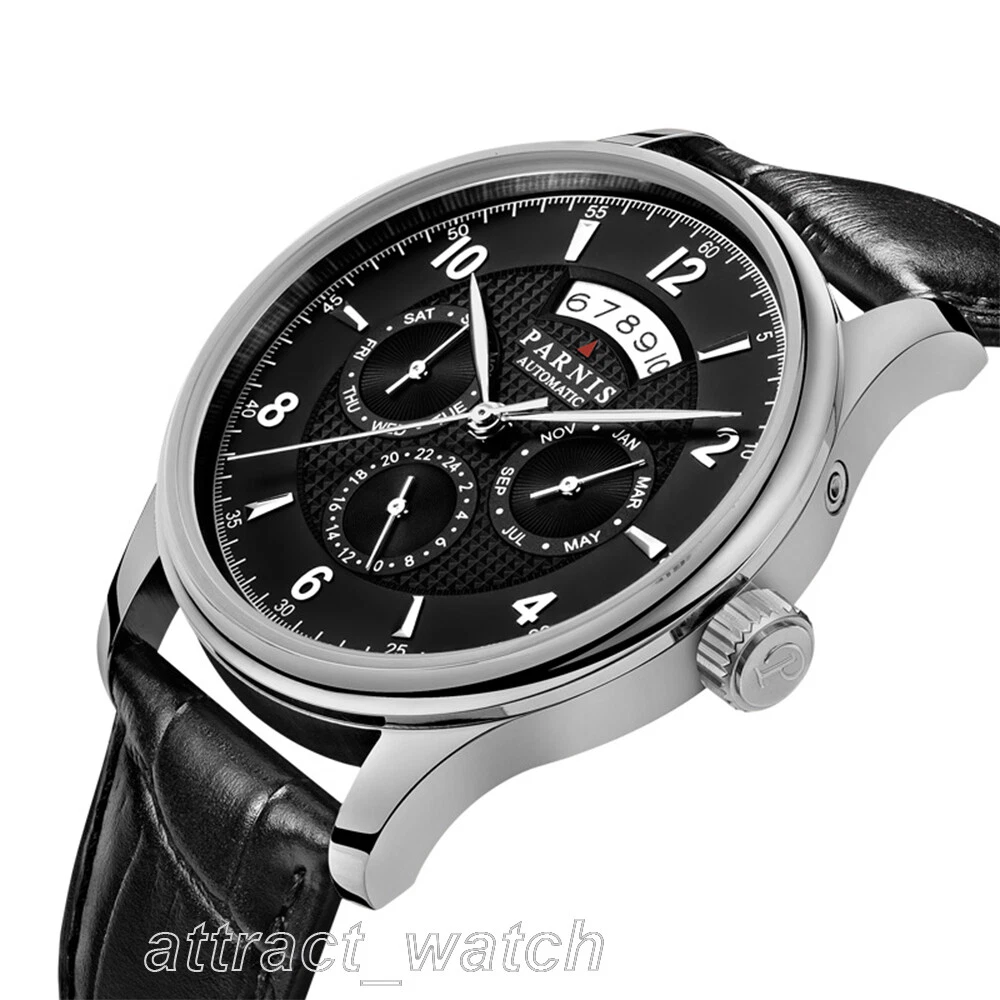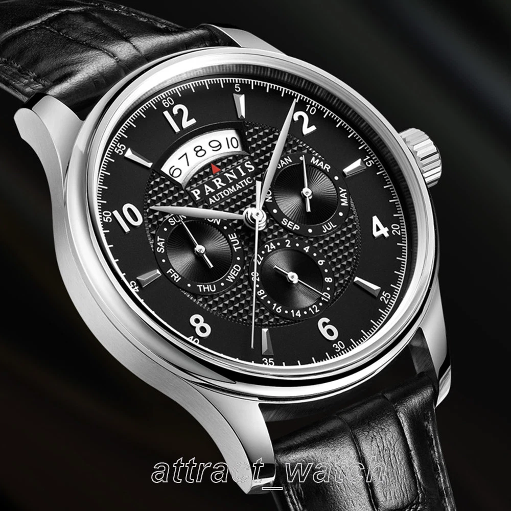 43mm Parnis Miyota Automatic Men Watch Sapphire Crystal Month Day Date Indicator