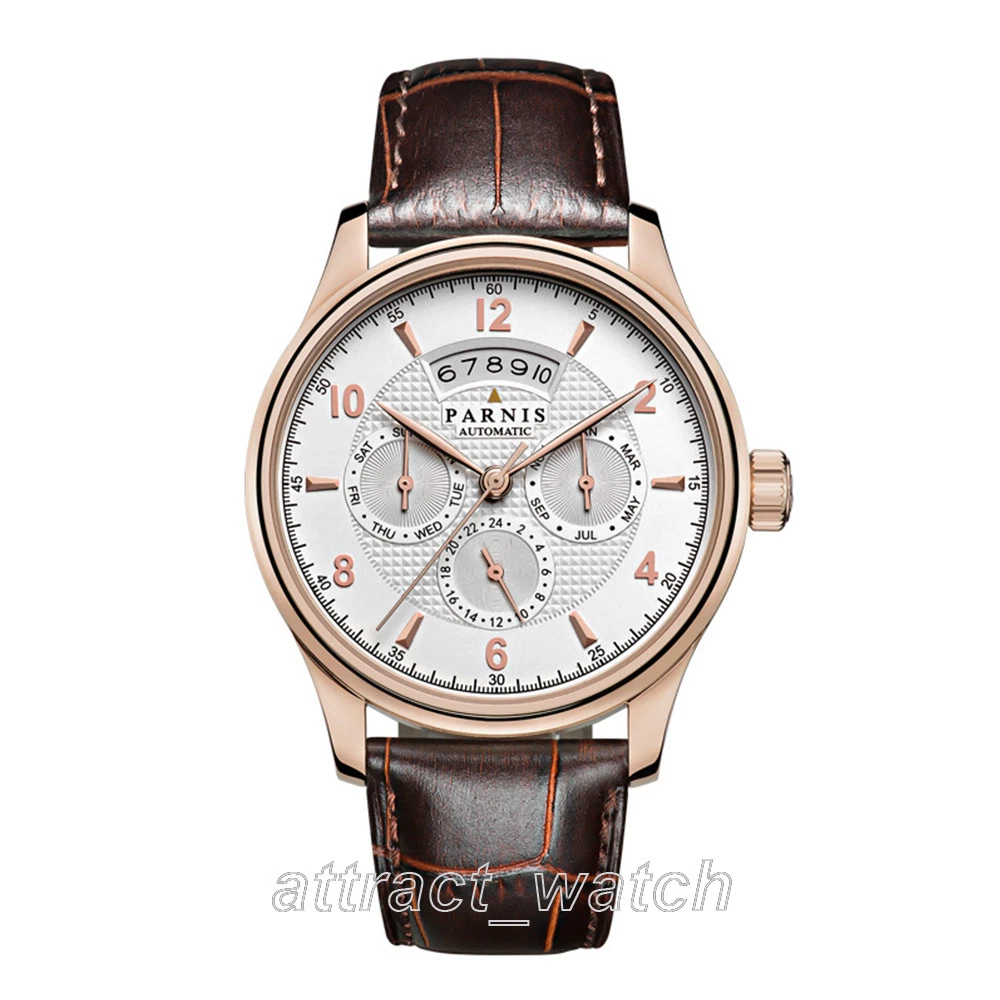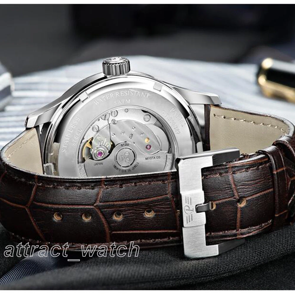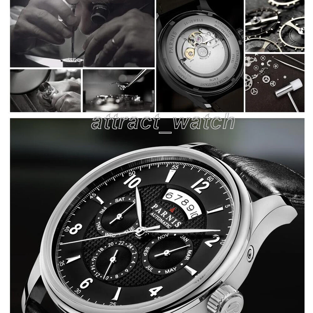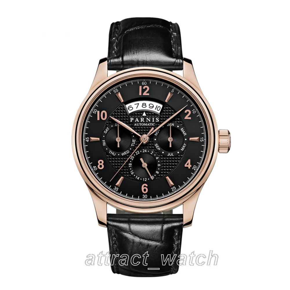 43mm Parnis Miyota Automatic Men Watch Sapphire Crystal Month Day Date Indicator