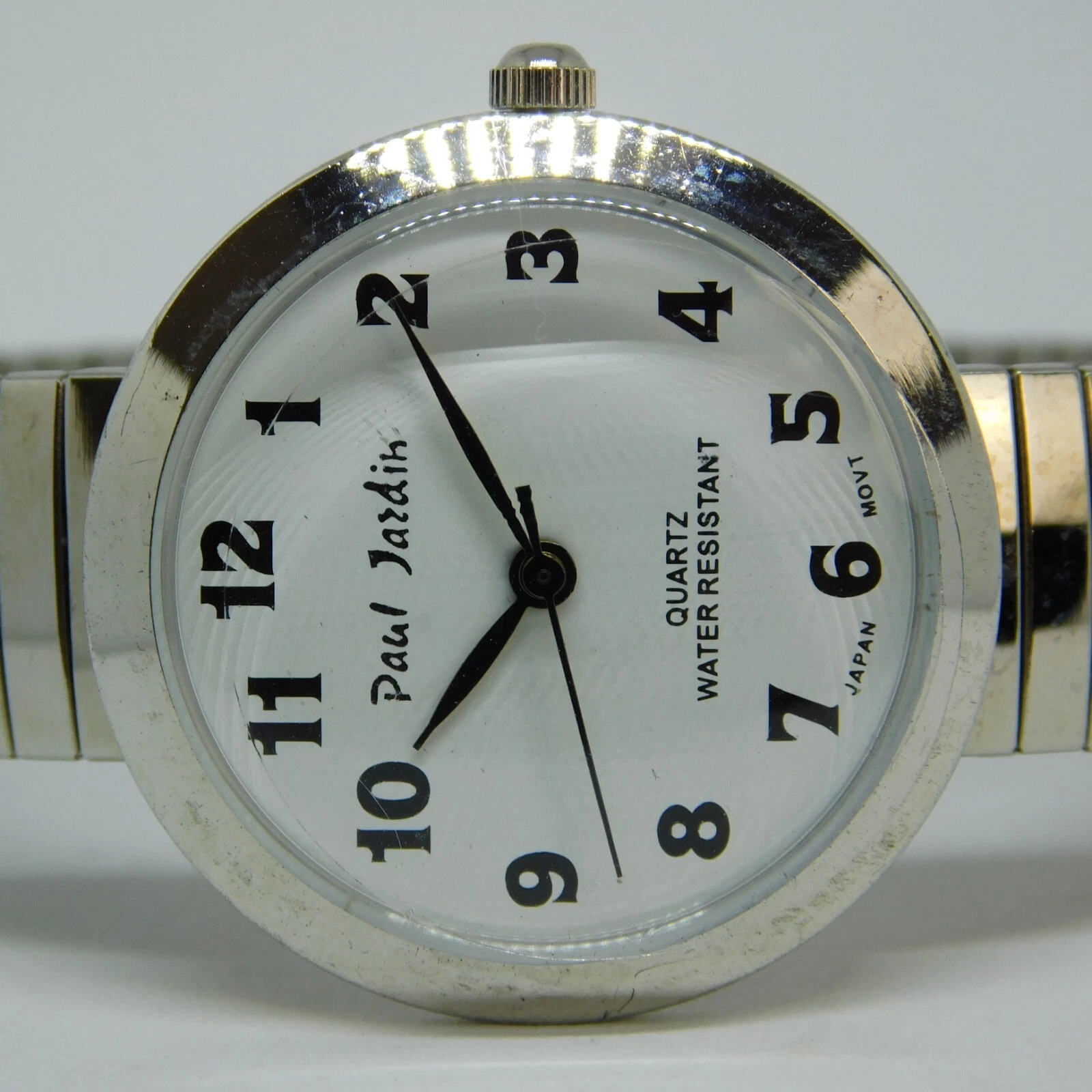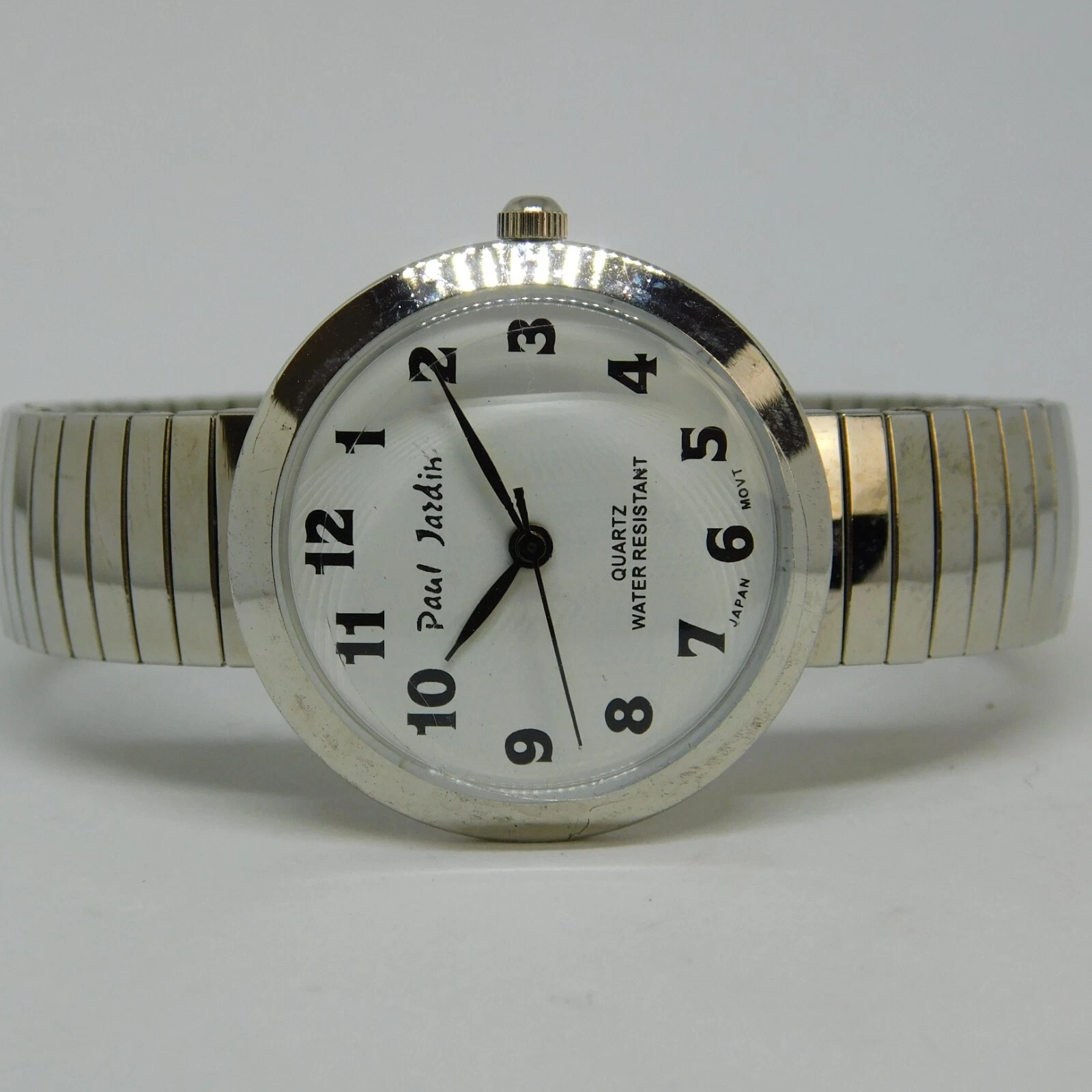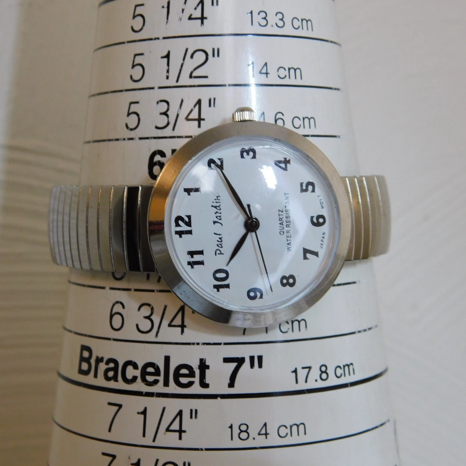 Paul Jardin Silver Tone Quartz Analog Women's Watch Sz. 6 1/4" New Battery