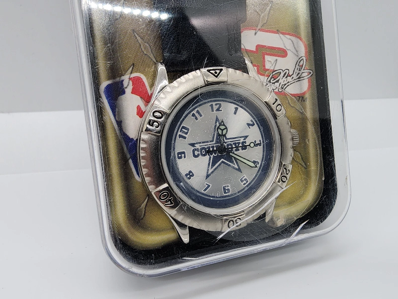 VINTAGE 1998 NFLP DALLAS COWBOYS STAINLESS STEEL LEATHER WATCH NOS NFL RARE