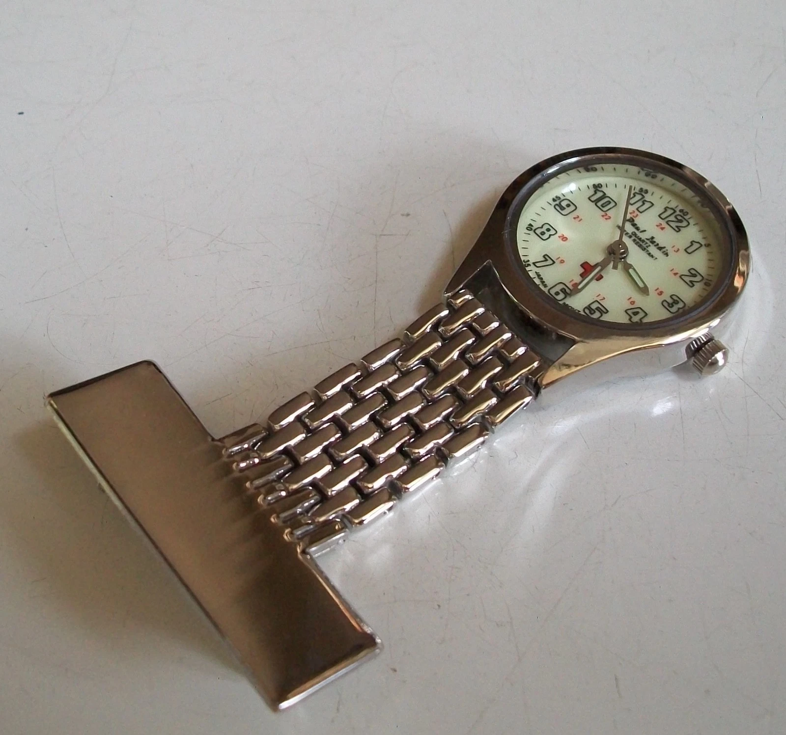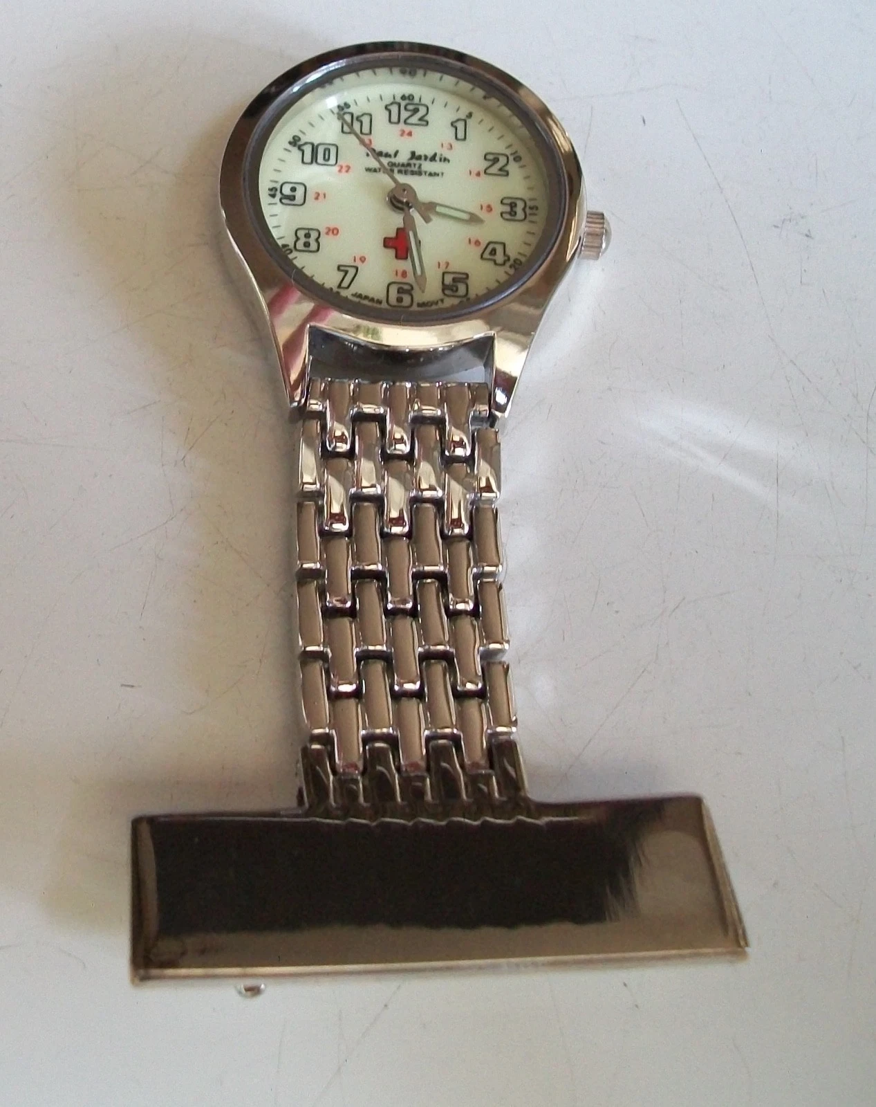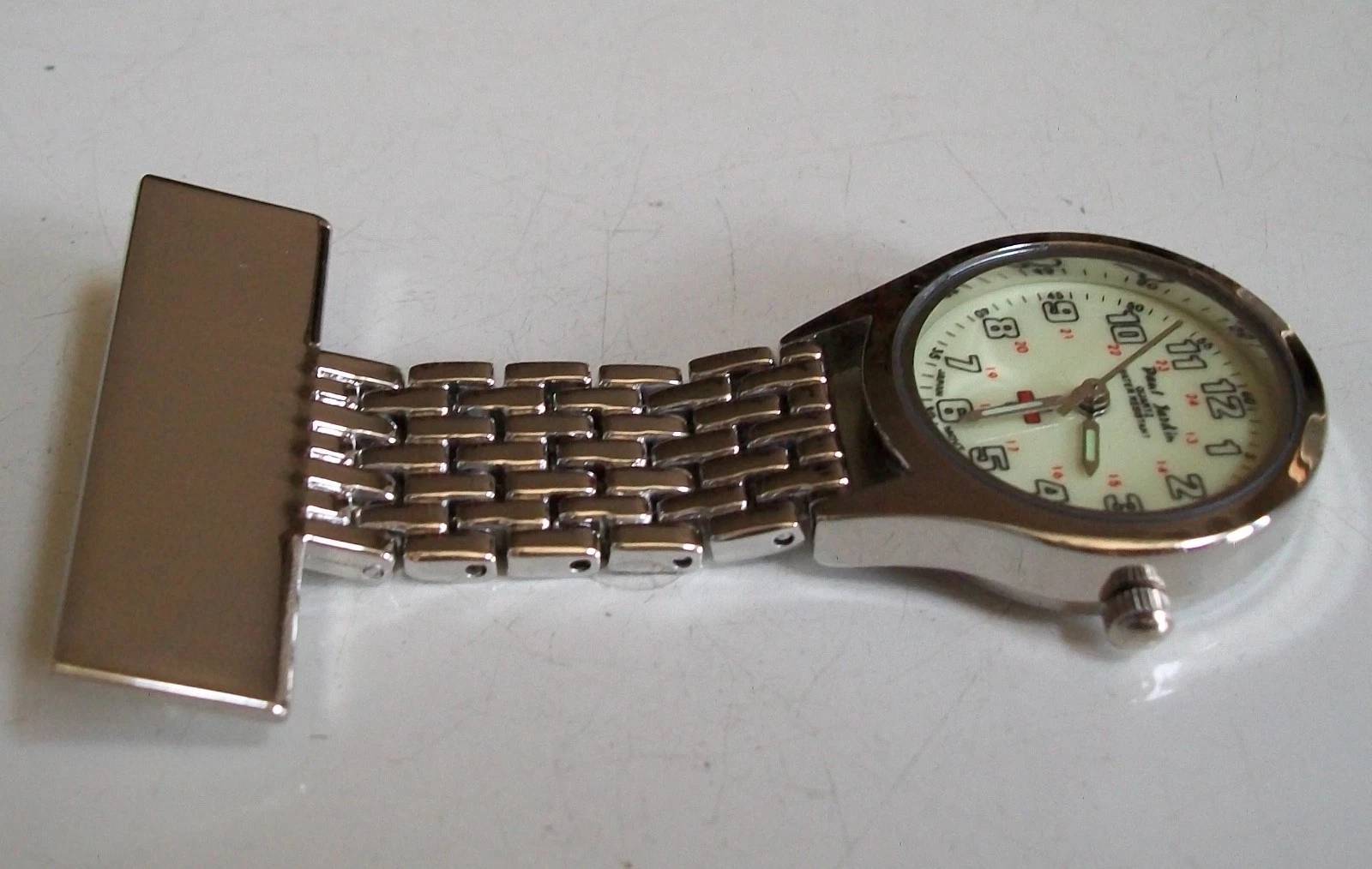 Silver Finish Number Dial Women Clip On Pin At The Back Doctor Nurse Pin Watch