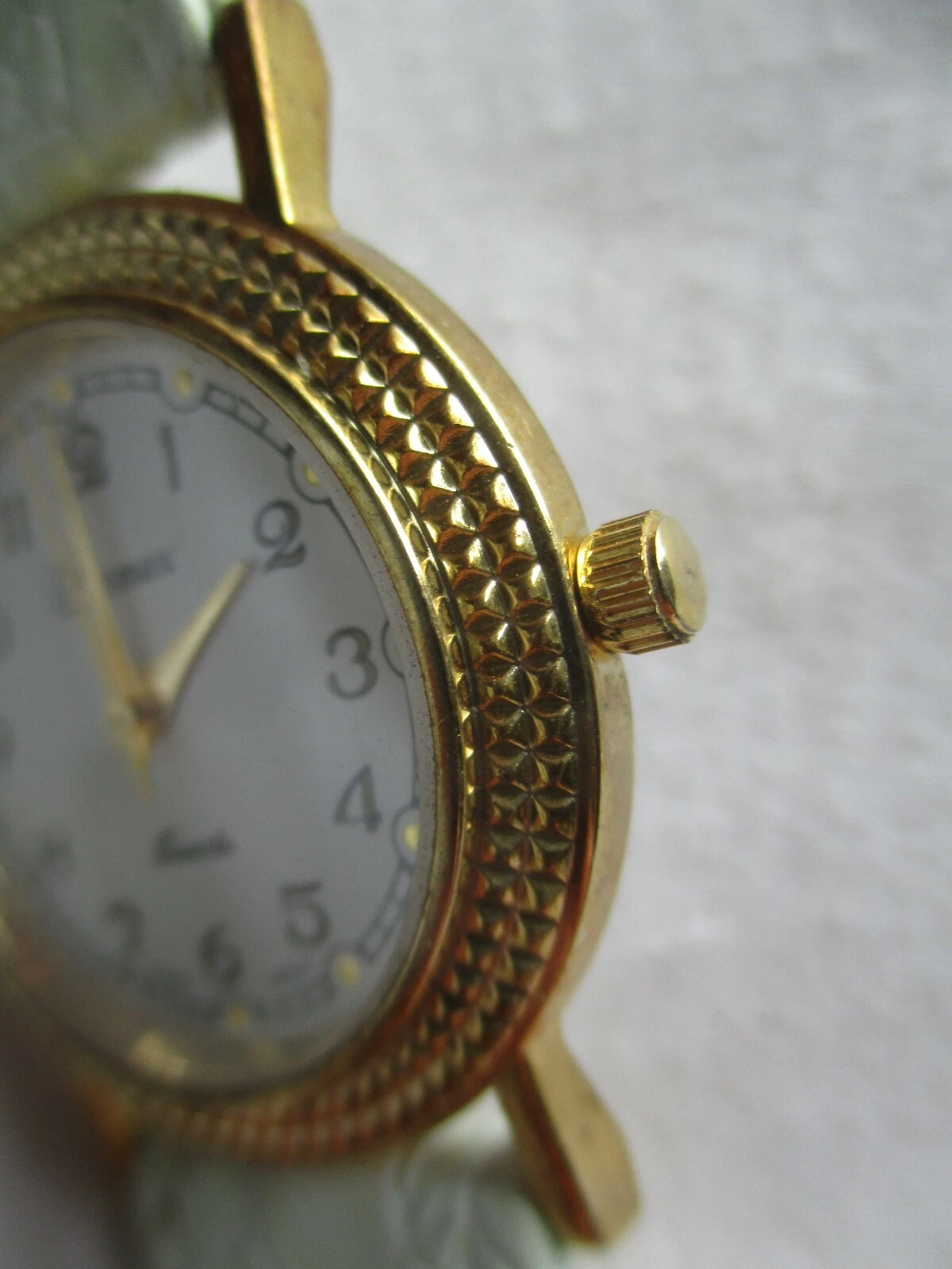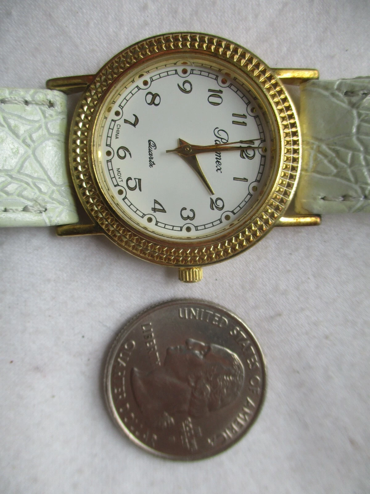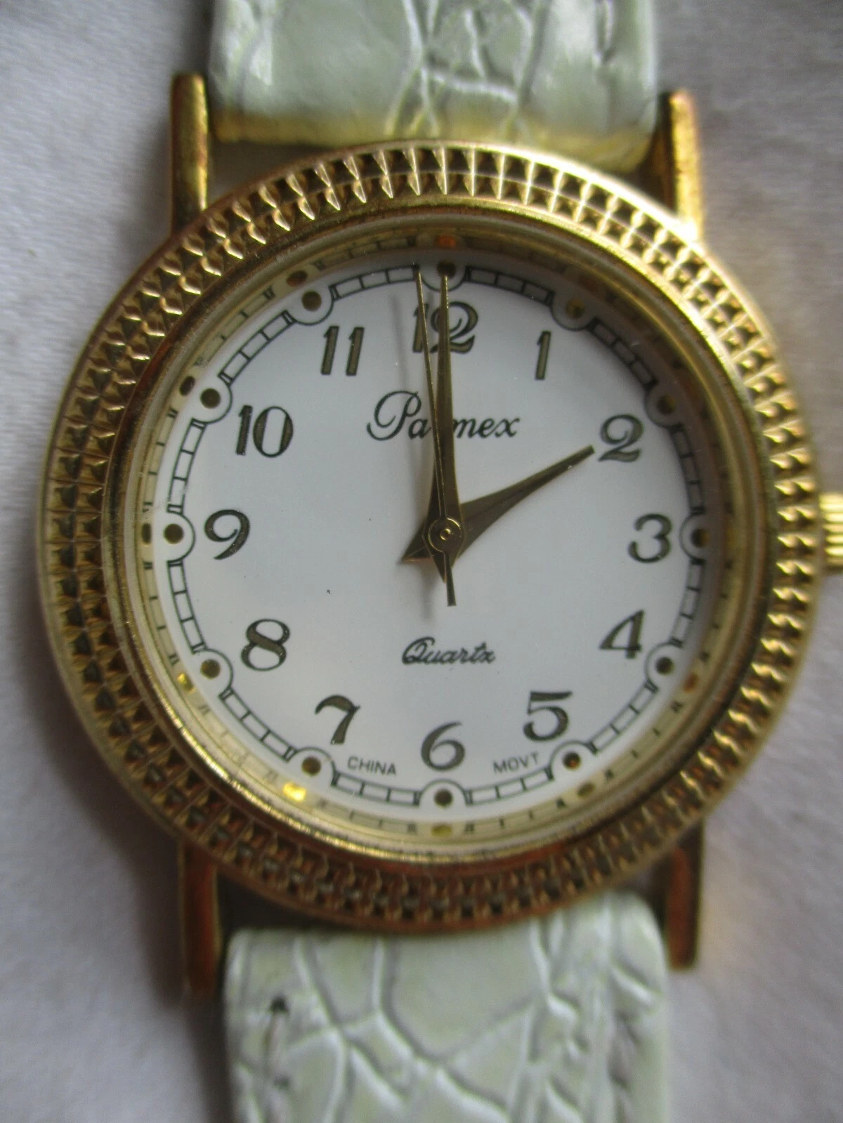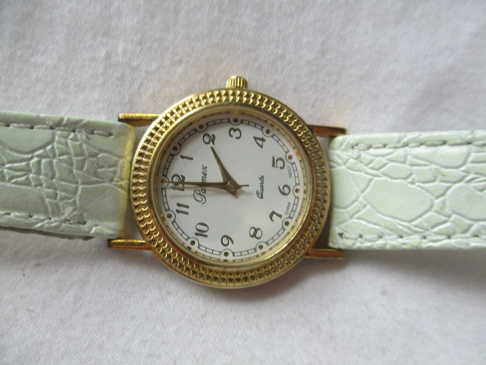 Parmex Analog Wristwatch Gold Tone White Genuine Leather Buckle Band Stylish