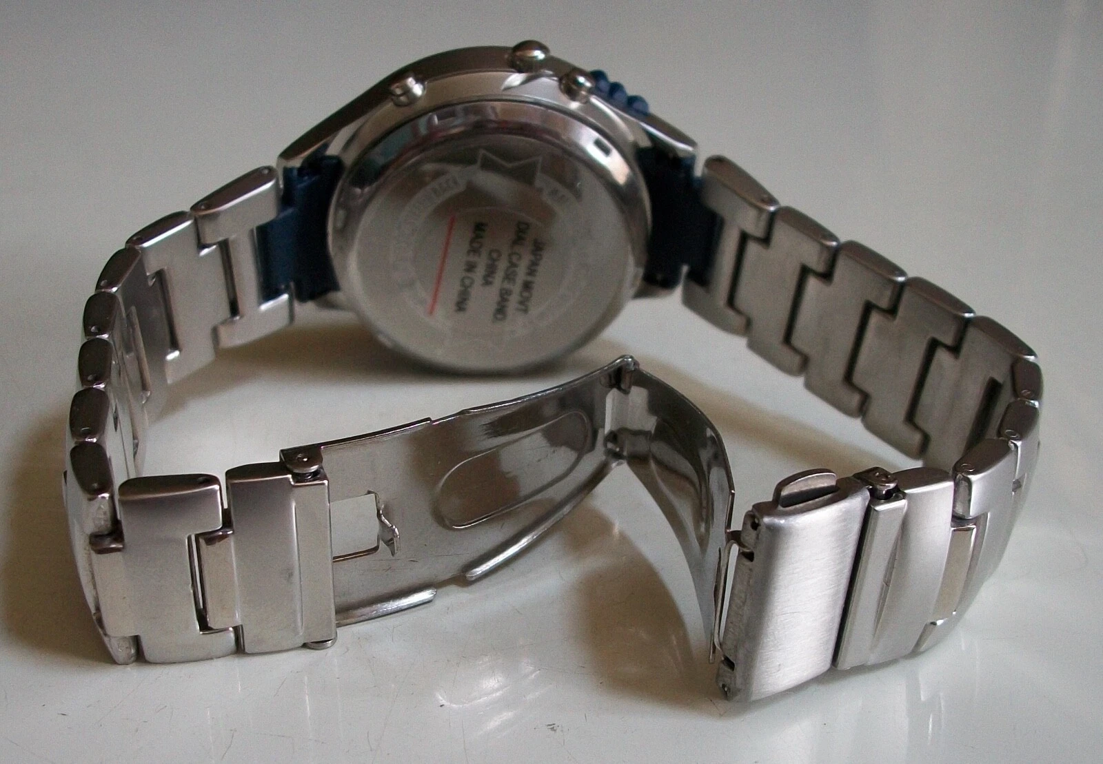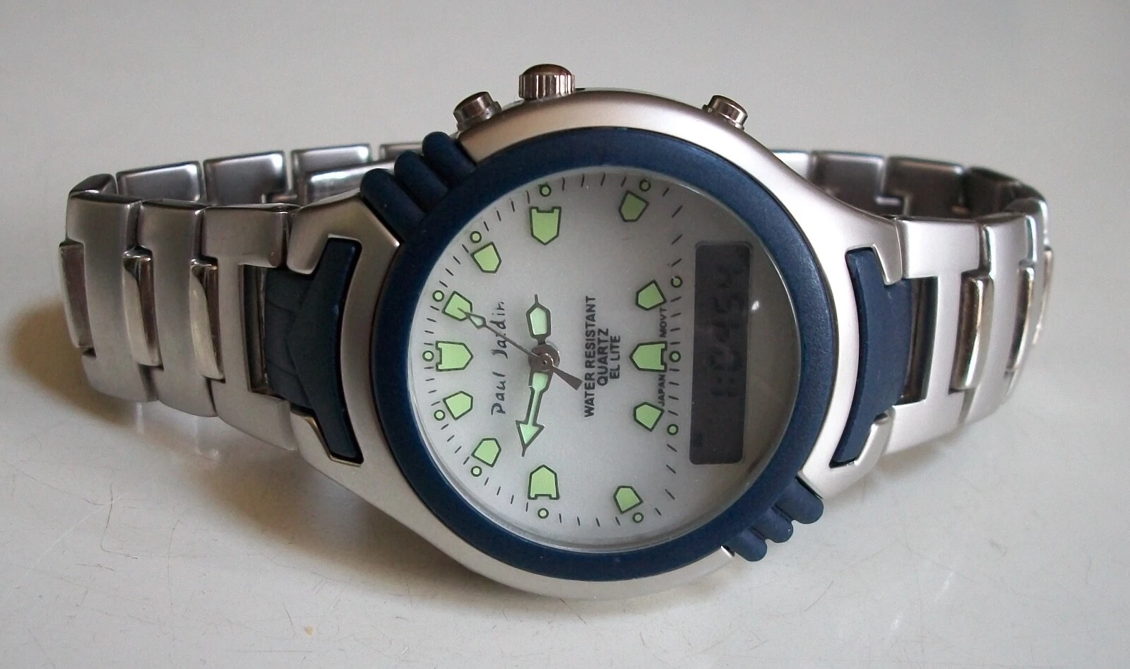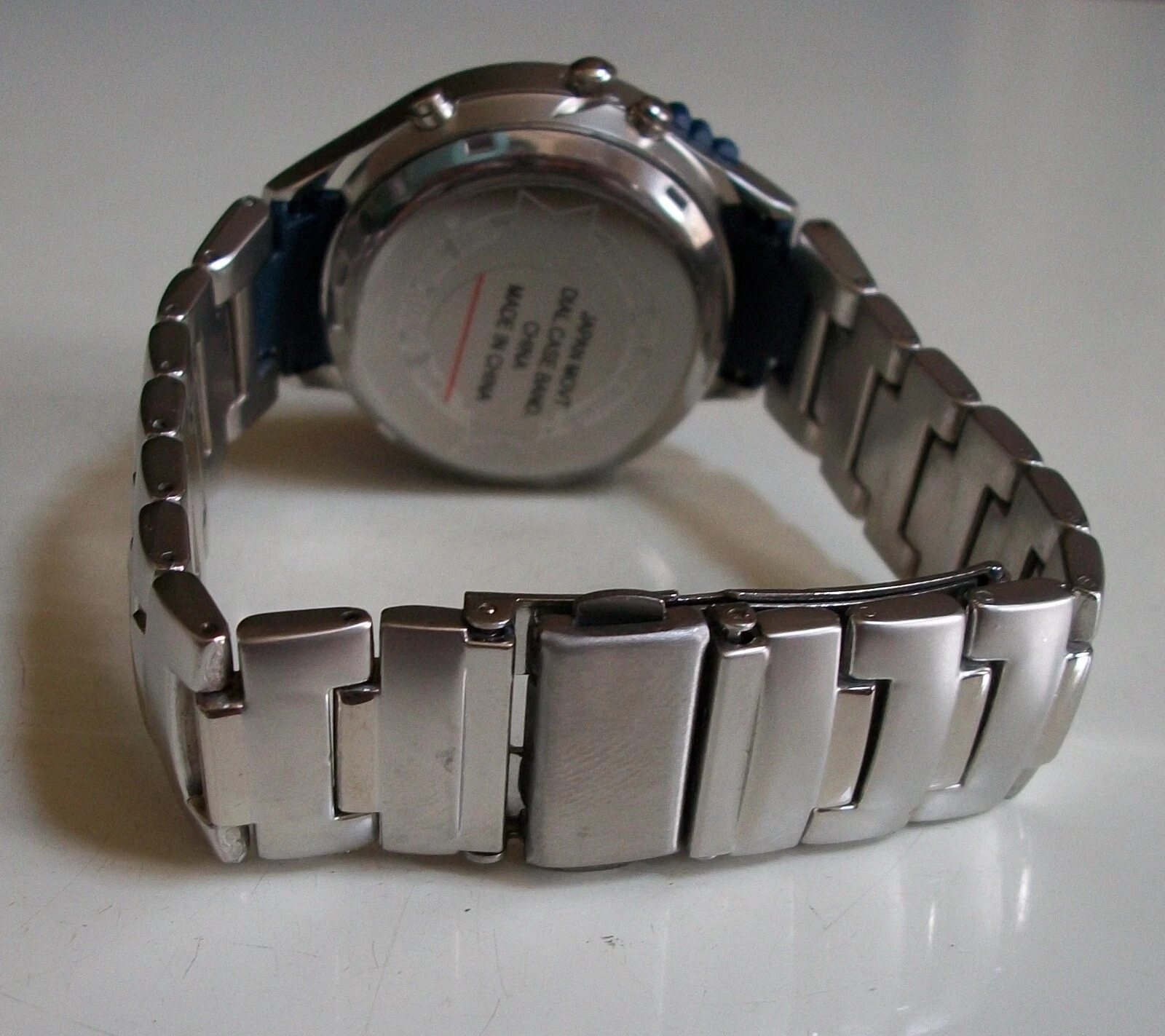 Men's  2 time zone blue light up digital metal band alarm fashion casual watch