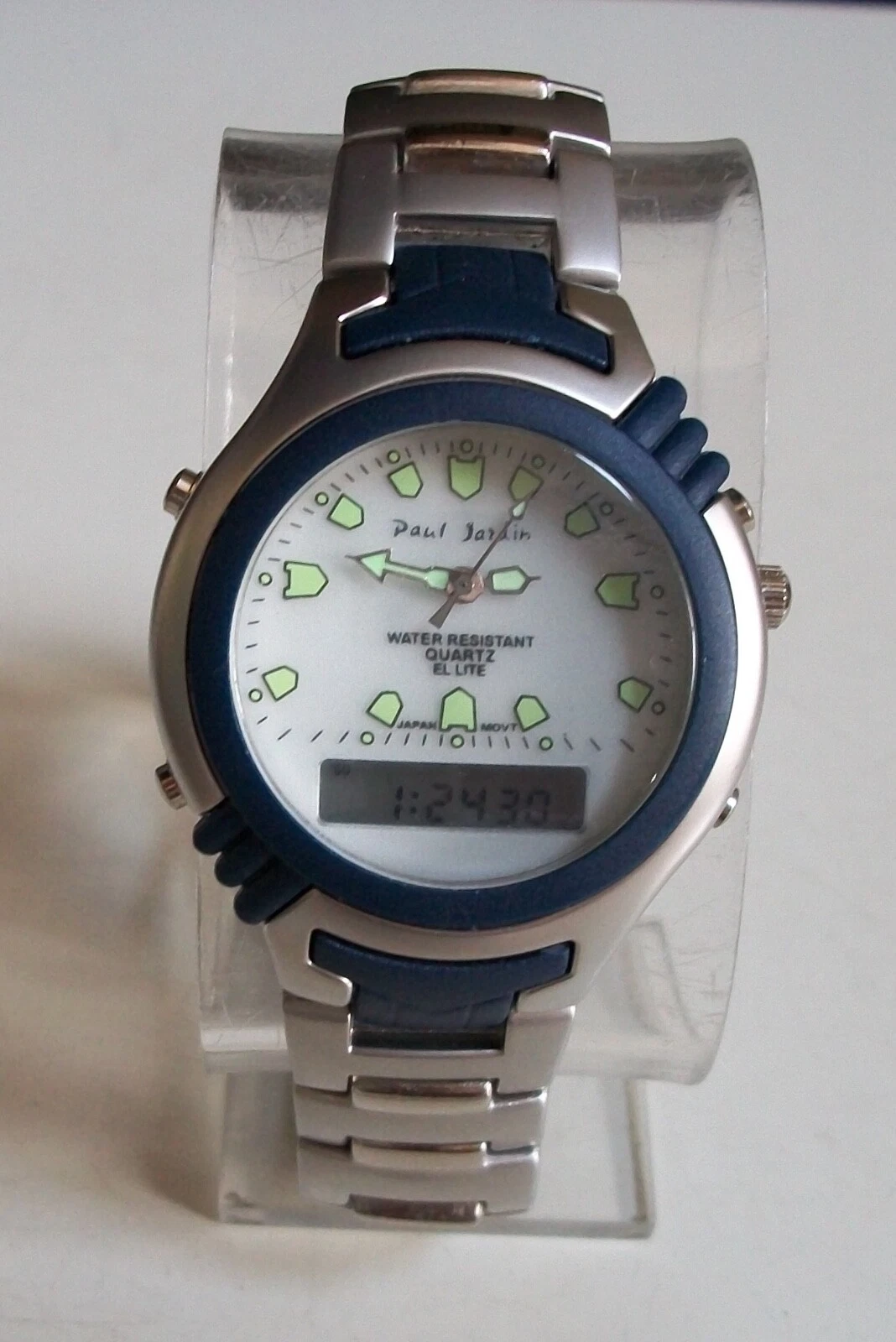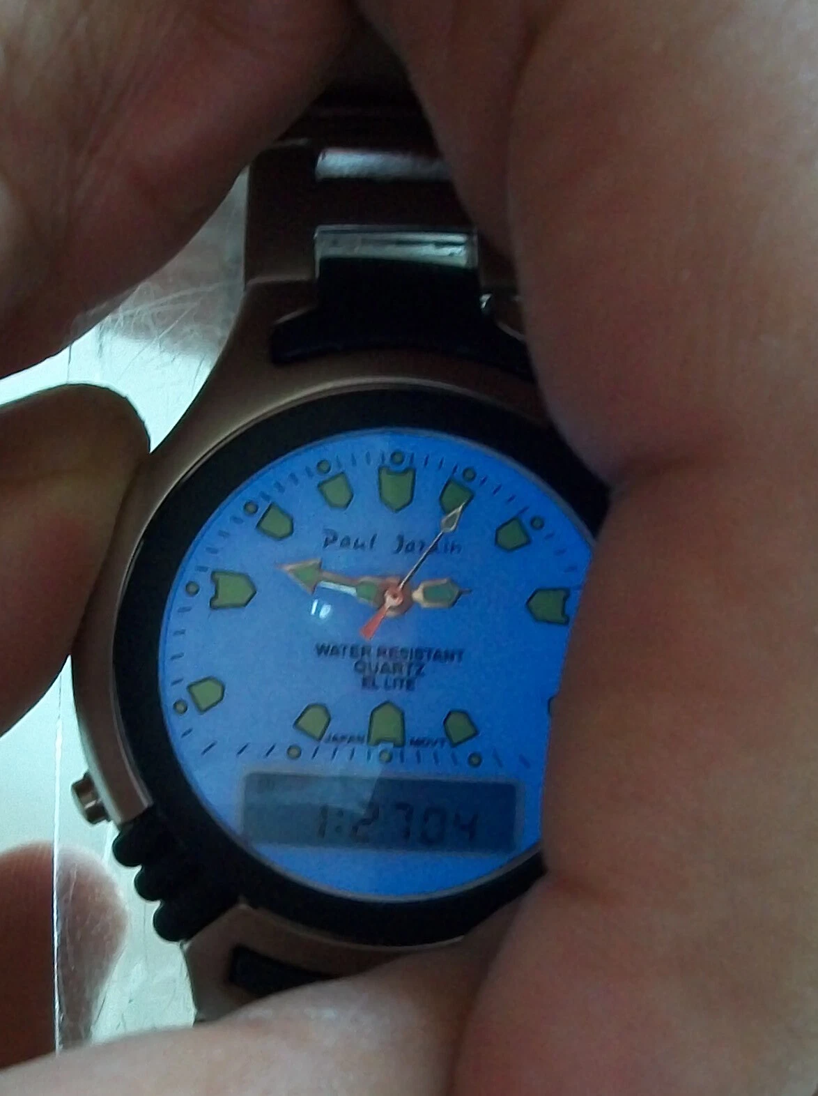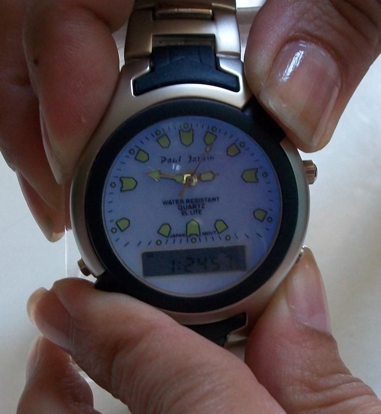 Men's  2 time zone blue light up digital metal band alarm fashion casual watch