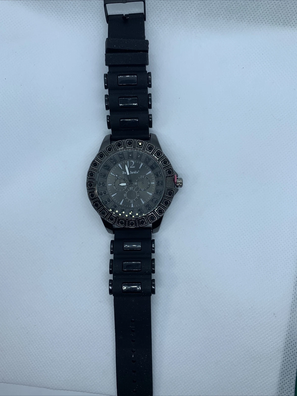Paul Jardin Mens Watch. New Battery Black Silicone Band. Stock #040