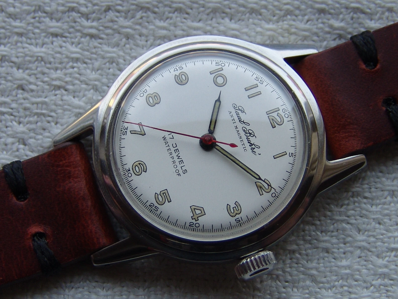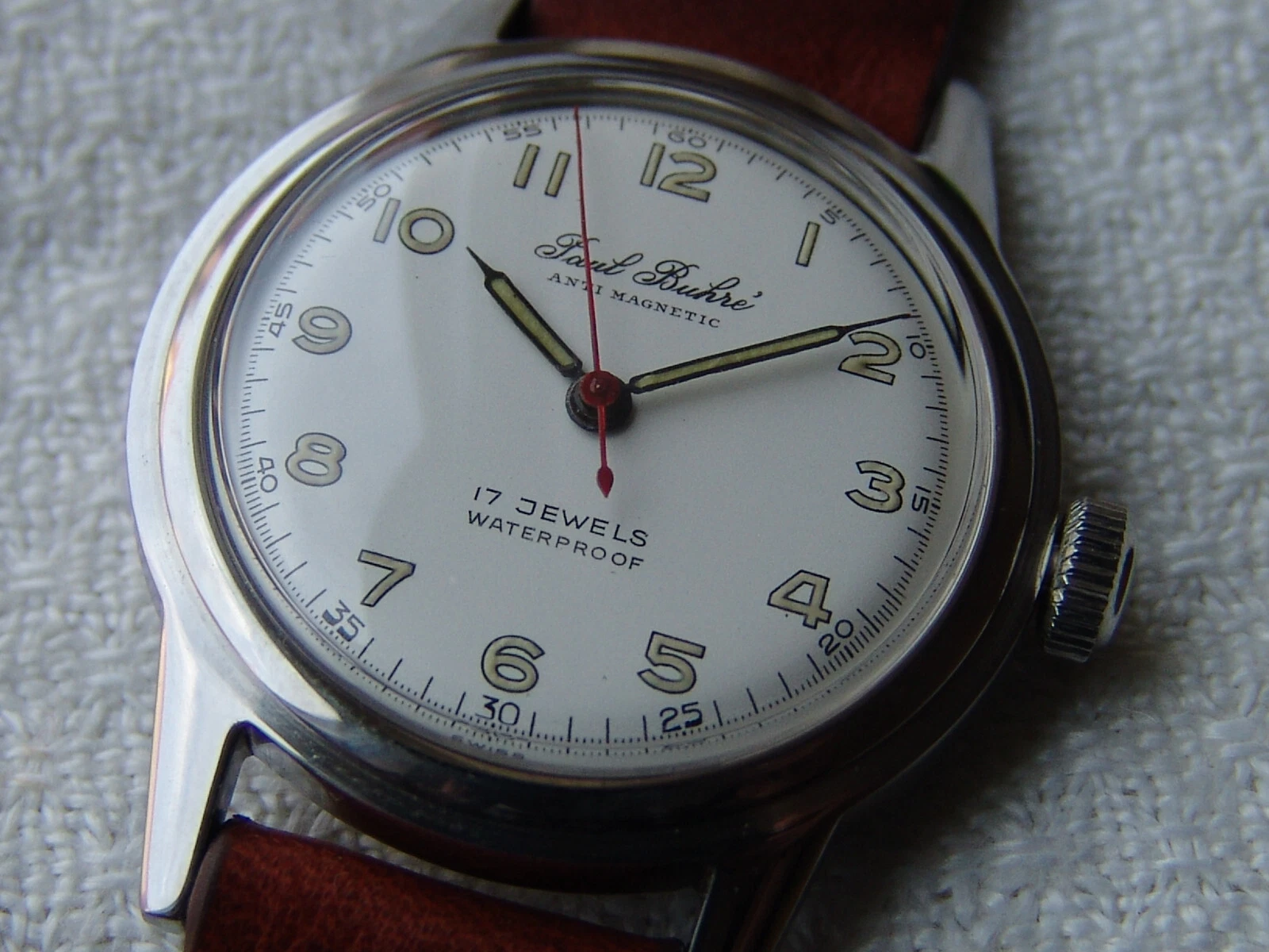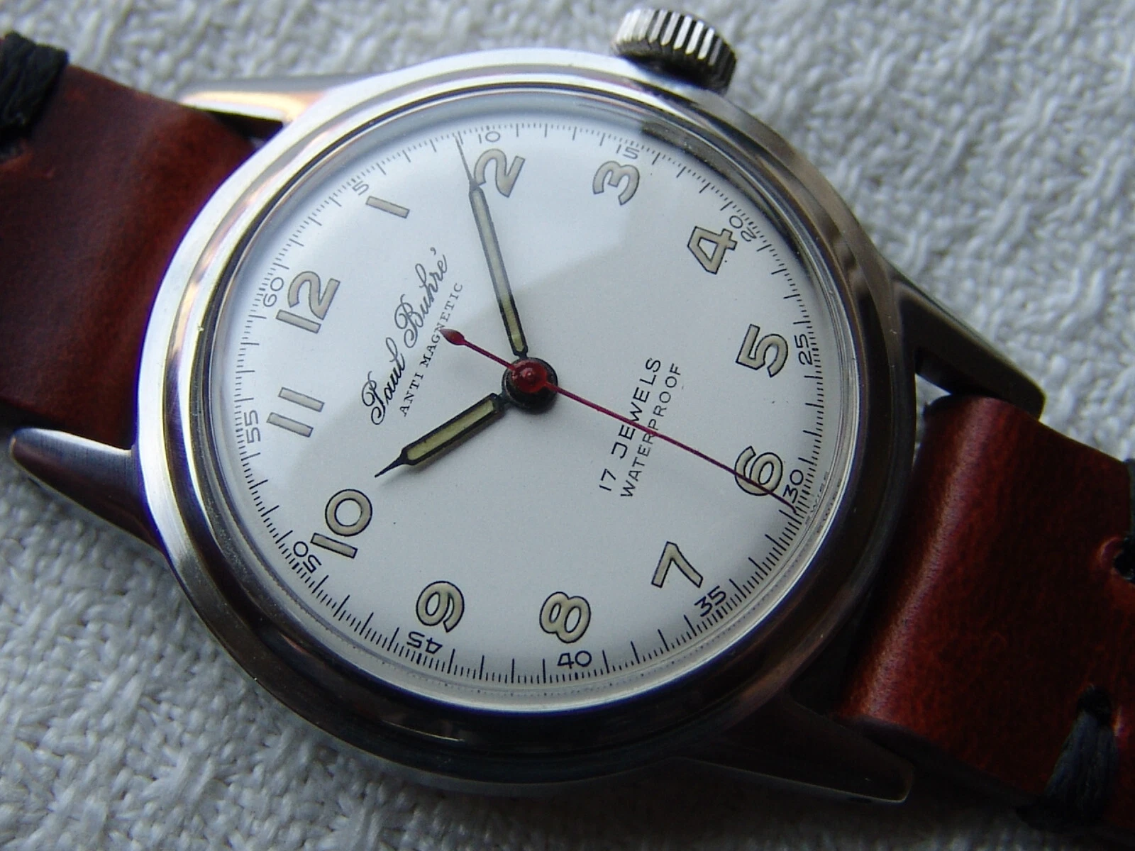 33.5 mm MEN'S WWII ERA MILITARY PAUL BUHRE VINTAGE steel WATCH GOOD CONDITION