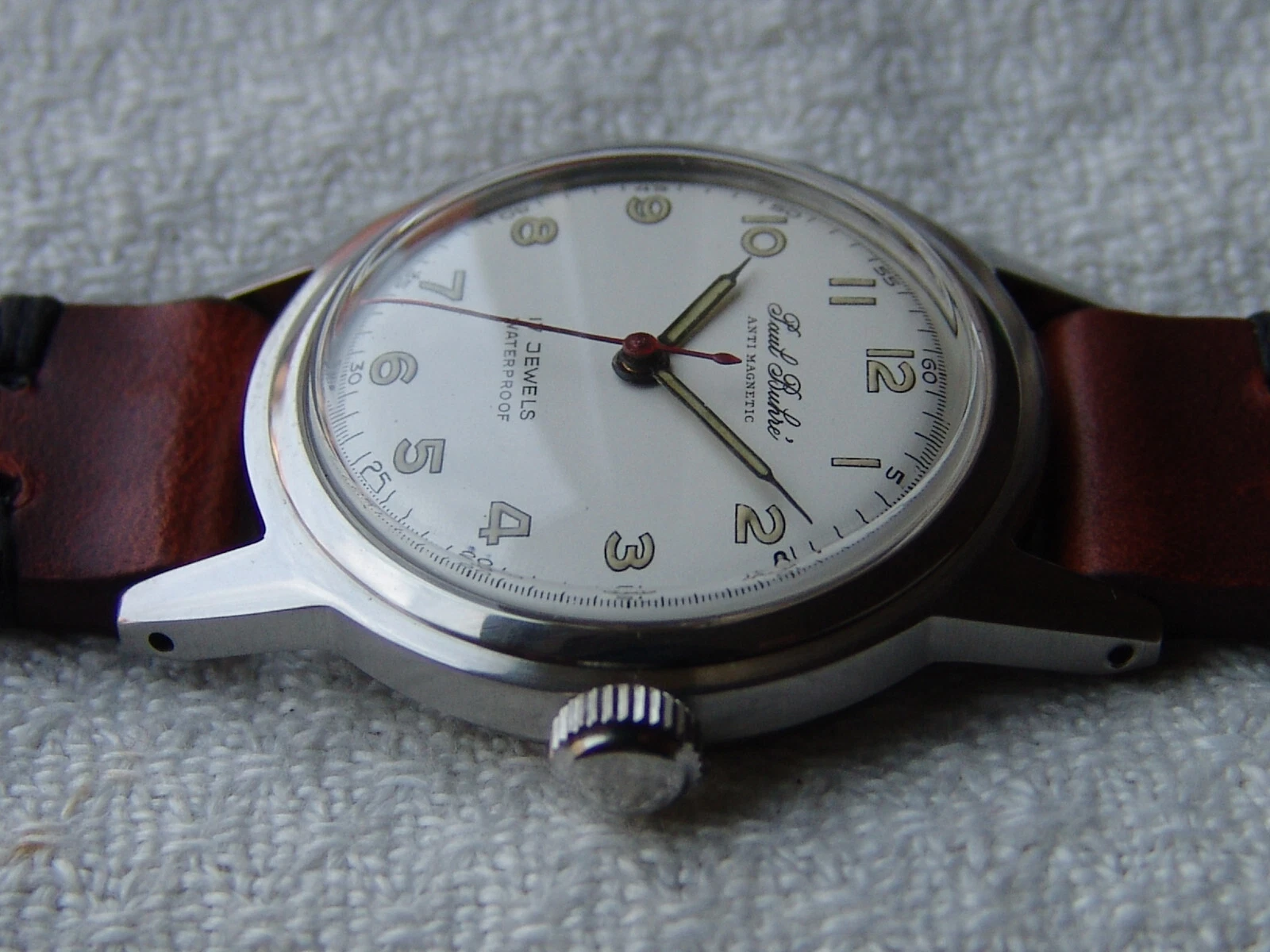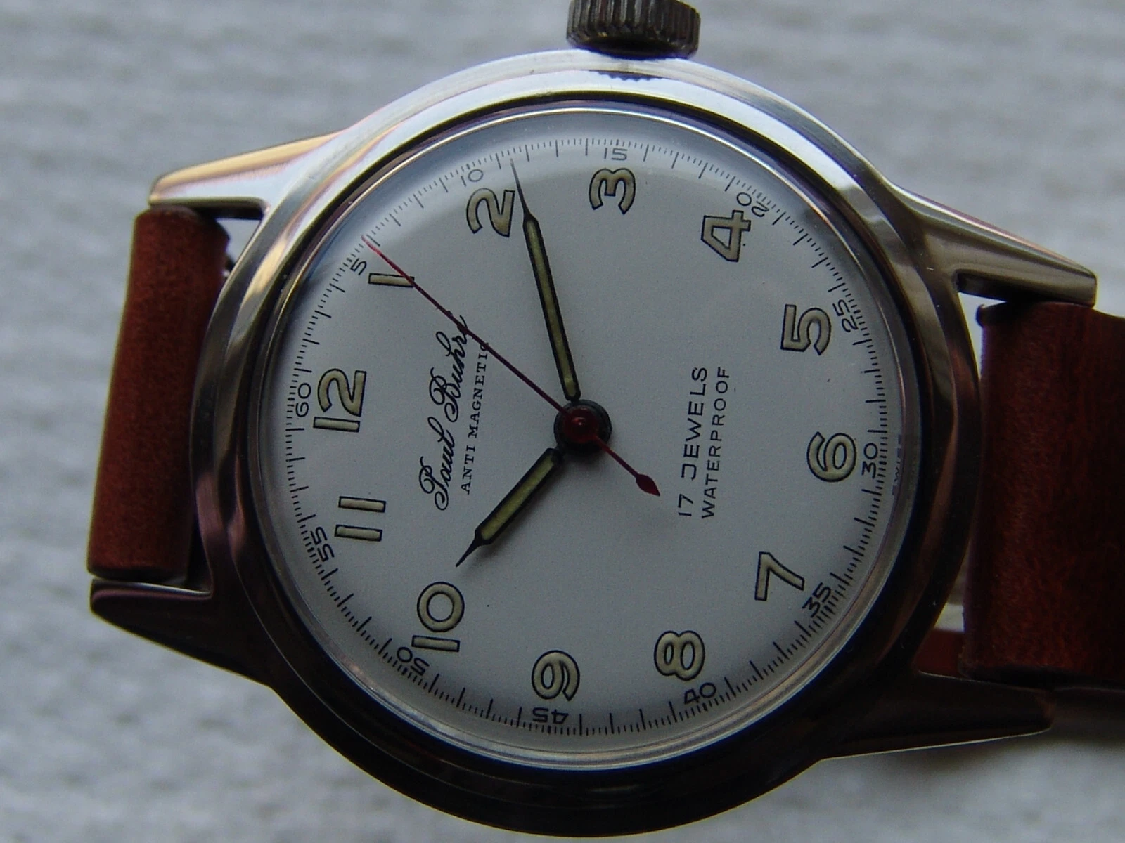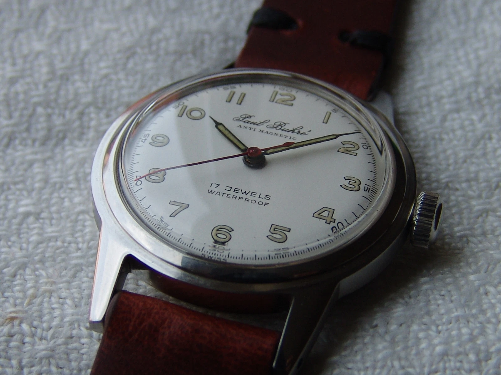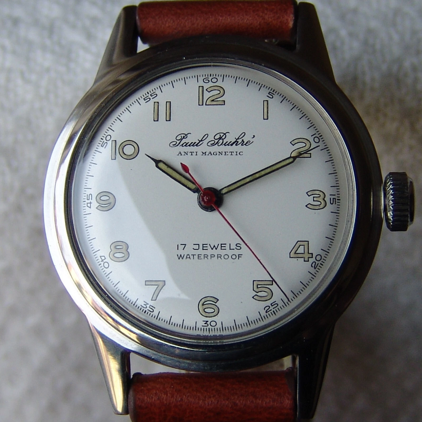 33.5 mm MEN'S WWII ERA MILITARY PAUL BUHRE VINTAGE steel WATCH GOOD CONDITION