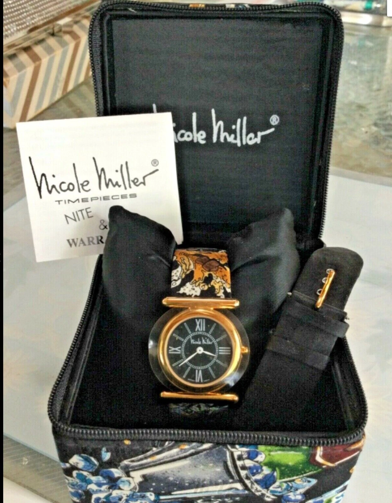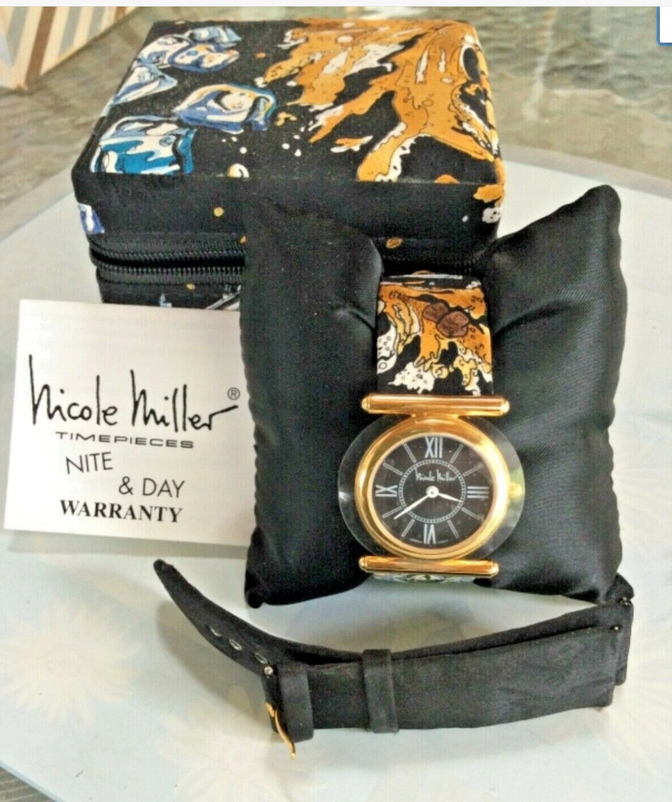 VTG NICOLE MILLER LADIES NITE & DAY WRISTWATCH CHAMPAGNE ON ICE EXTRA BAND NOS