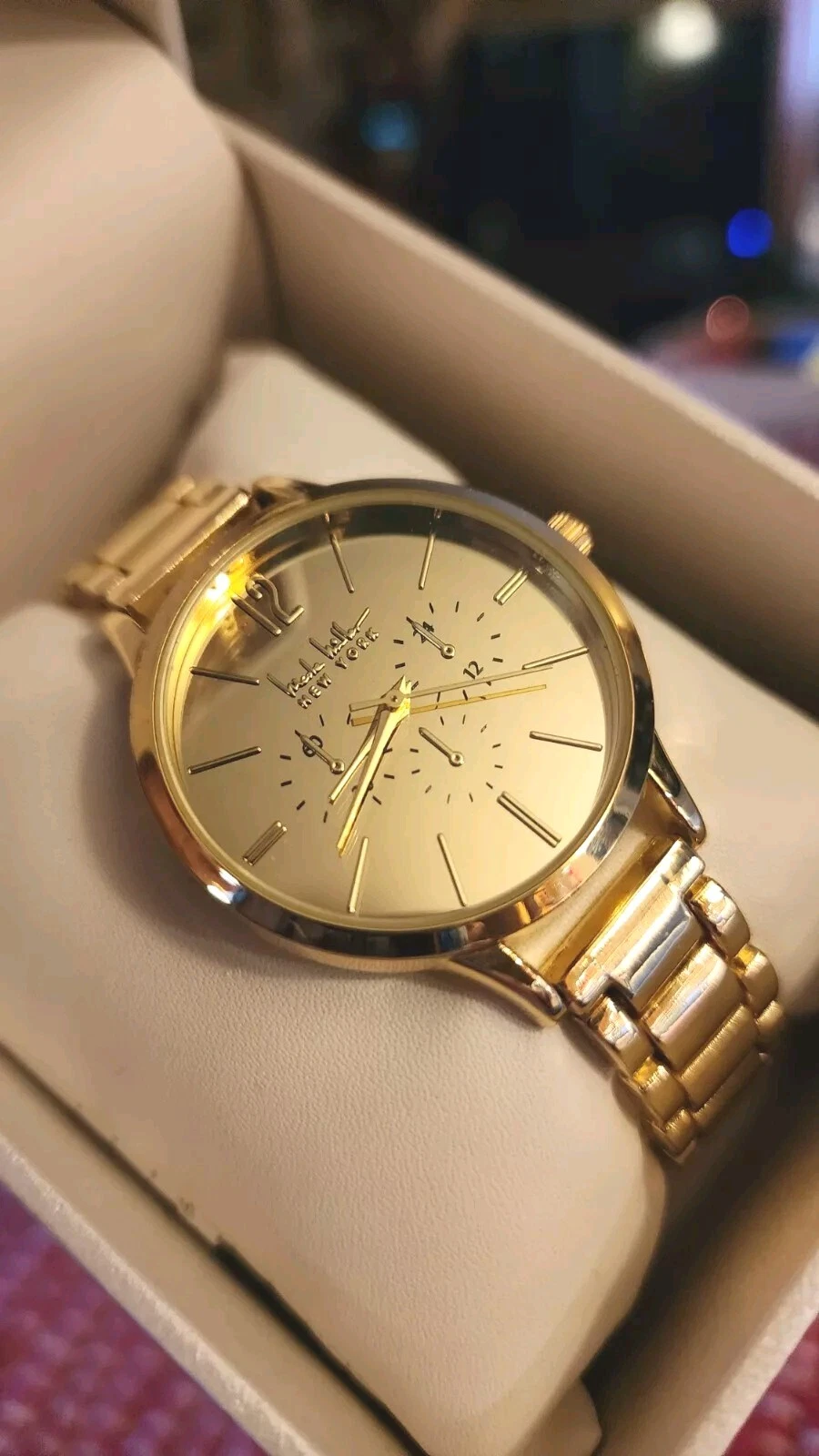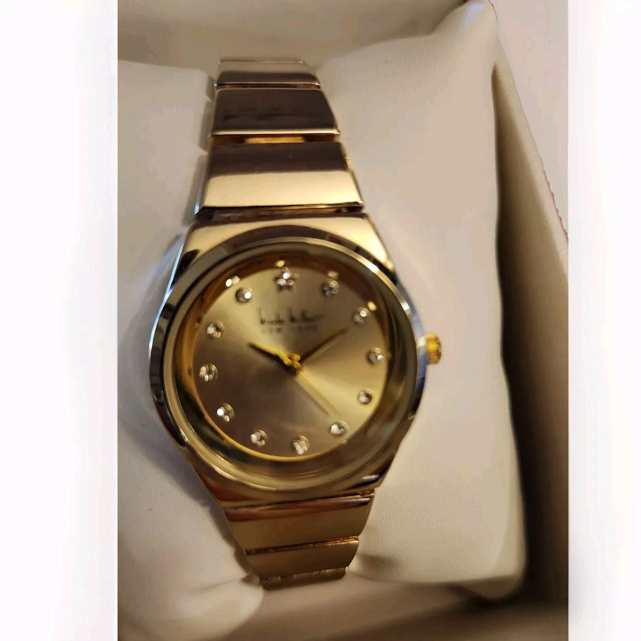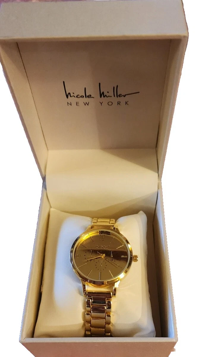 Nicole Miller Womens Watch Analog Gold Tone Round Face Elegant Modern Boss Lady