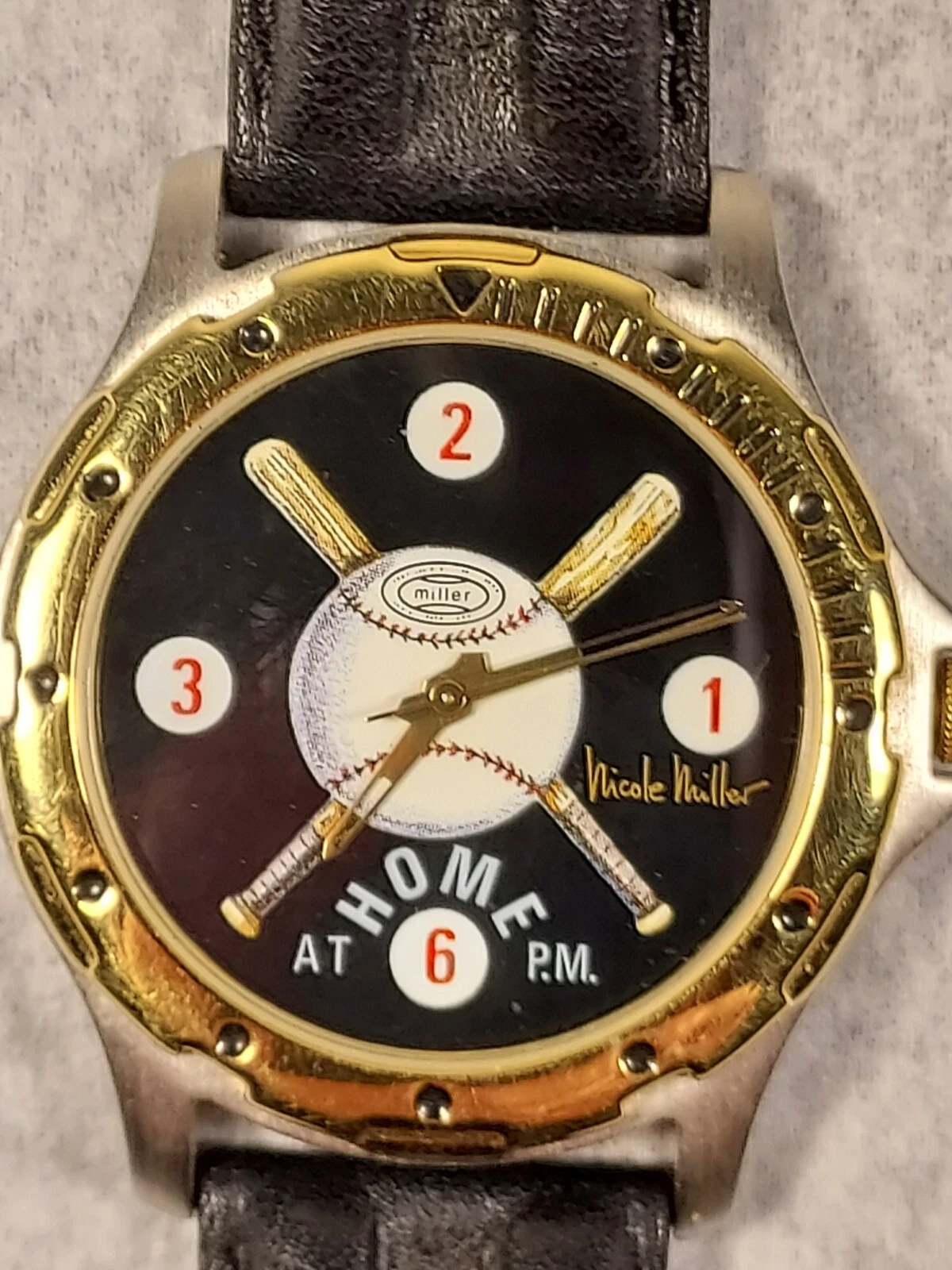 Rare Vintage Nicole Miller "At Home P.M." Baseball Sport Wristwatch New Battery