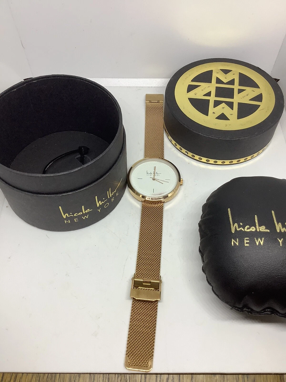 Nicole Miller Watch Rose tone Mesh Stainless Steel 7" Bracelet White Face New