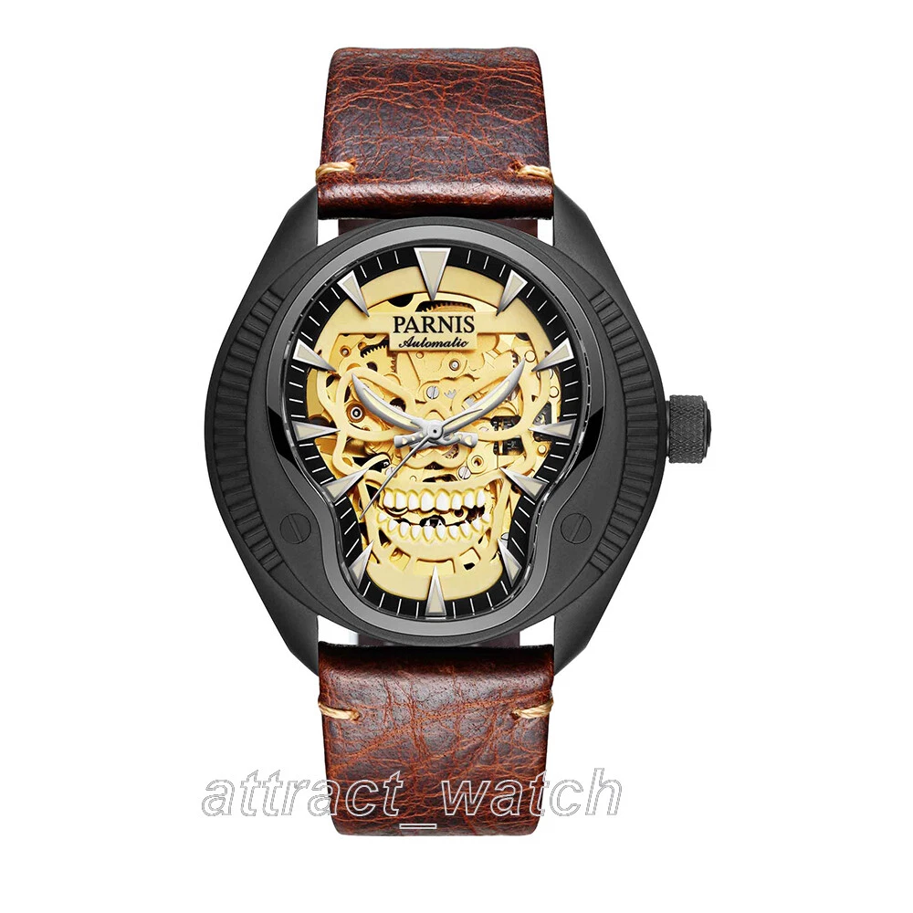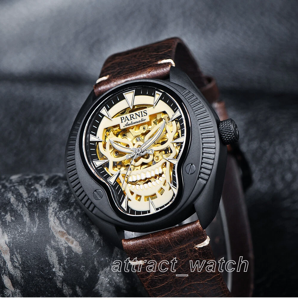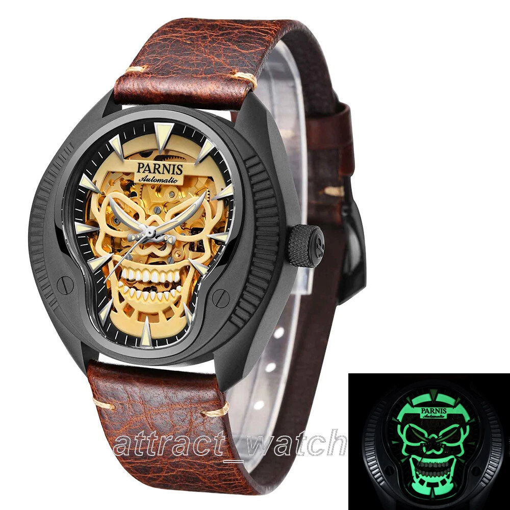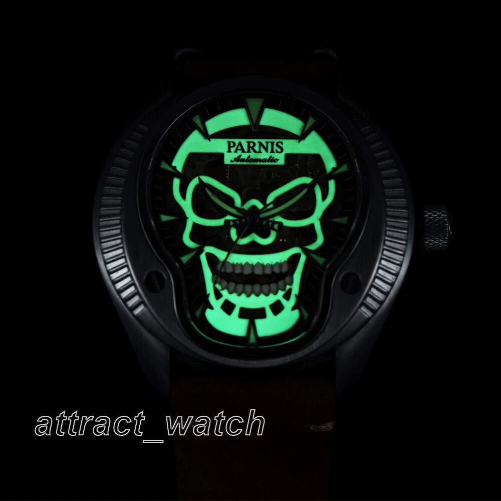 43mm Parnis Miyotal Automatic Mechanical Men Watch Luminous Skull Sapphire Glass