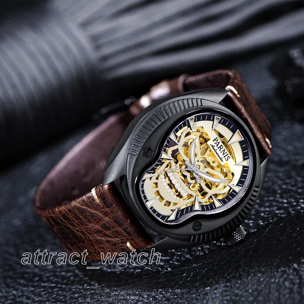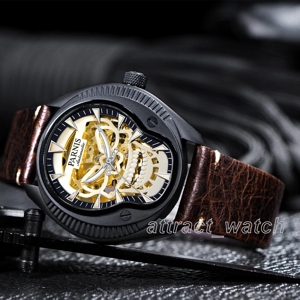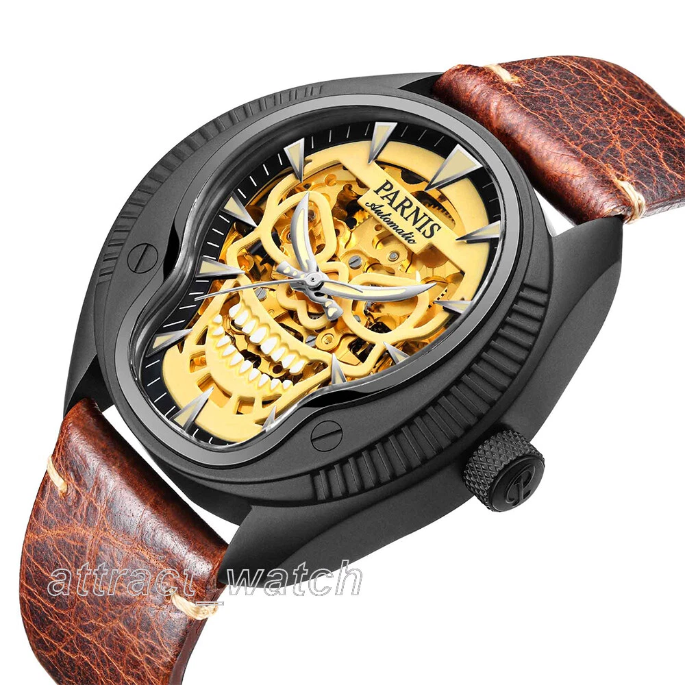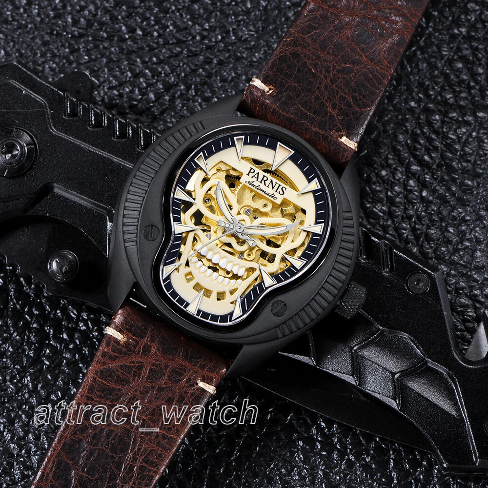 43mm Parnis Miyotal Automatic Mechanical Men Watch Luminous Skull Sapphire Glass