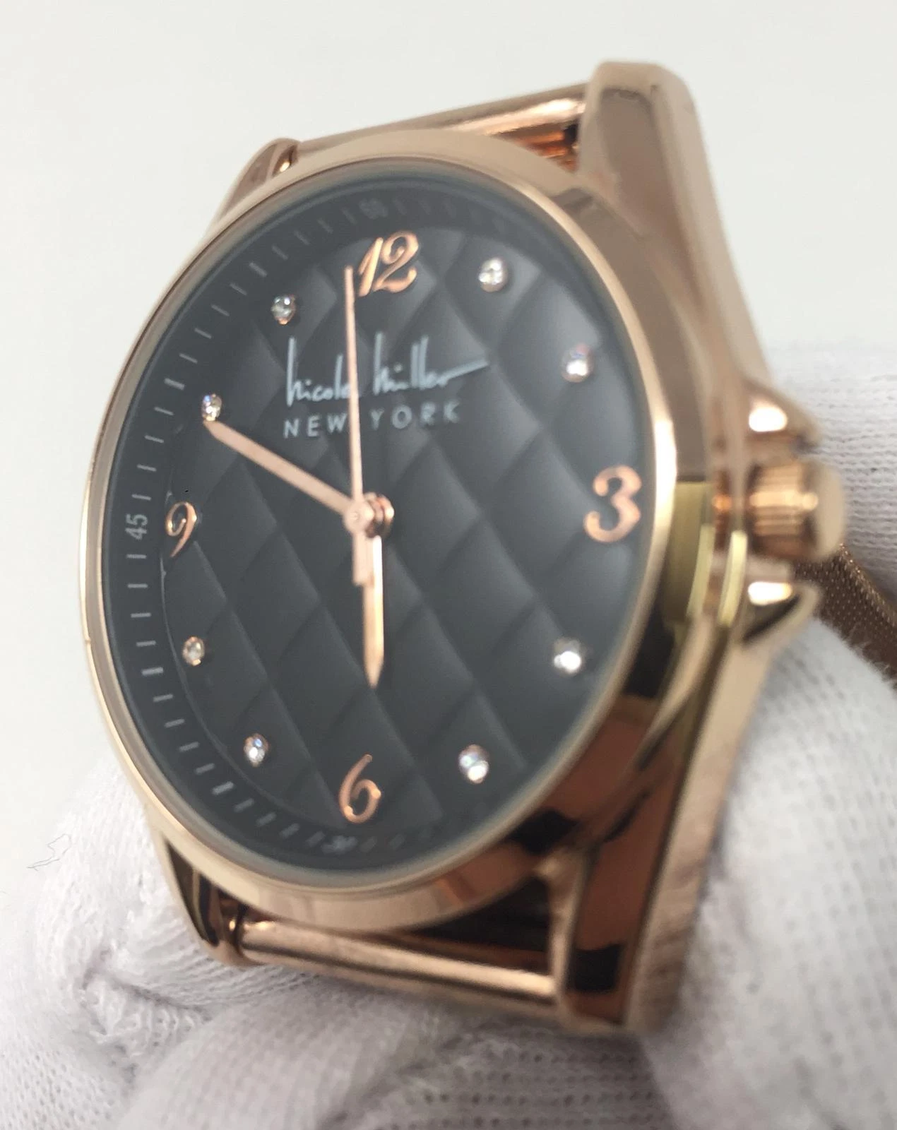 Nicole Miller Crystals Black Dial Rose Gold Mesh Women's Watch NY50248002 SD