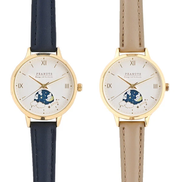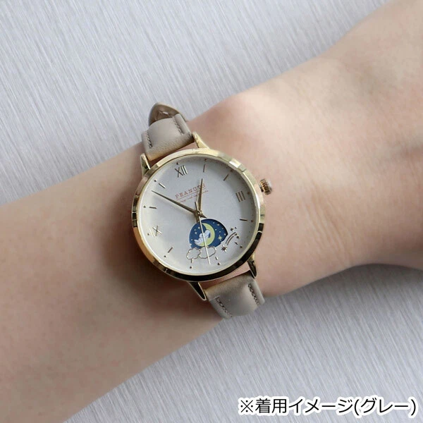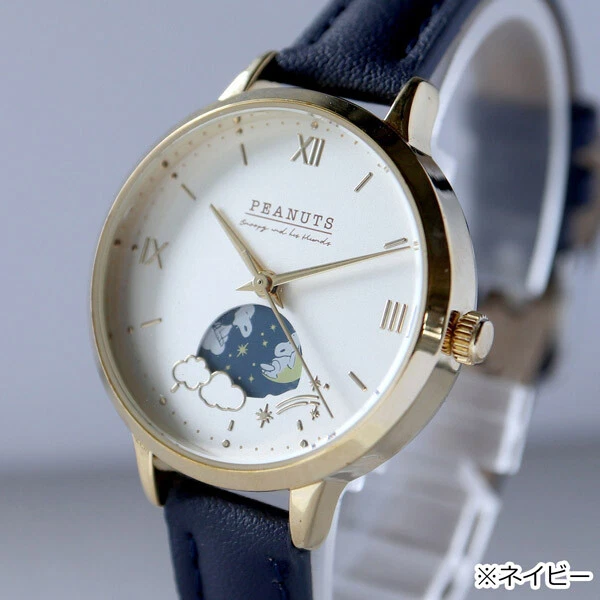 PEANUTS Snoopy Sun and Moon Watch Leather Band Navy/Gray Snoopy Town Japan New
