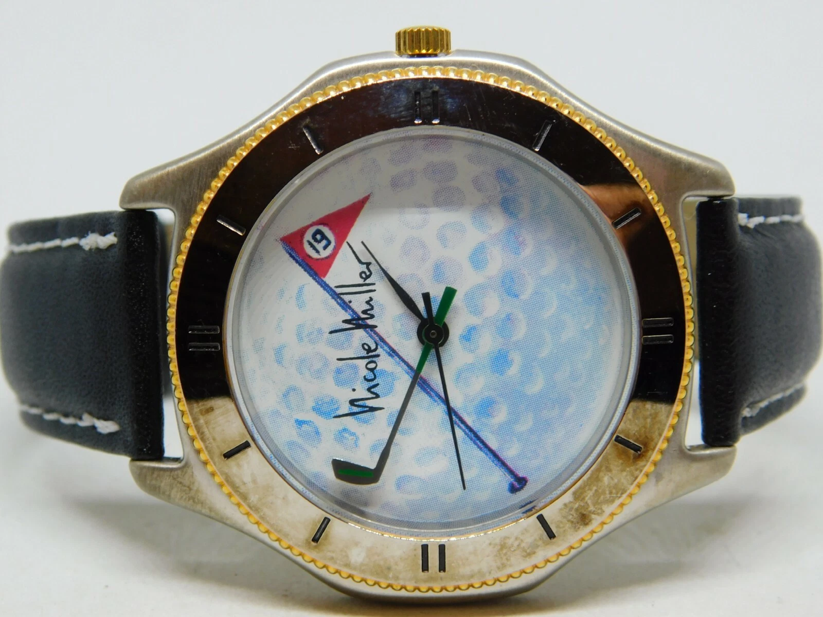 Nicole Miller Golf Genuine Leather Quartz Analog Men's Watch New Battery