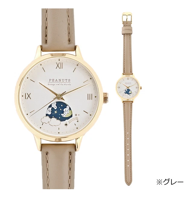 PEANUTS Snoopy Sun and Moon Watch Leather Band Gray Snoopy Town Japan New
