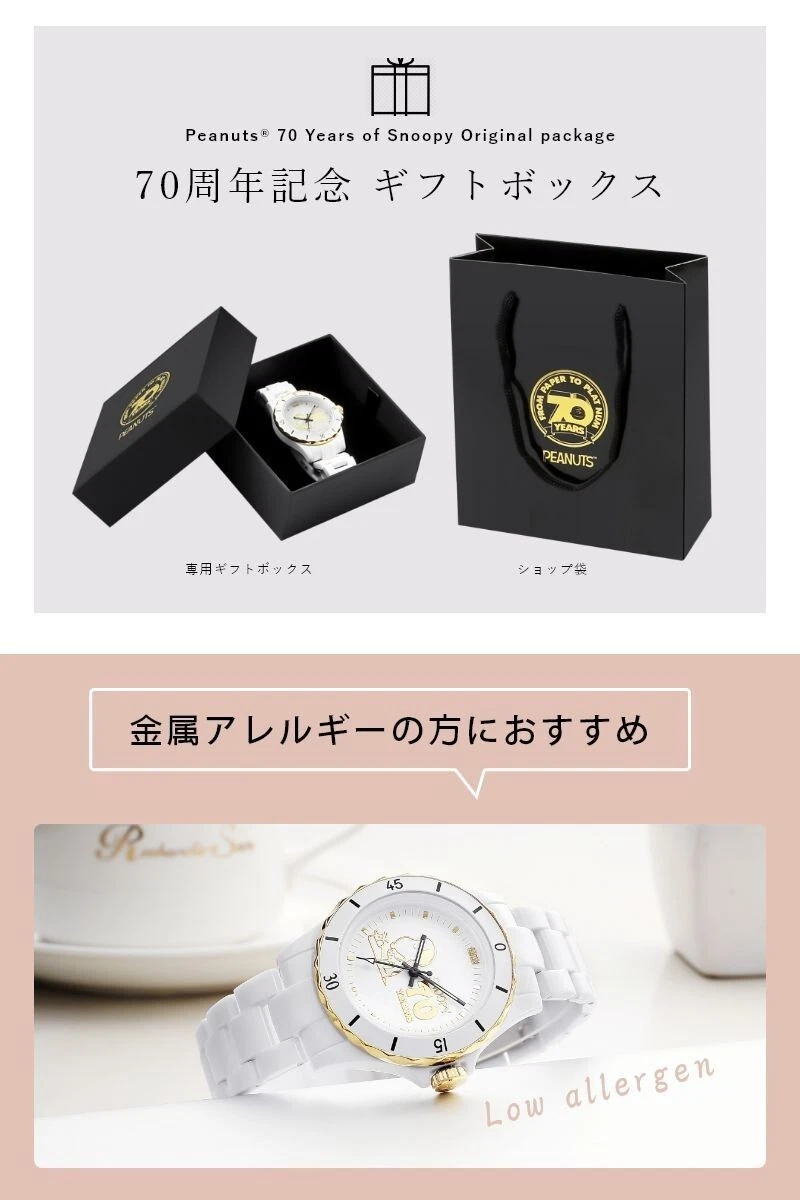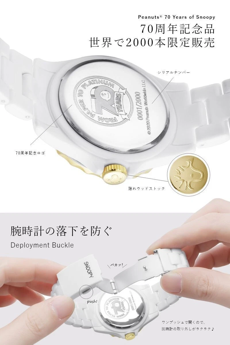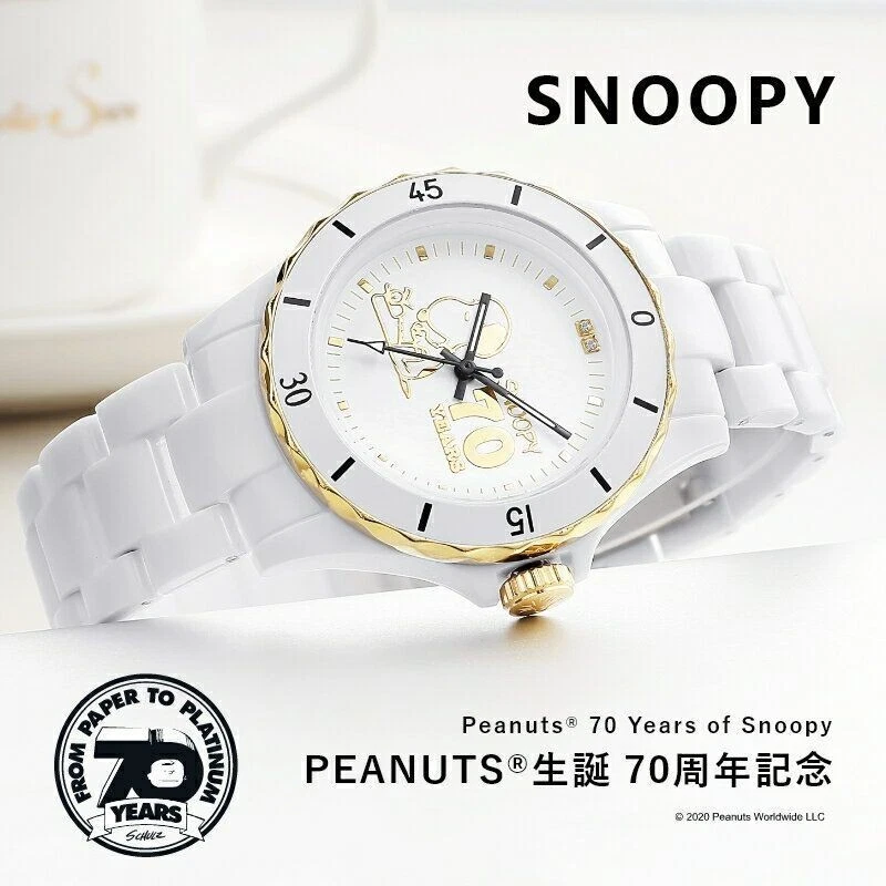 Snoopy PEANUTS 70th Anniversary Diamond Hybrid Ceramic Watch White New w/Box