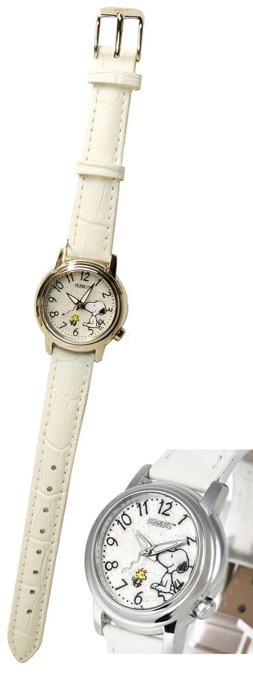 SNOOPY Quartz Watch  Japanese Movemen Stainless Steel Faux Leather Band 14mm