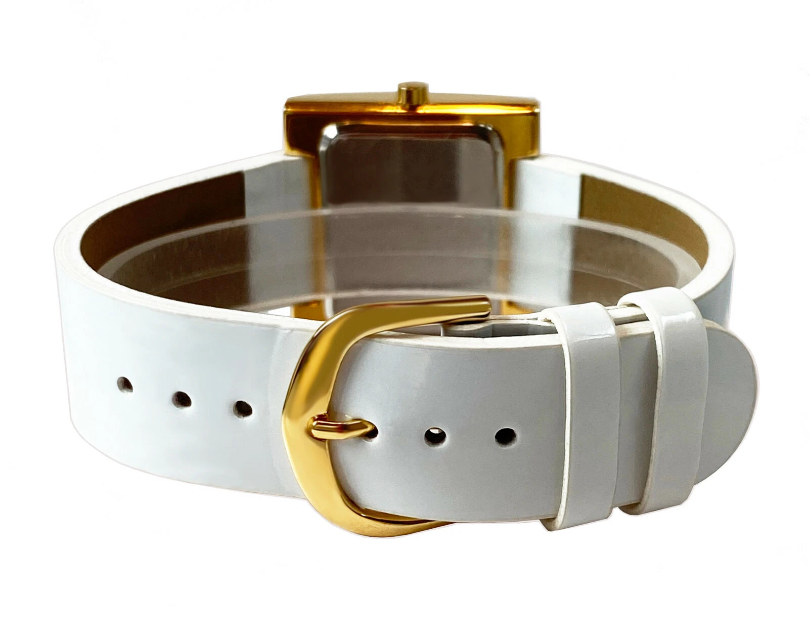 Pedre Women's Gold-Tone Watch 6012GX w Glossy White Strap. MINT