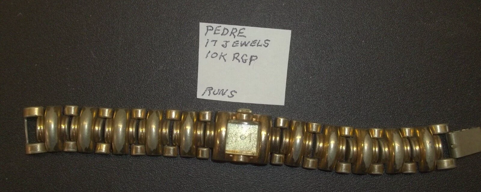 Pedre 17 Jewel Vintage Women's Wrist Watch 10K Gold Plate Link Band WINDS-RUNS