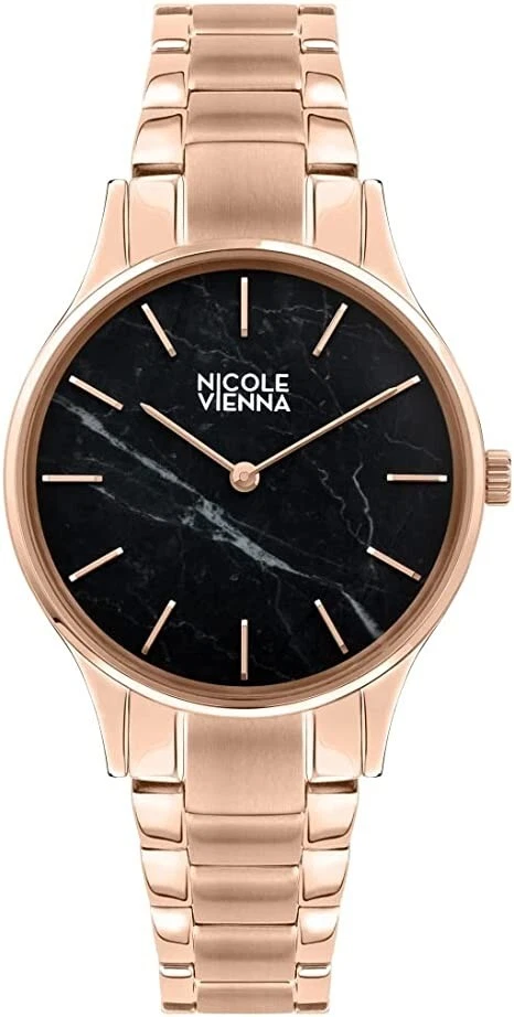 Nicole Vienna Women's Watch, Black Marble Dial, Rose Gold, Rose Gold Bracelet
