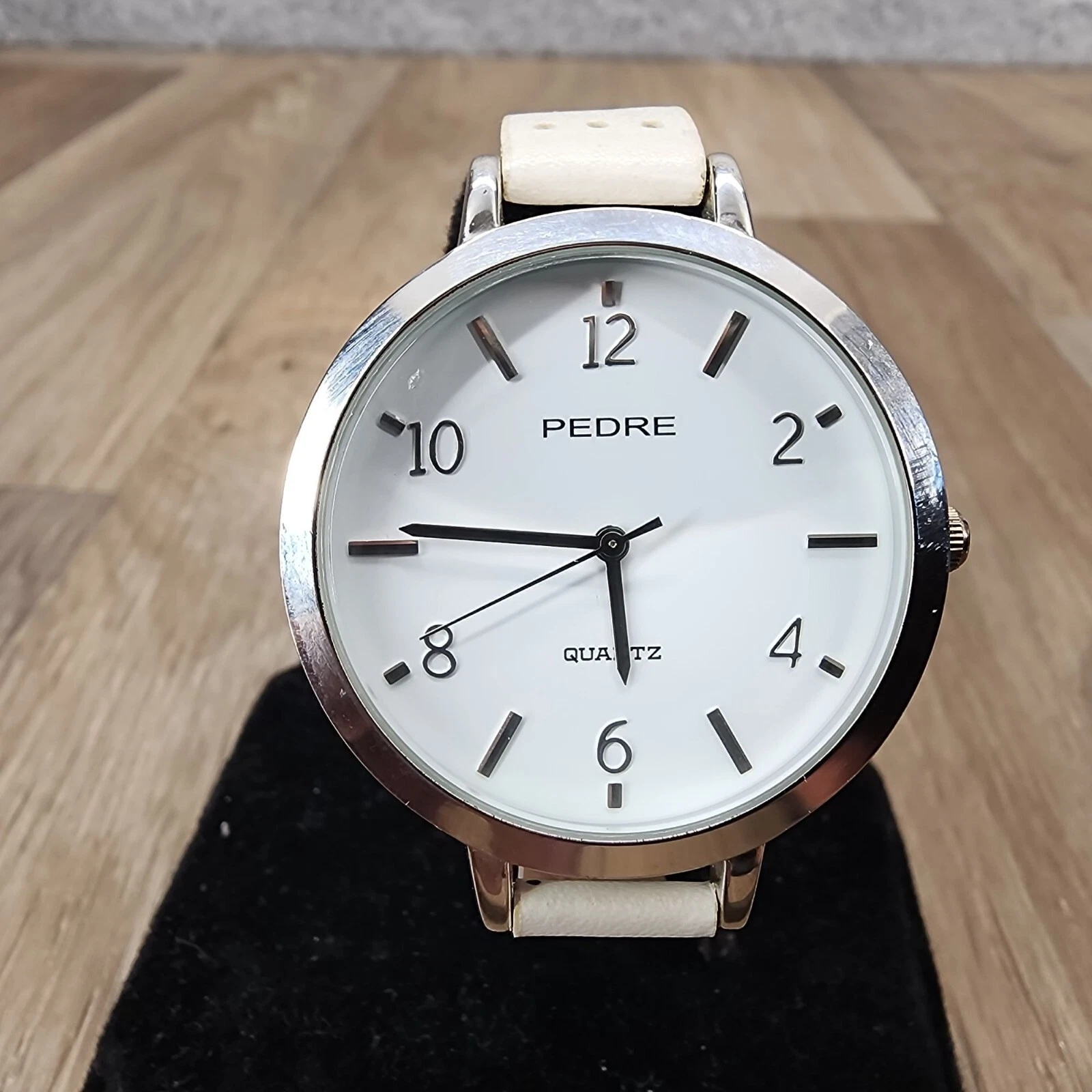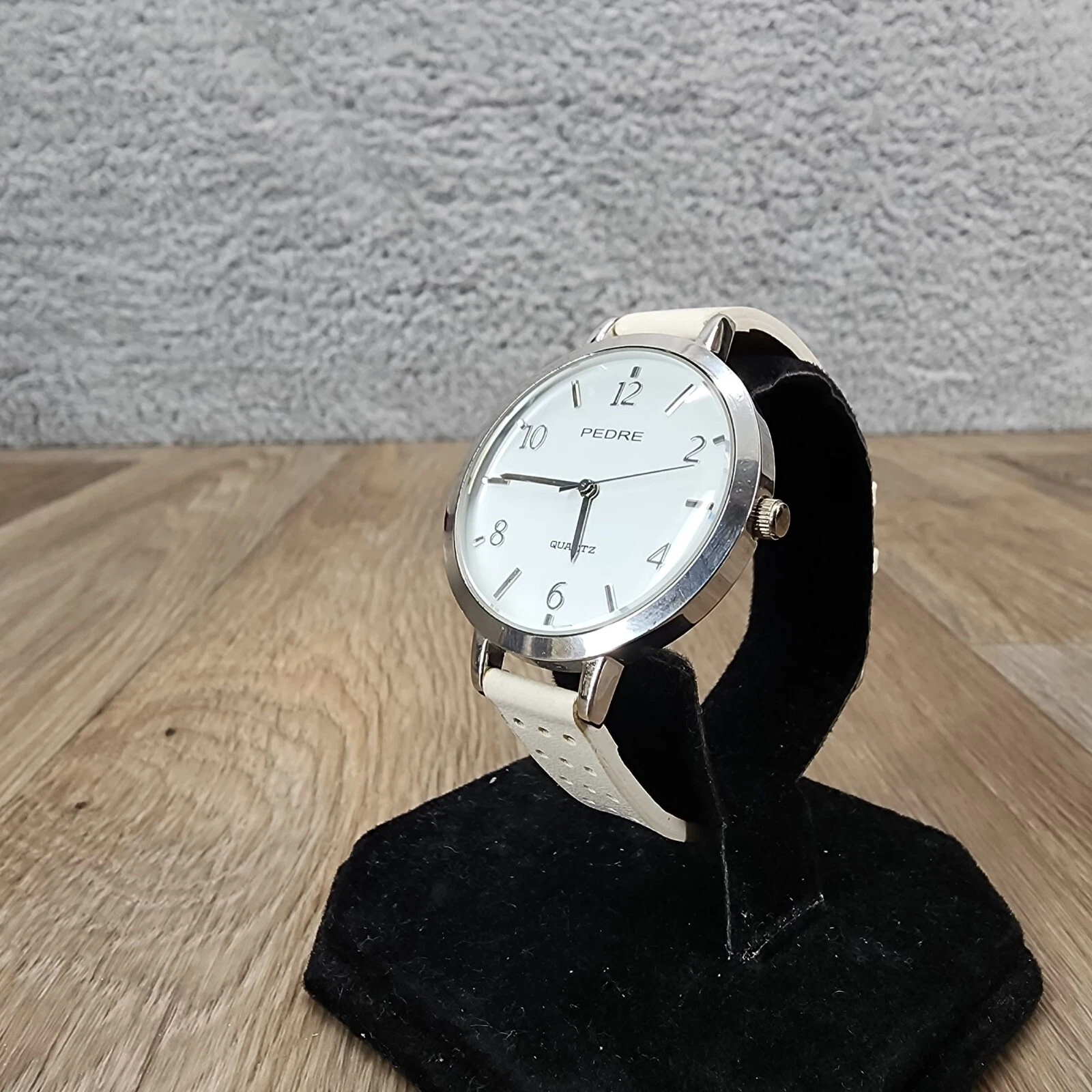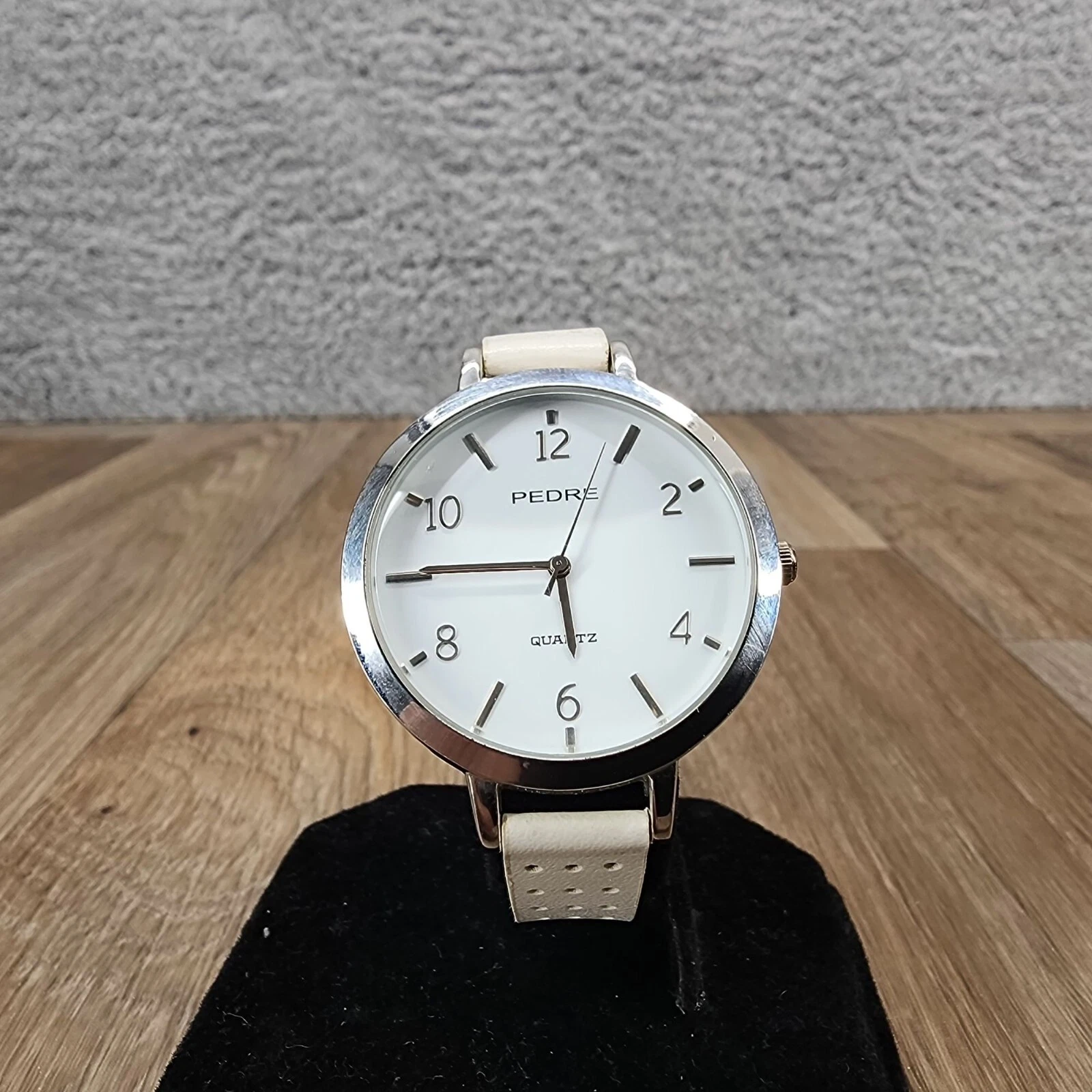 Pedre Women's Silver-Tone White Leather Perforated Band Wrist Watch