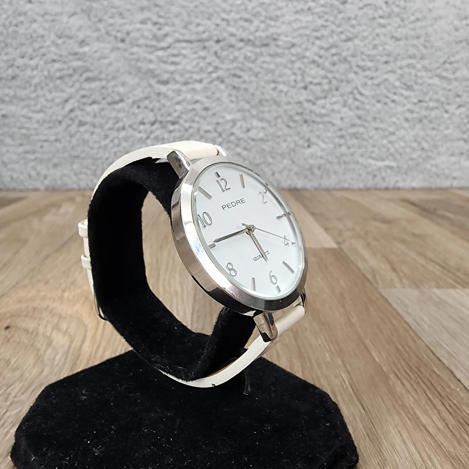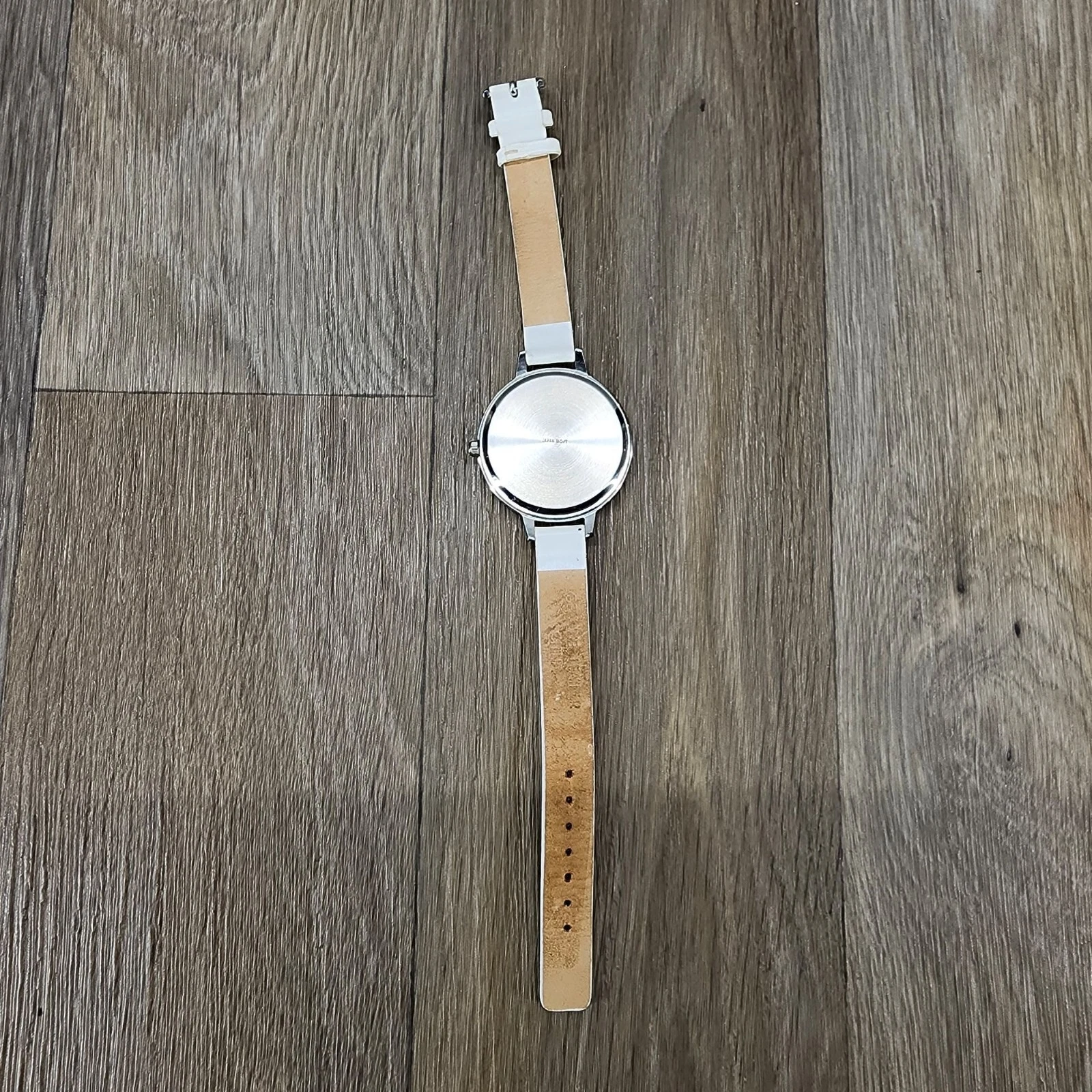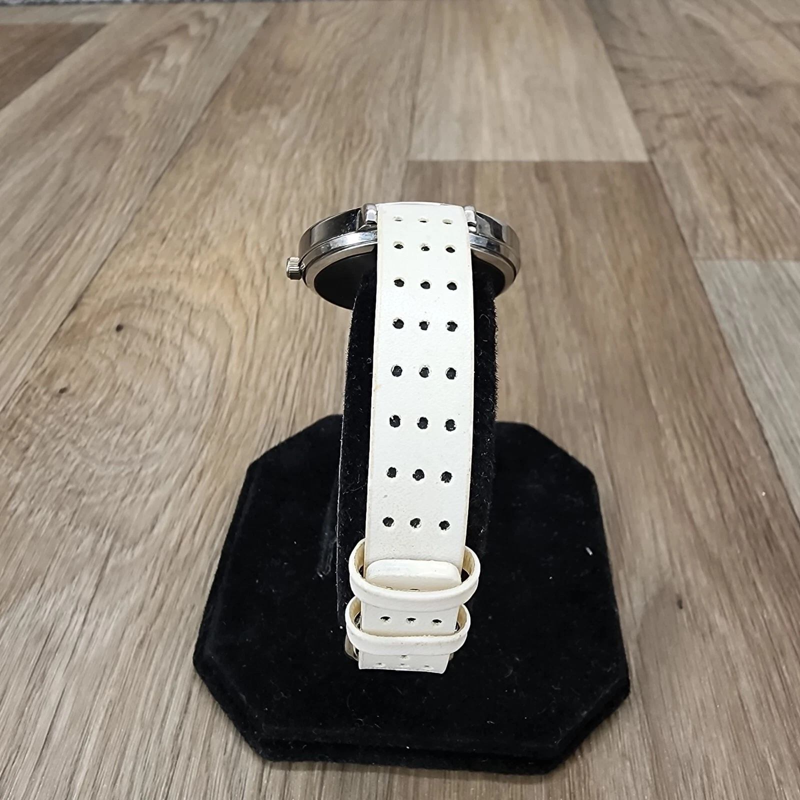 Pedre Women's Silver-Tone White Leather Perforated Band Wrist Watch