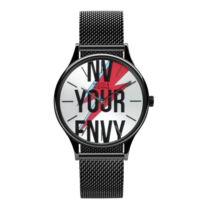 Nicole Vienna Women's Watch, Silver And Red Dial, Steel Mesh Bracelet