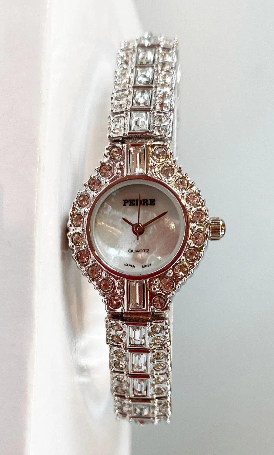 Pedre Women's Silver-Tone Austrian Crystal MoP Bracelet Watch . Excellent Cond!