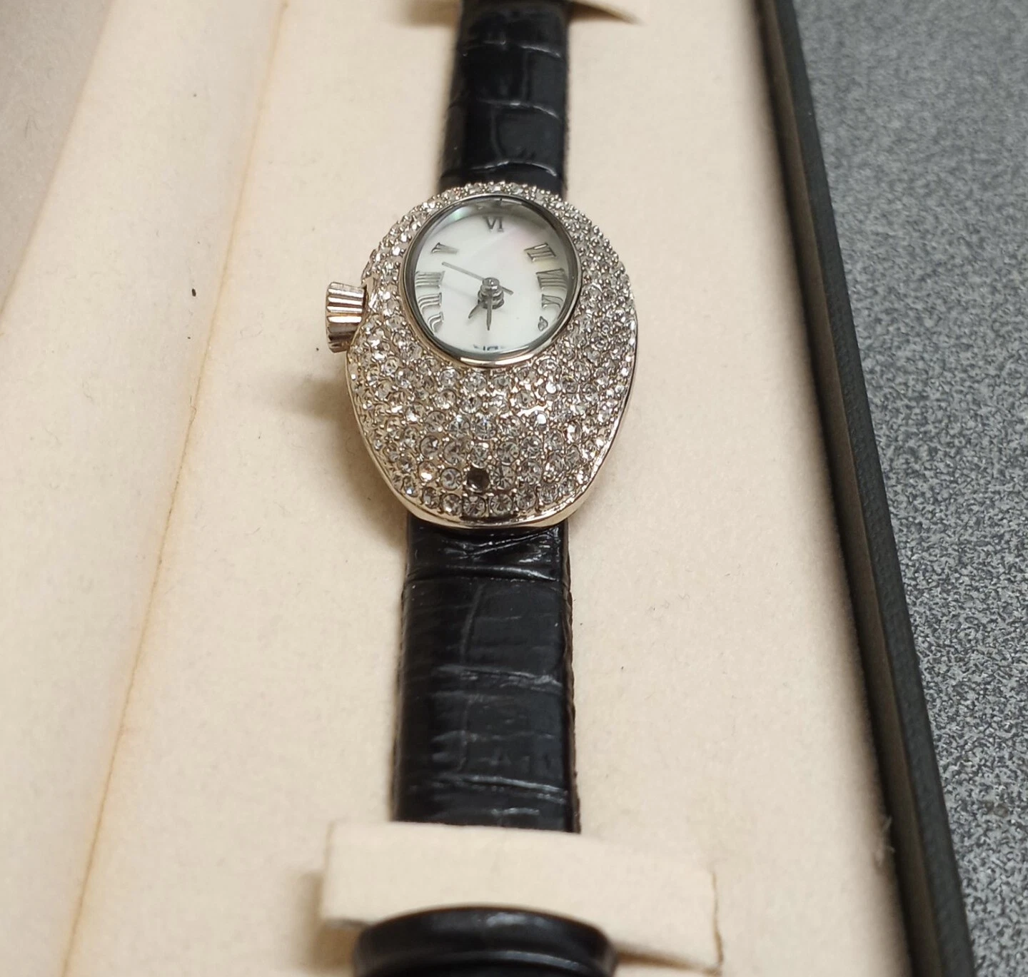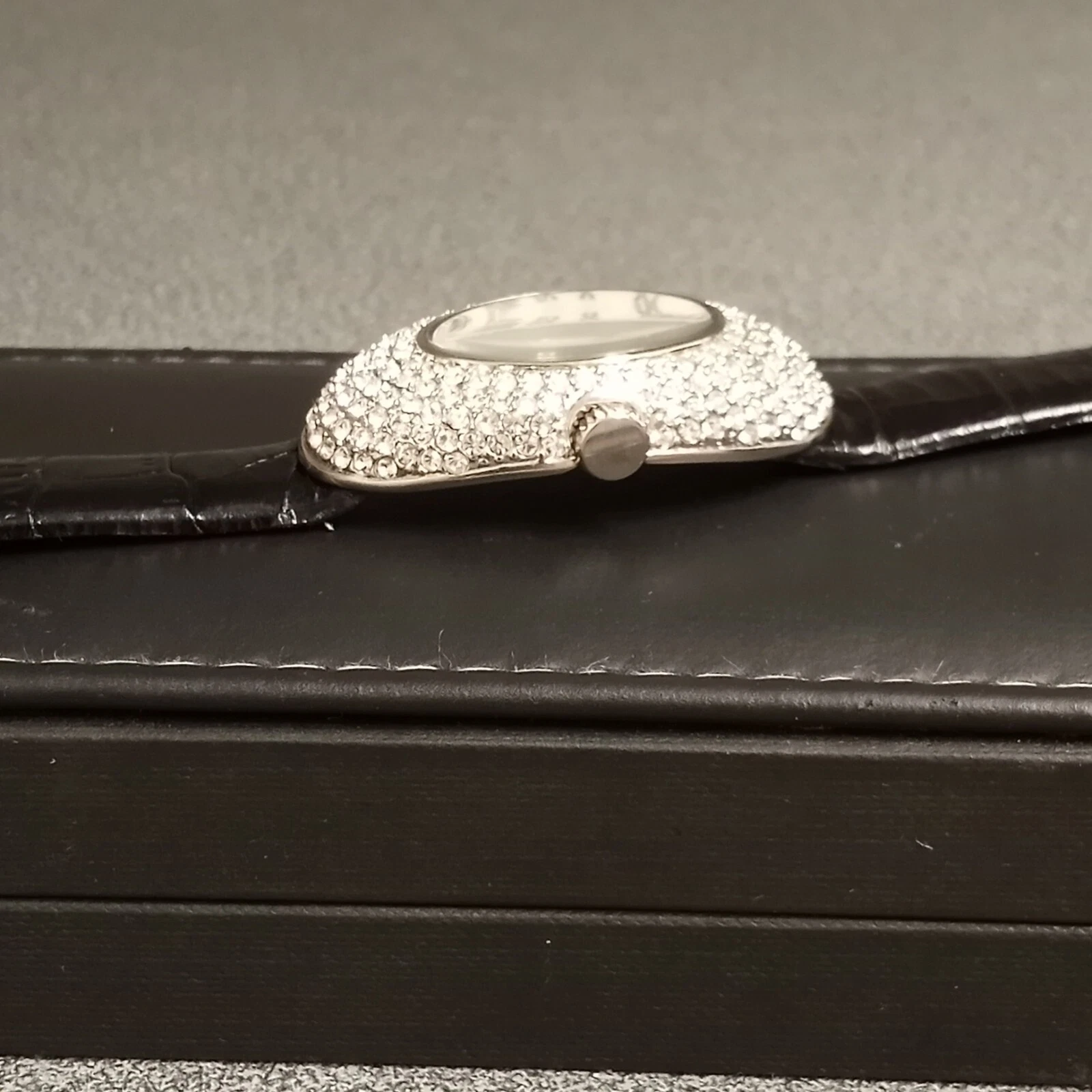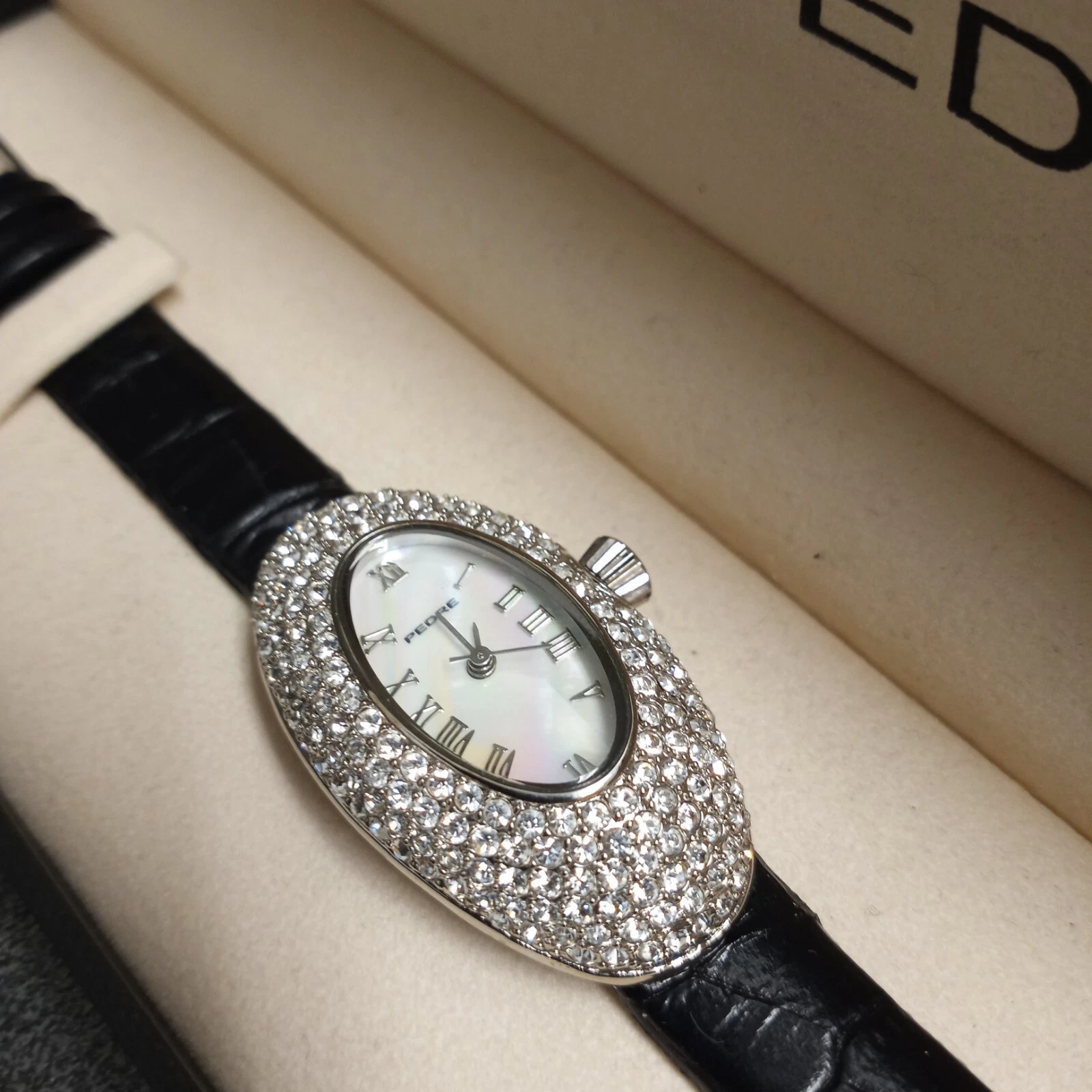 NEW Pedre Mother of Pearl Jewel Encrusted Watch with Black Leather Band