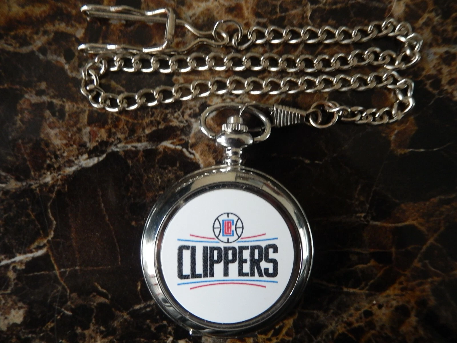 LOS ANGELES CLIPPERS BASKETBALL NBA CHROME POCKET WATCH WITH CHAIN (NEW)