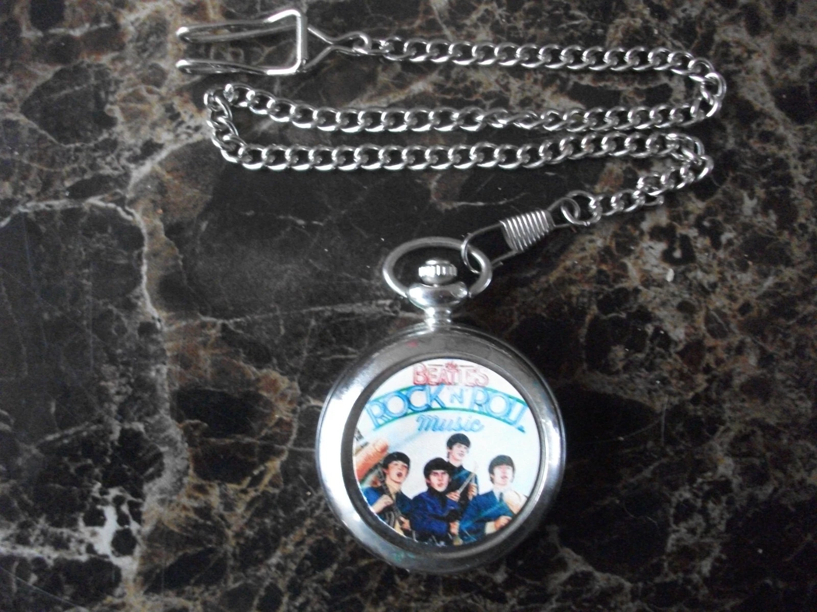 THE BEATLES ROCK AND ROLL MUSIC CHROME POCKET WATCH WITH CHAIN (NEW)