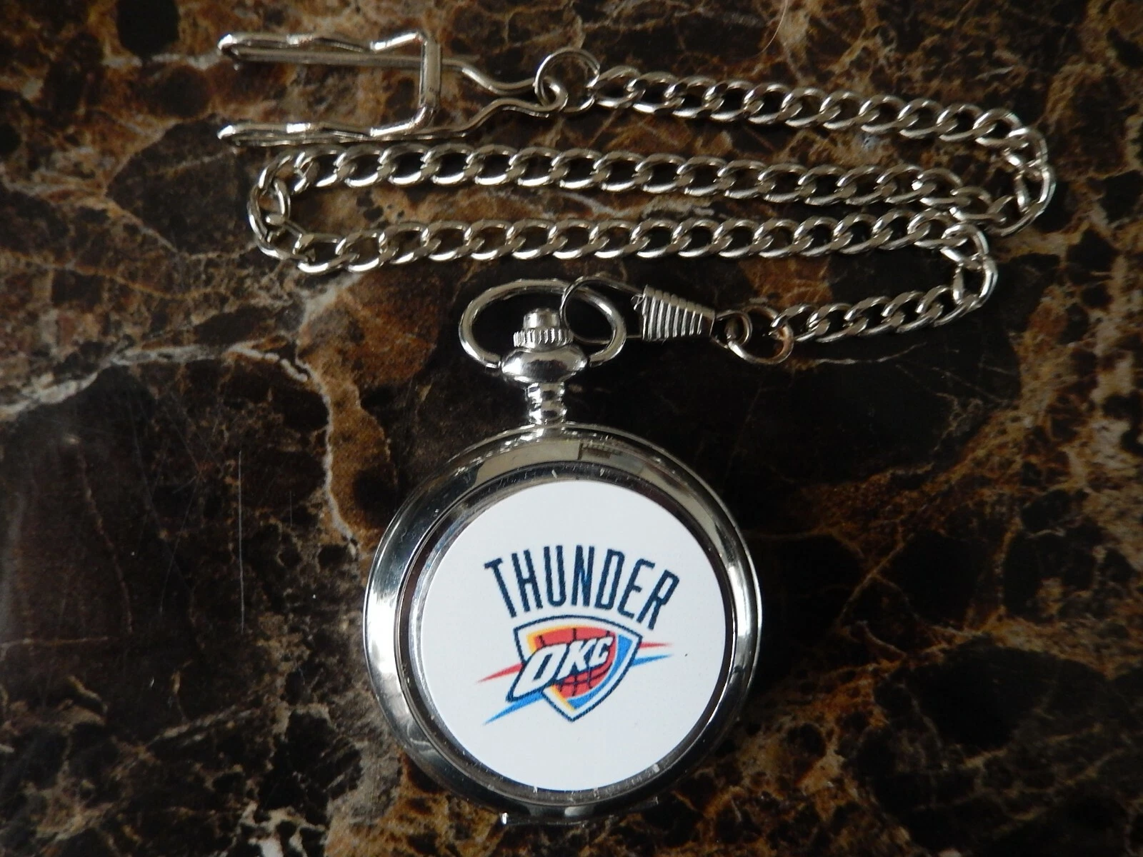 OKLAHOMA CITY THUNDER BASKETBALL NBA CHROME POCKET WATCH WITH CHAIN (NEW)