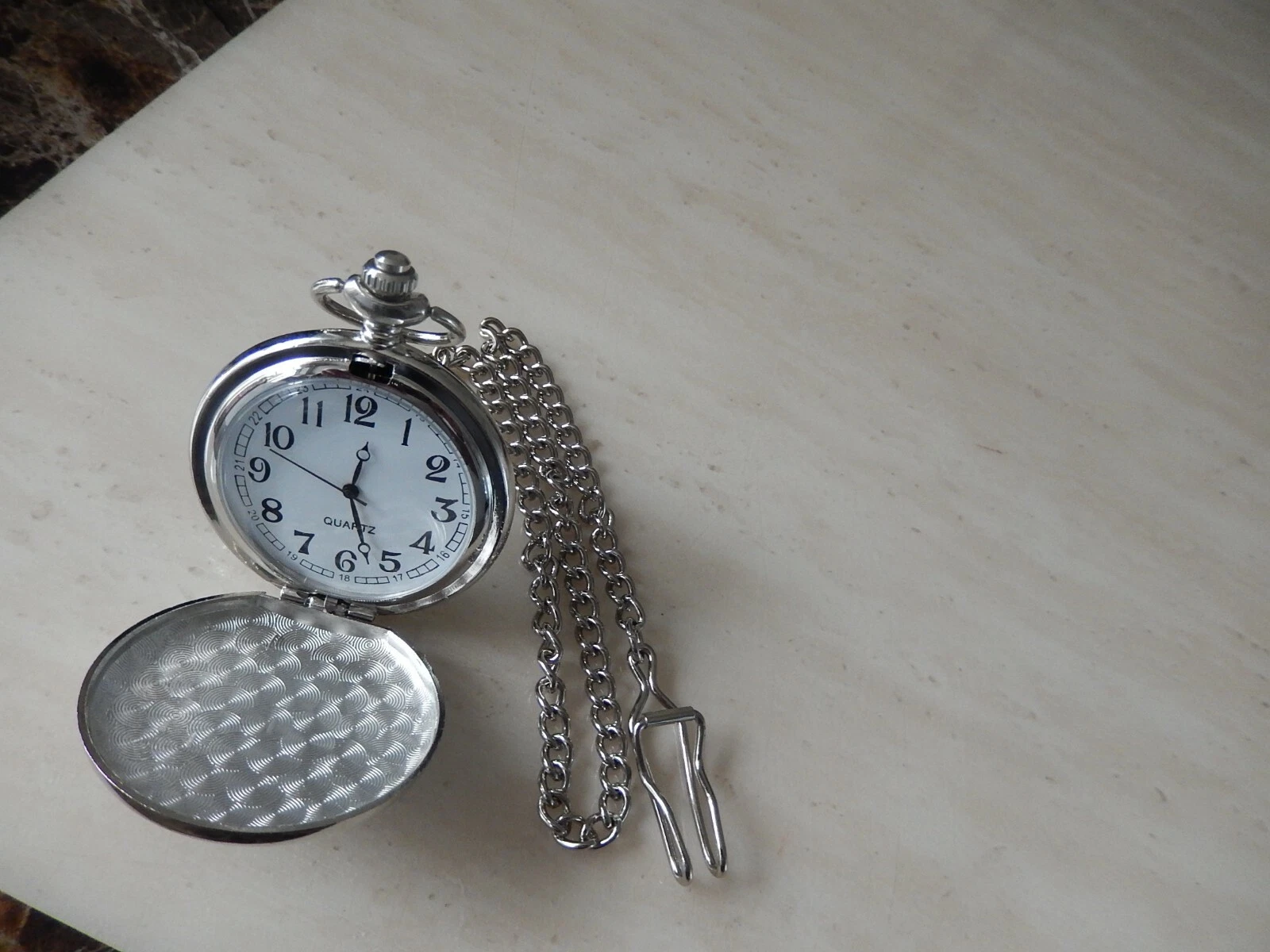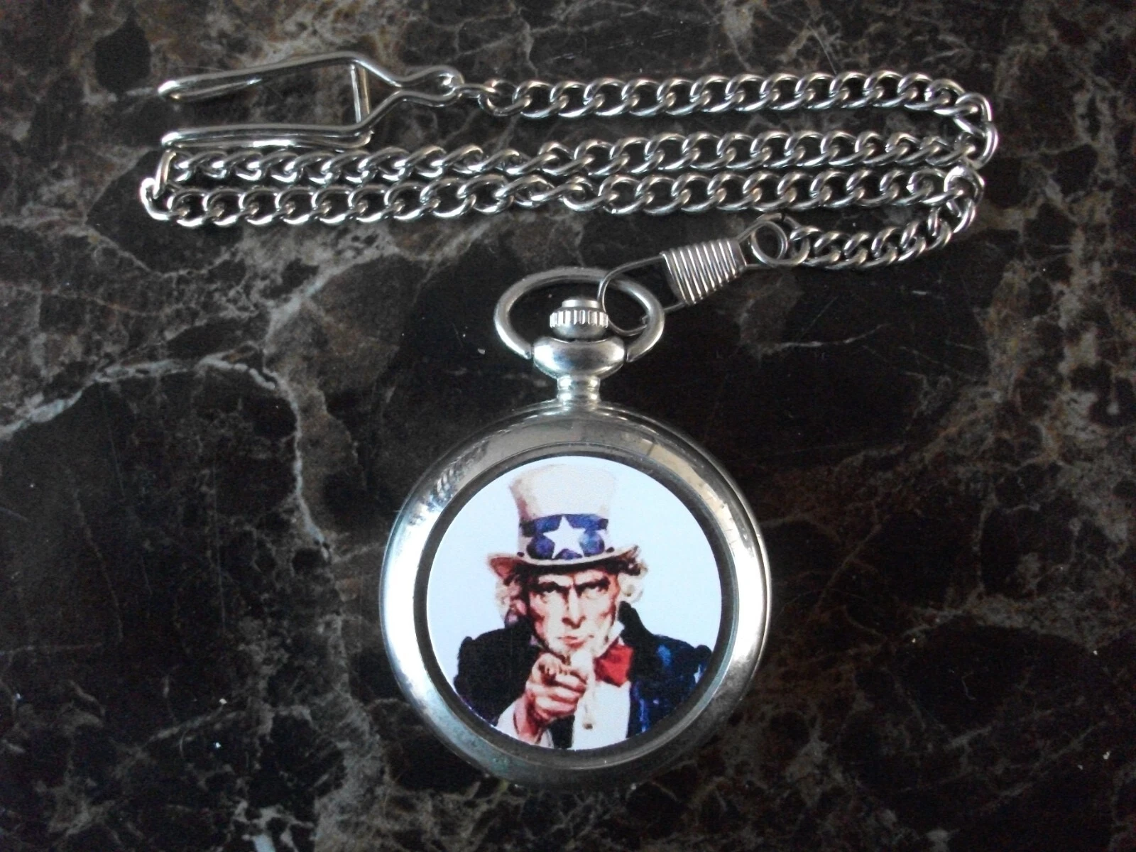 UNCLE SAM CHROME POCKET WATCH WITH CHAIN (NEW)