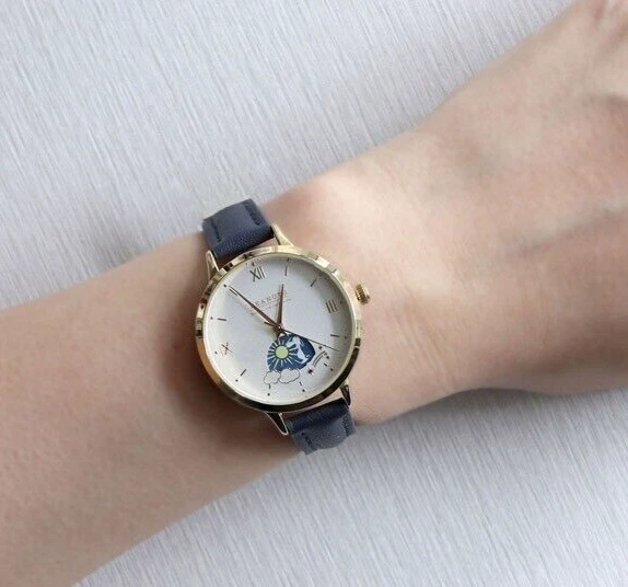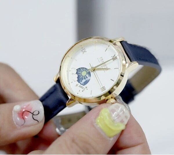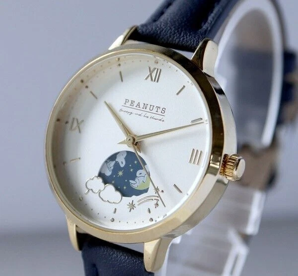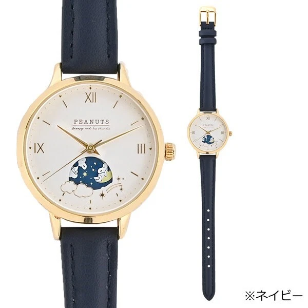 Snoopy Sun and Moon Watch Genuine Leather Belt Peanuts Navy Made in Japan New