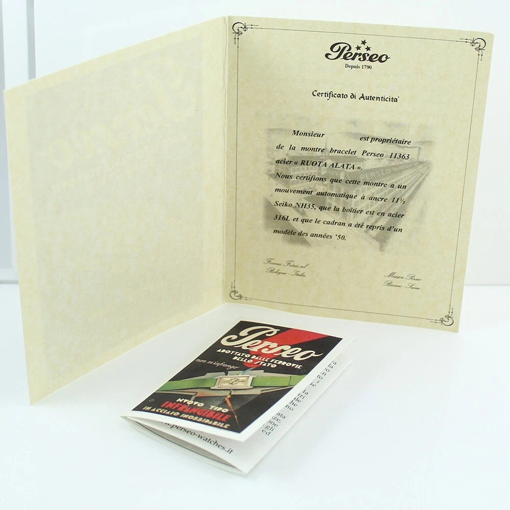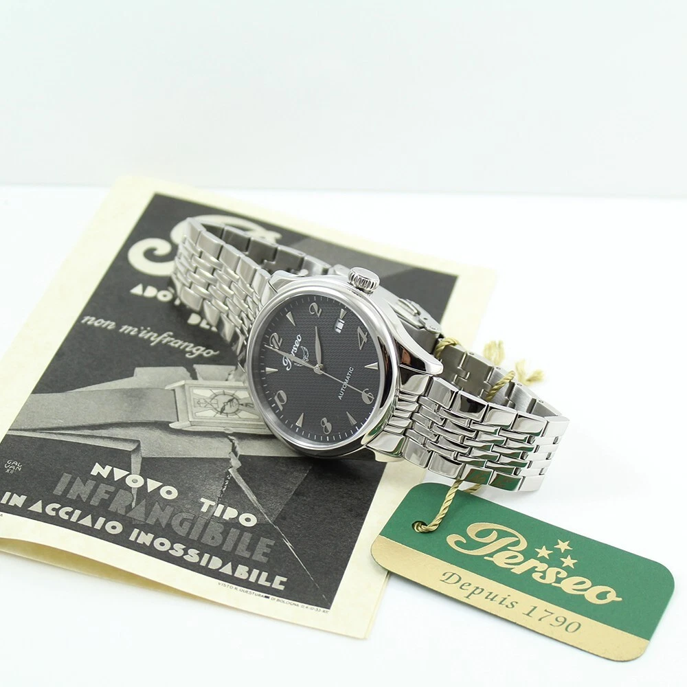 Perseo Men's Mechanical Automatic Watch With Winged Wheel Steel Case 39 Mm