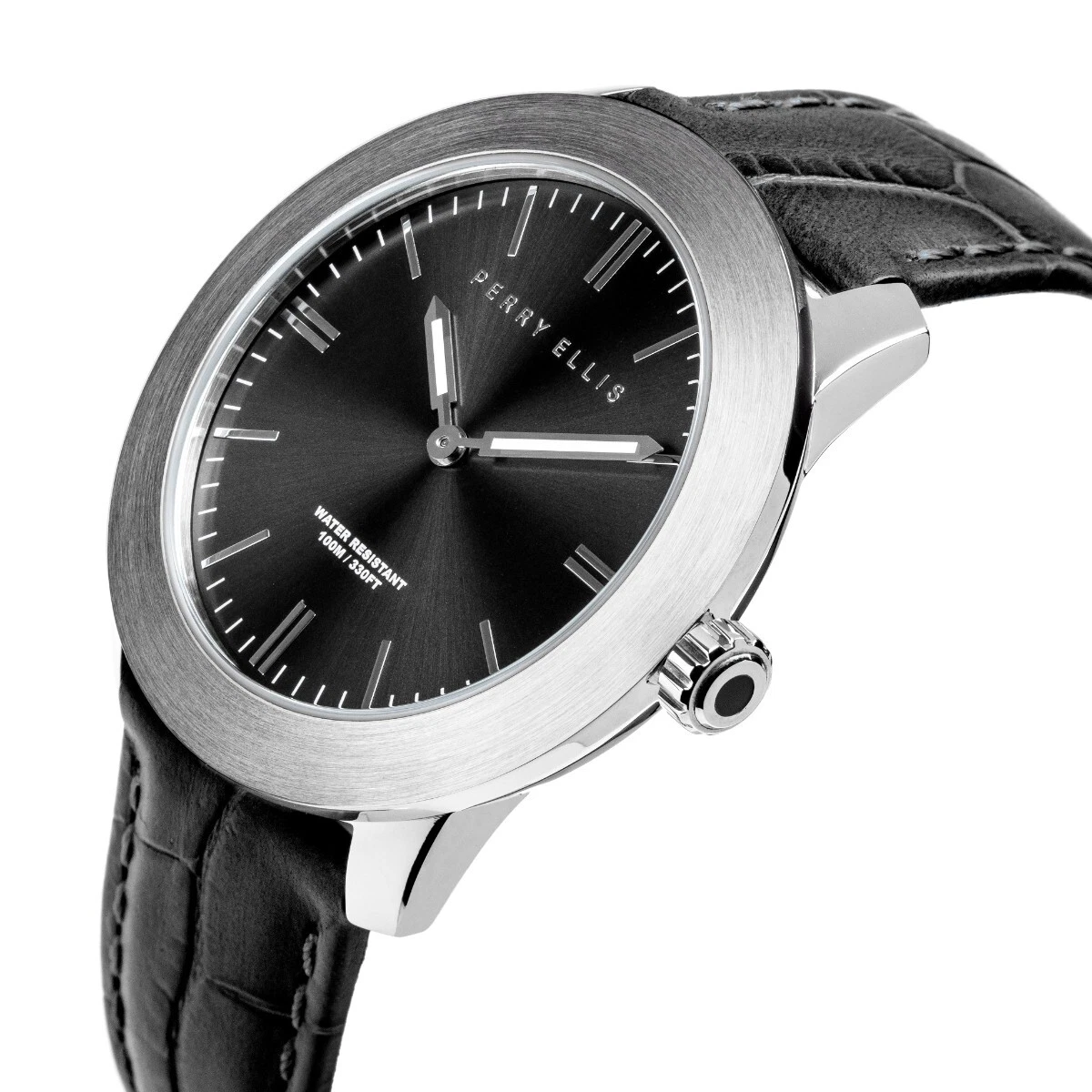 Perry Ellis 42mm Slimline Black Silver SS 100M WR Mens Watch PEW07002-01 Invicta