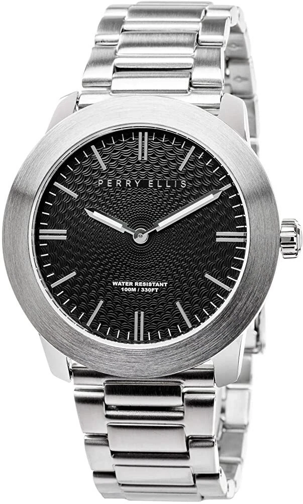 Perry Ellis Unisex Slim Elegant Black Dial Stainless Steel Watch 07001-02