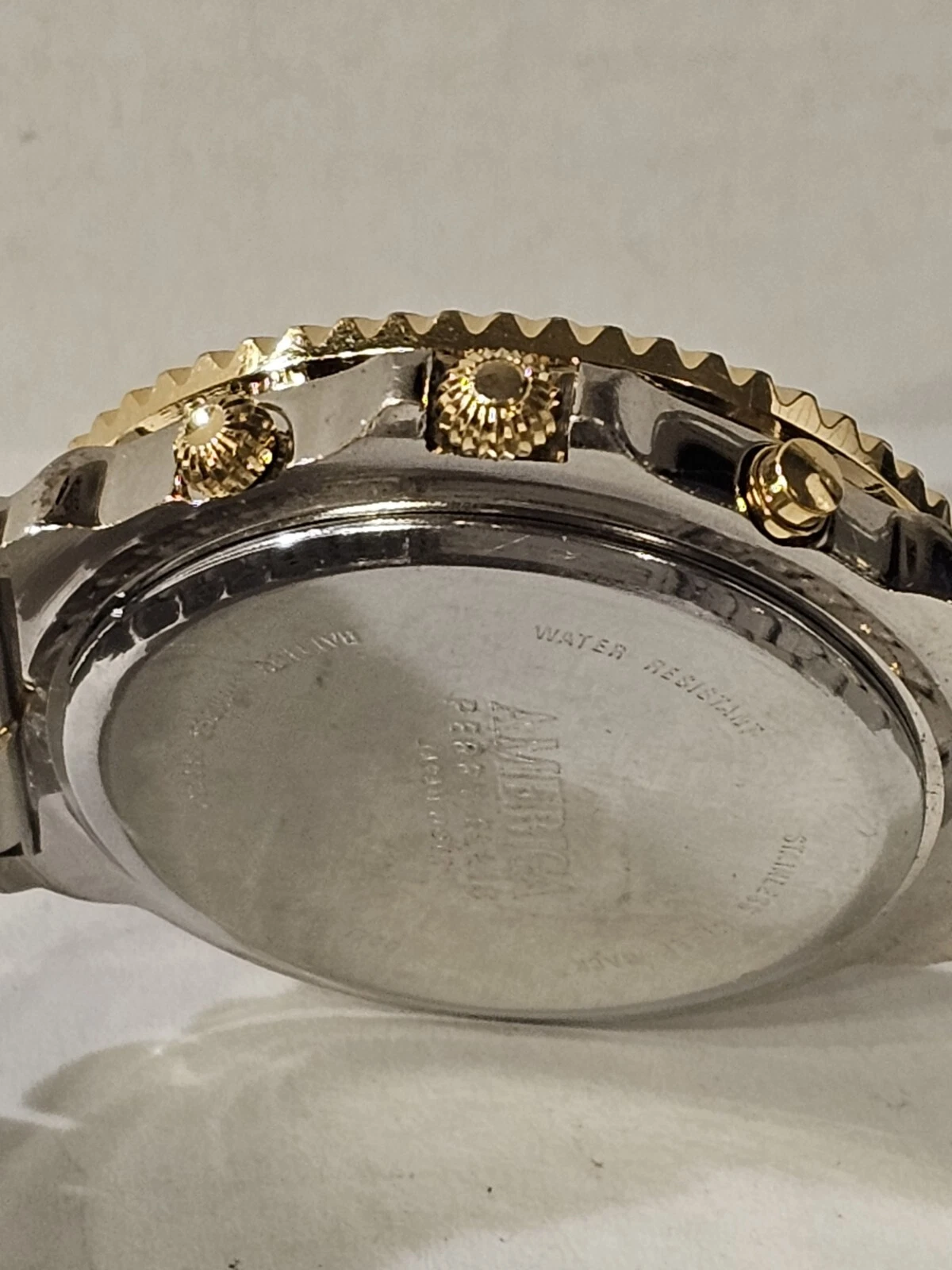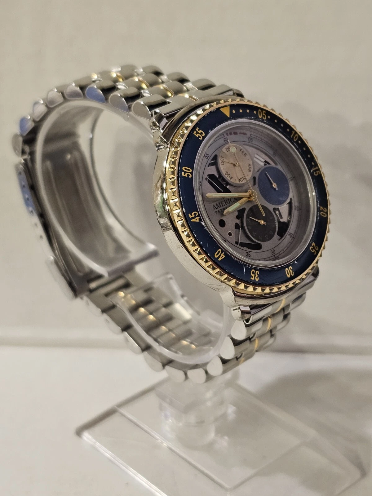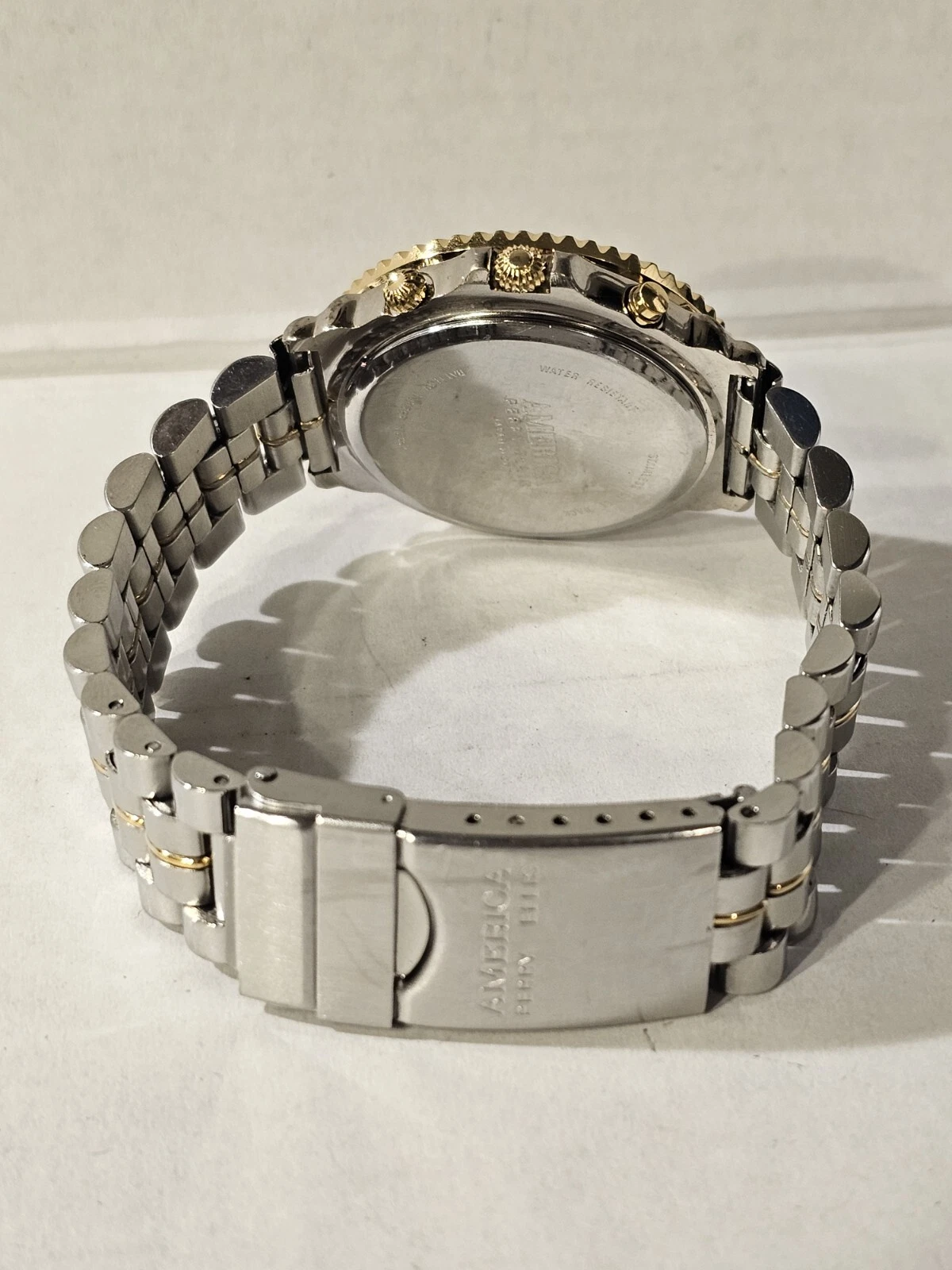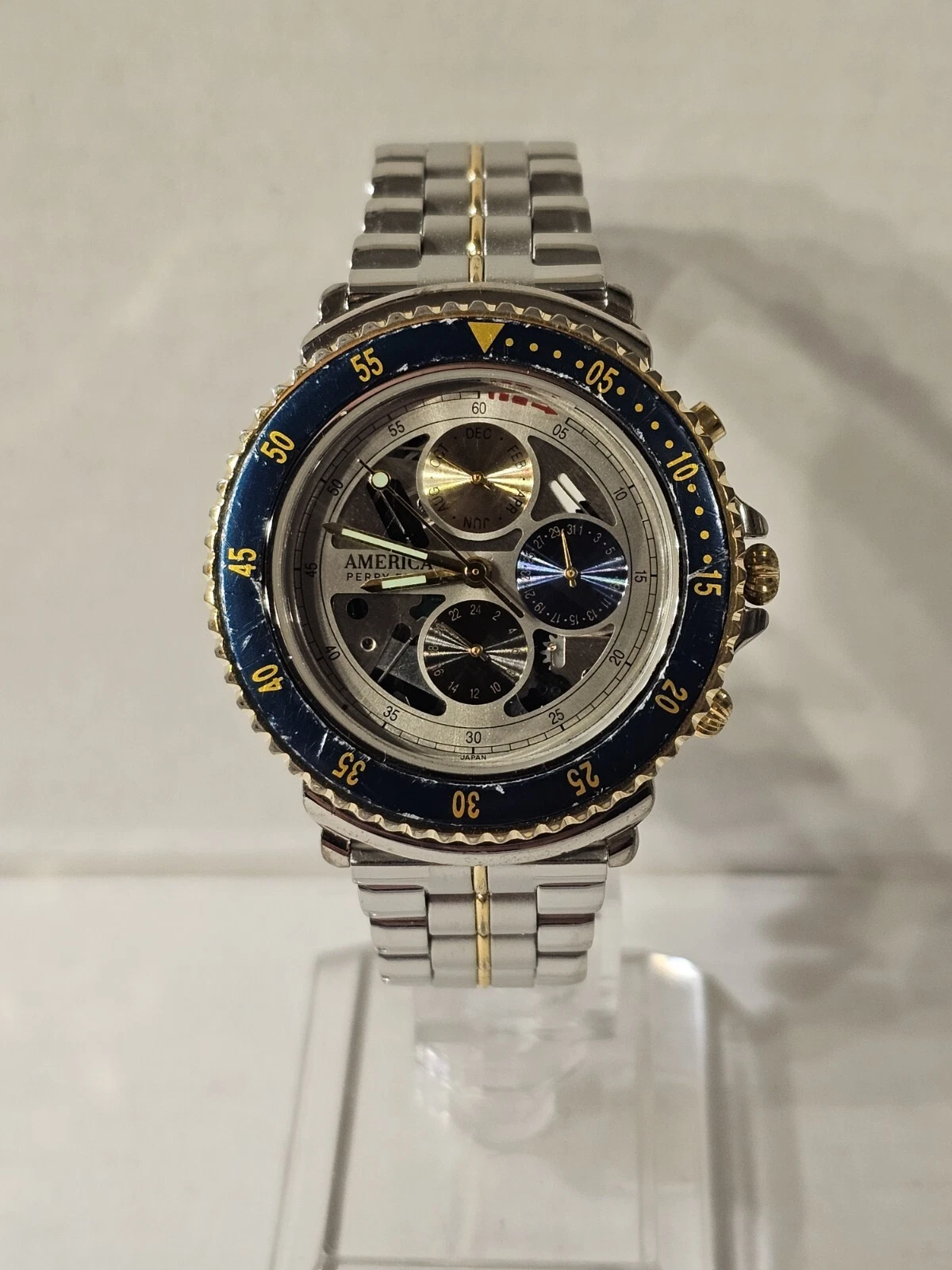 America By Perry Ellis Mens Multifunction Watch Silver/gold Tone Blue Bezel