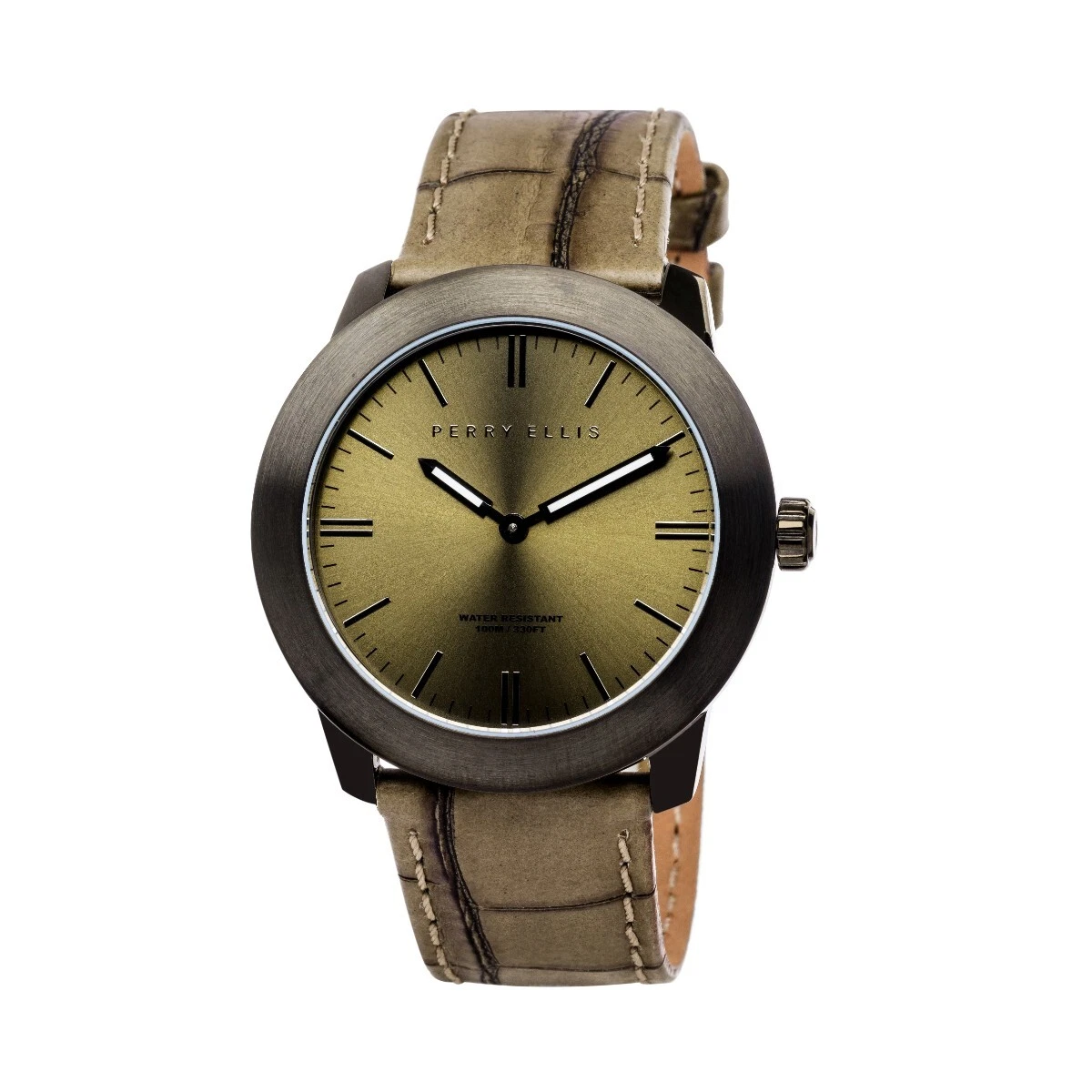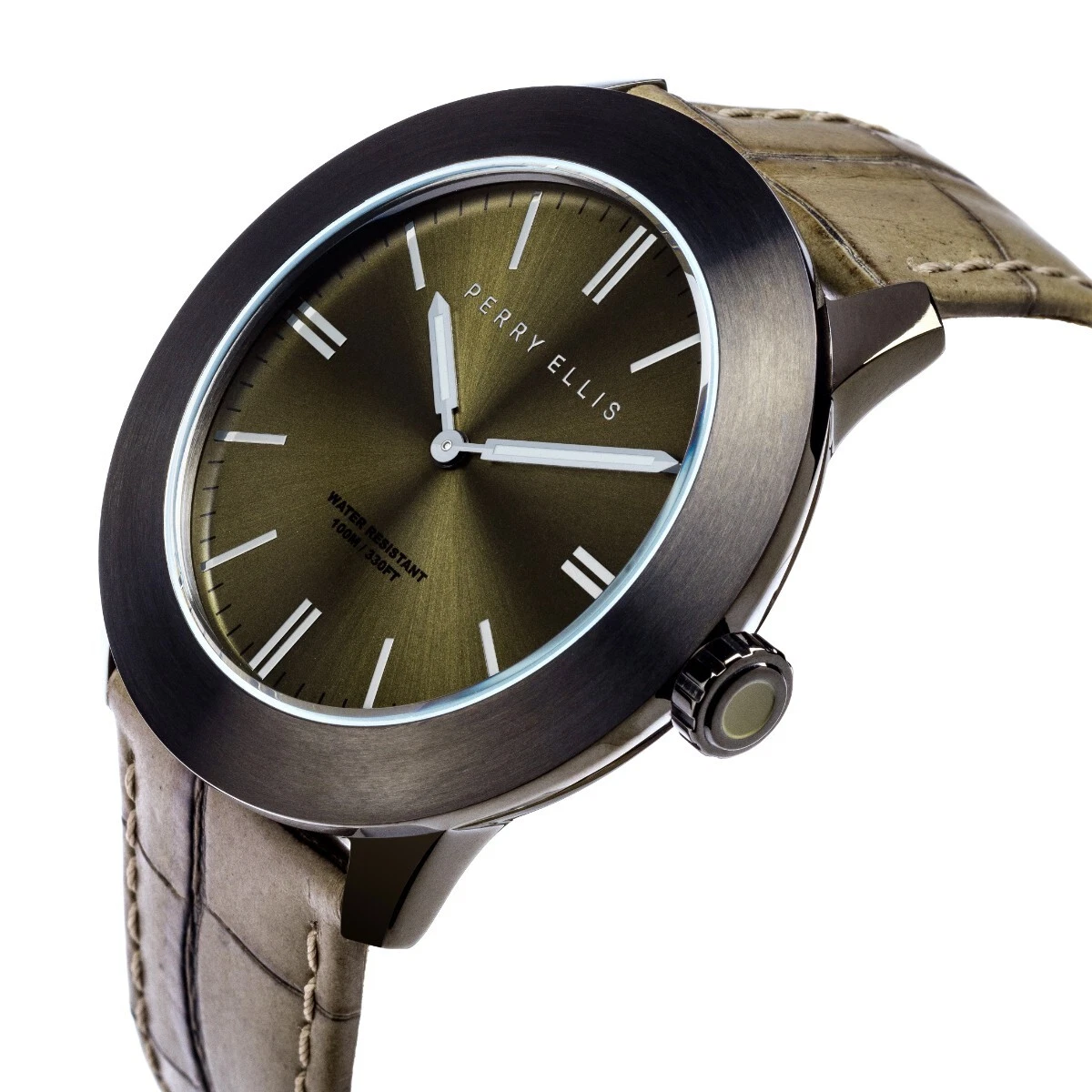 NEW Perry Ellis 42mm Slimline Gunmetal SS 100M WR Mens Watch PEW07006-01 Invicta