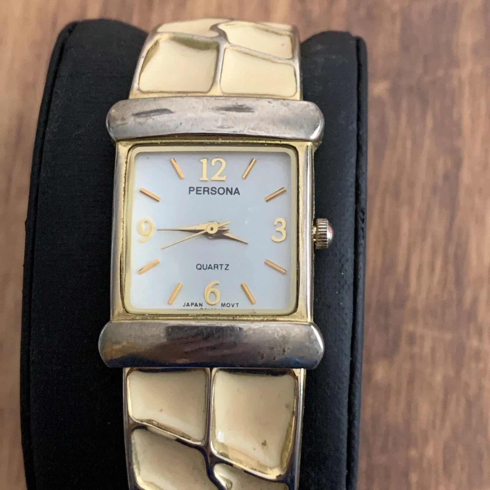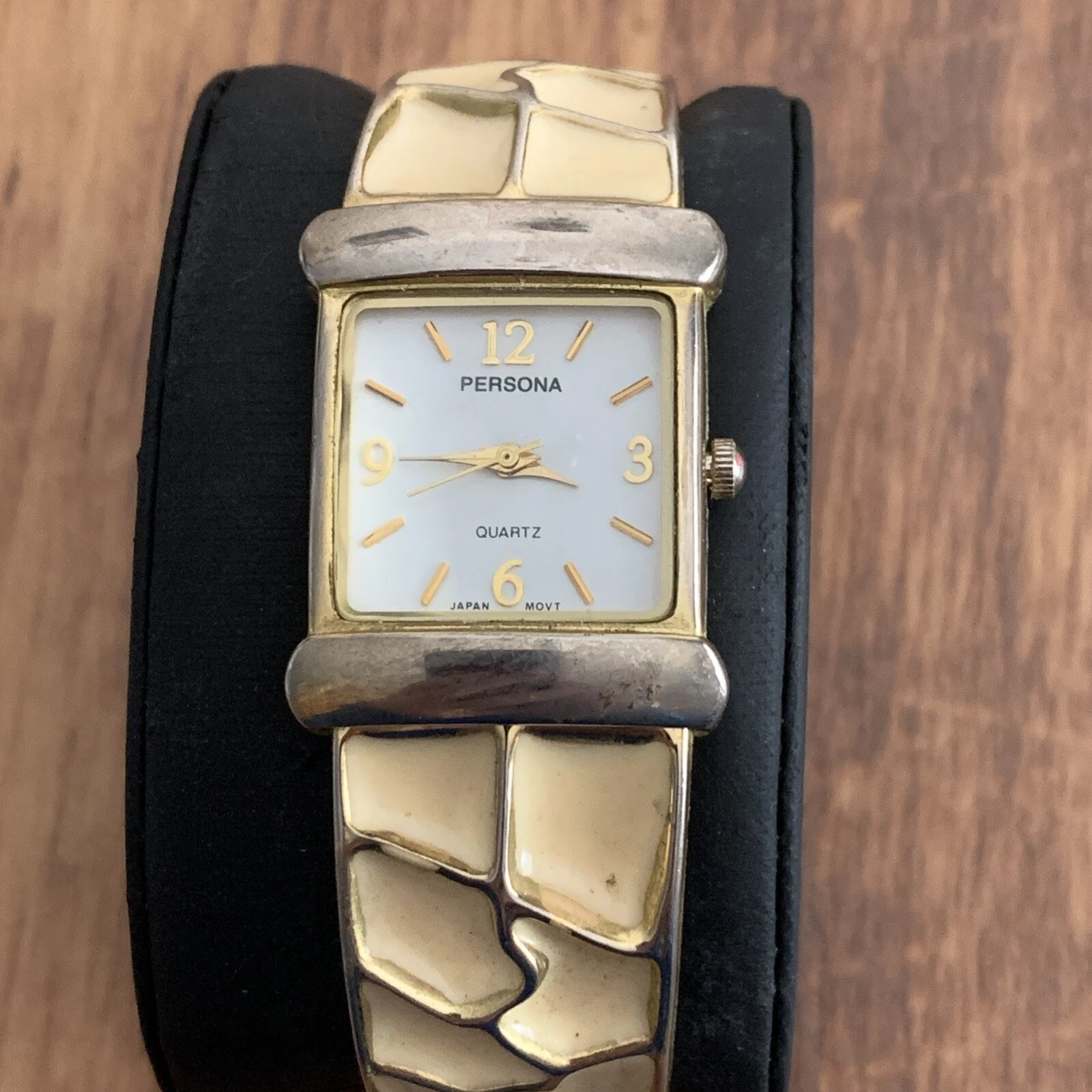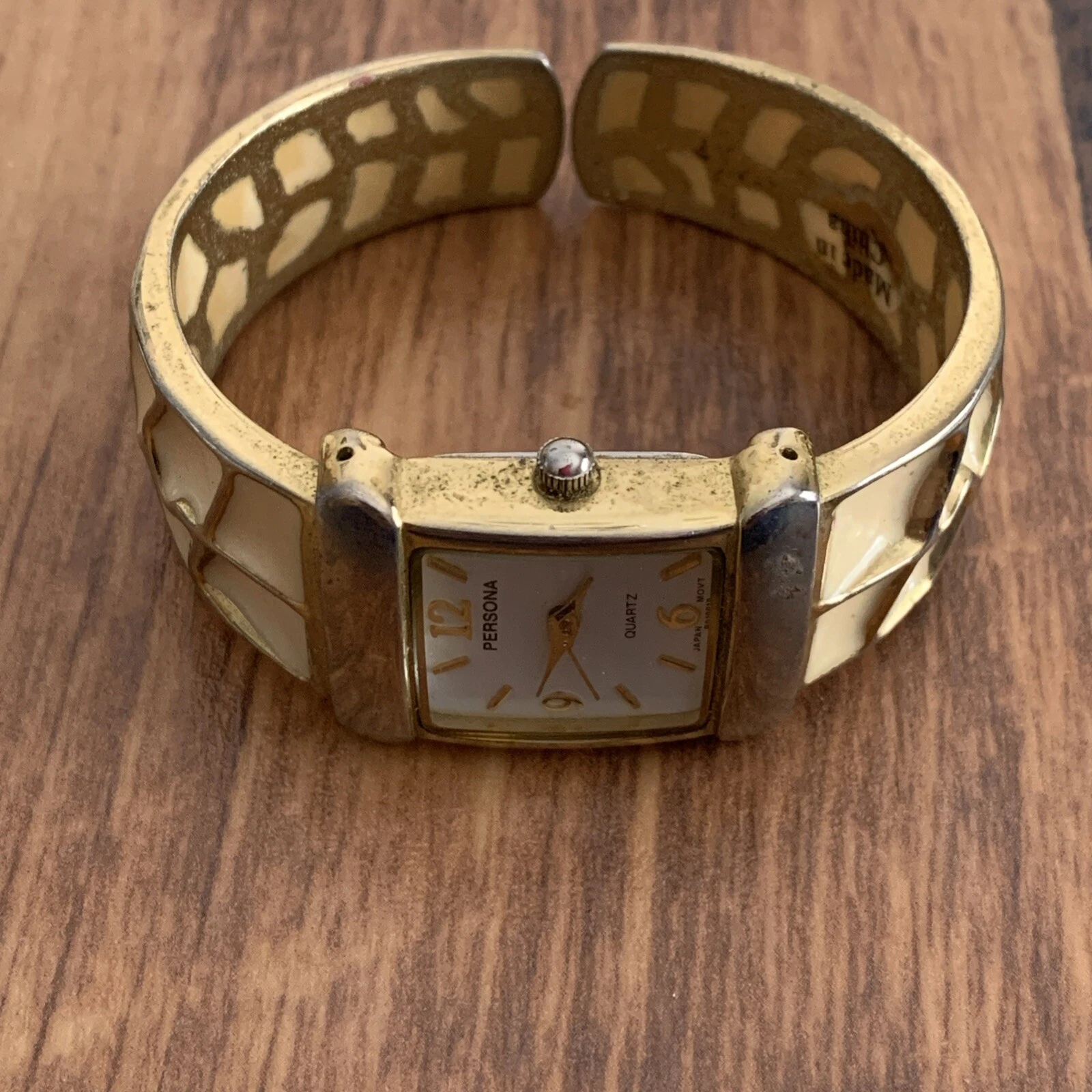 Persona Watch Cream Ans Gold Cuff Band White Face Working