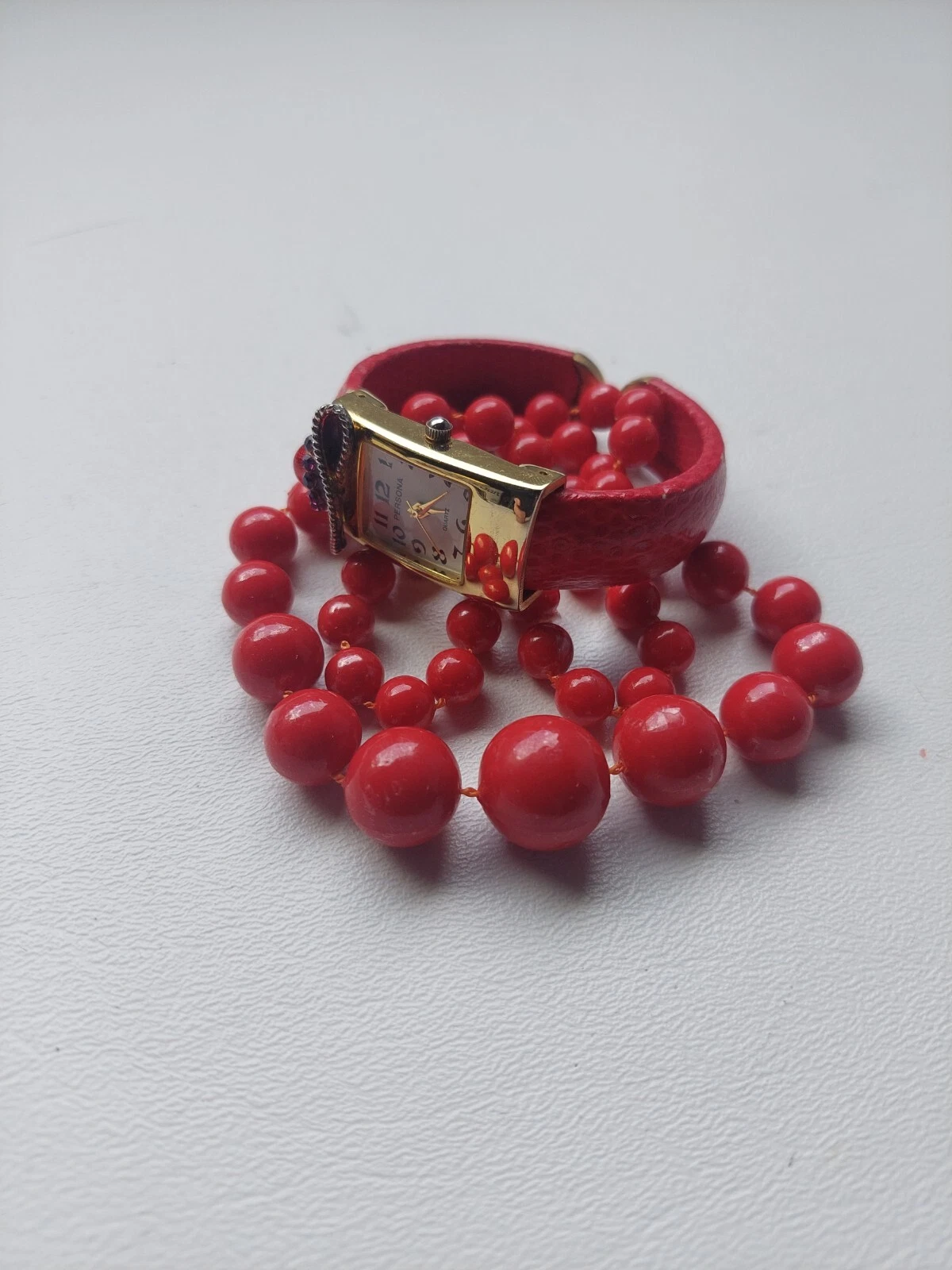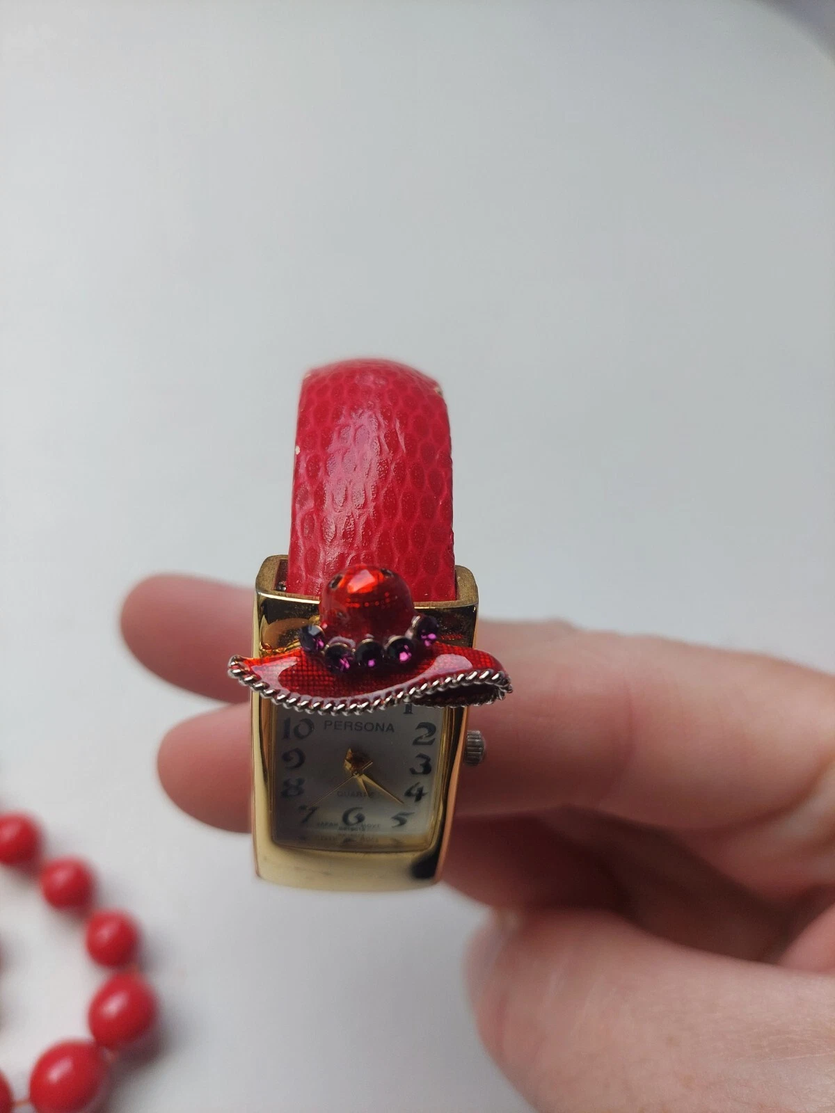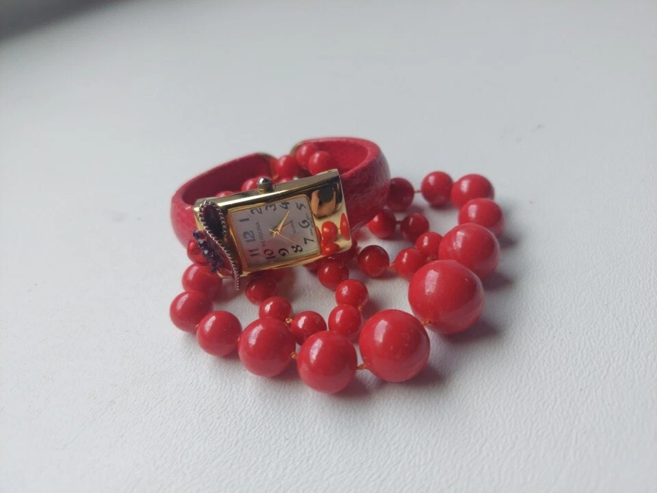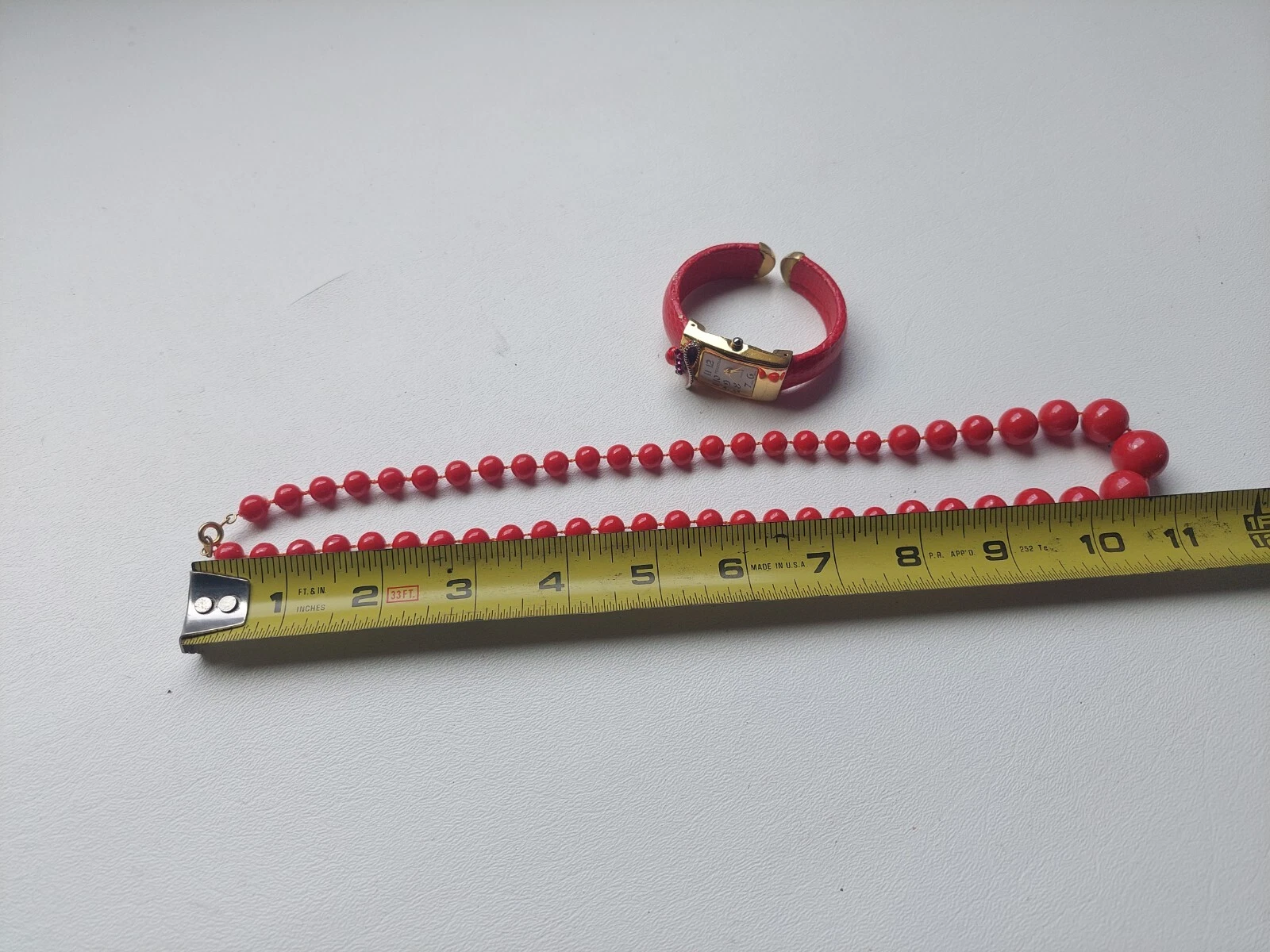 Red Hat Society Jewelry Womens Wrist Watch Japan Quartz & 11" Beaded Necklace