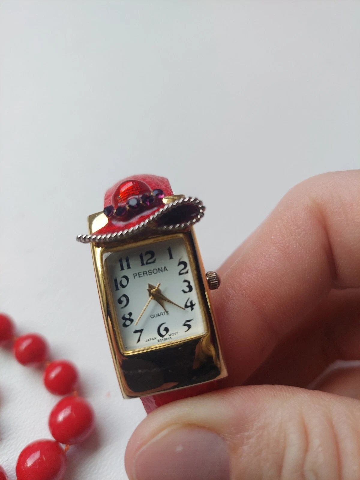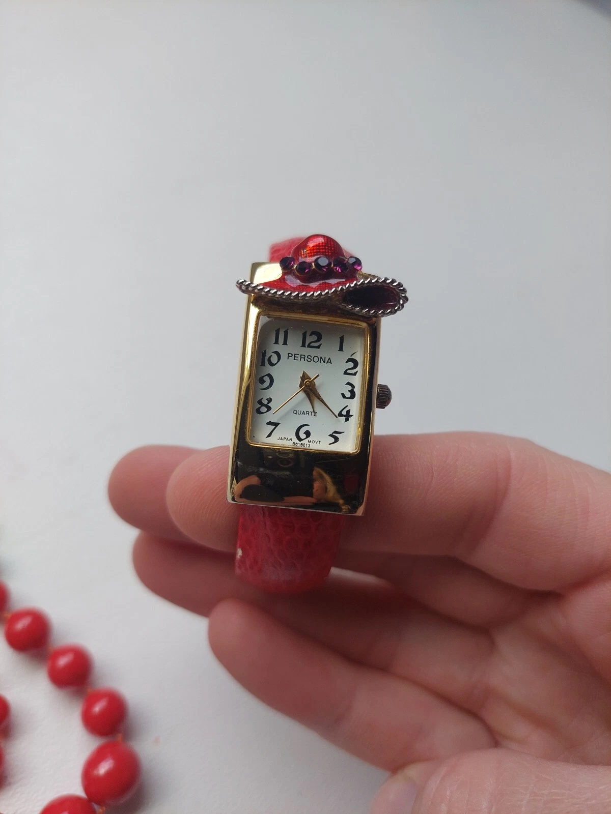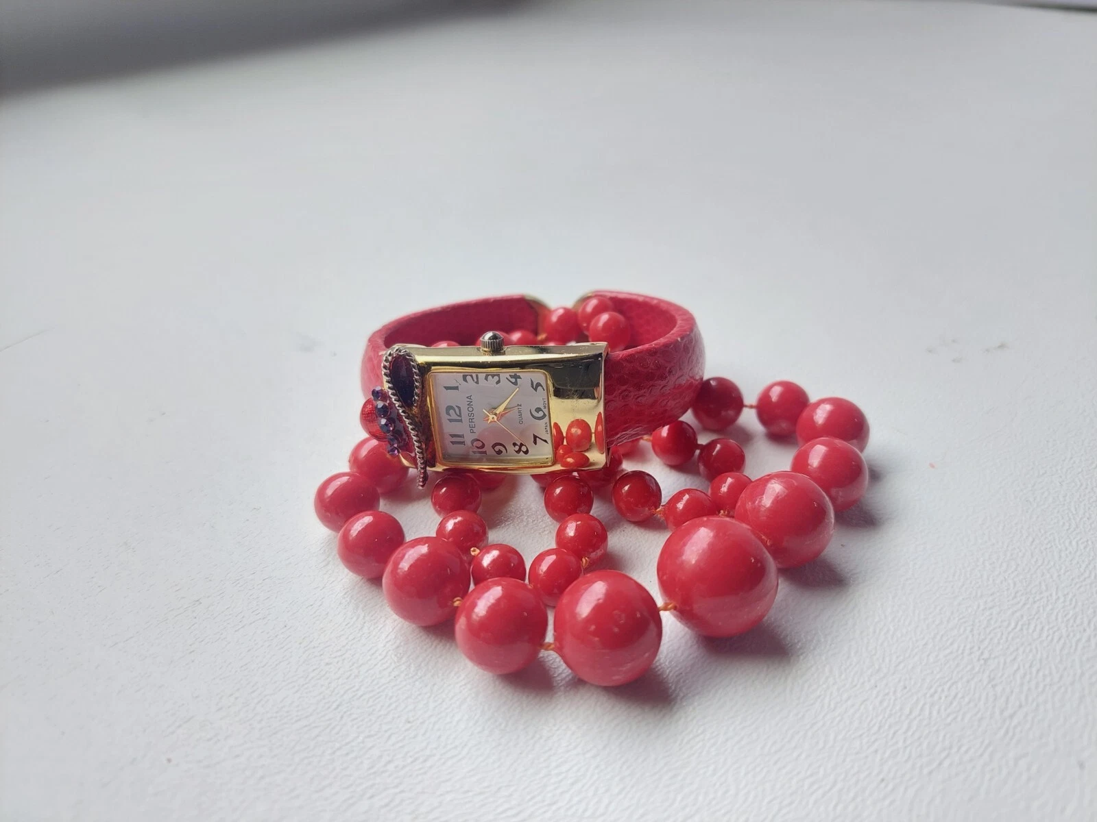 Red Hat Society Jewelry Womens Wrist Watch Japan Quartz & 11" Beaded Necklace