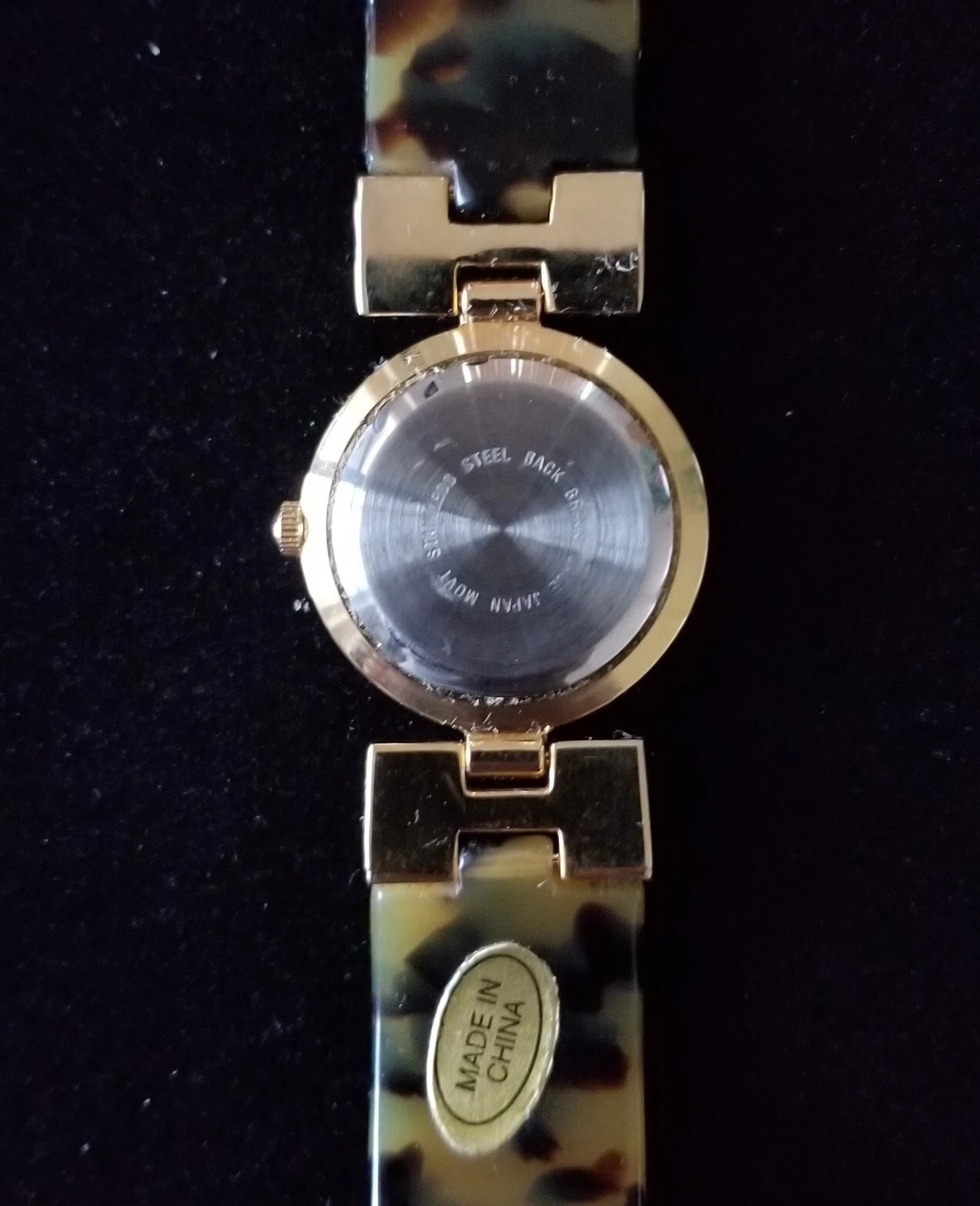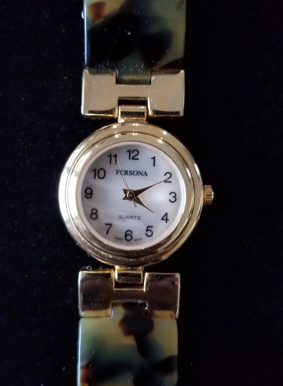 Persona Gold Tone Watch MOP Face Animal Print Inserts 7" Max Size New Battery