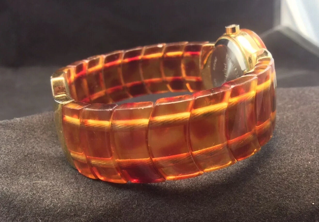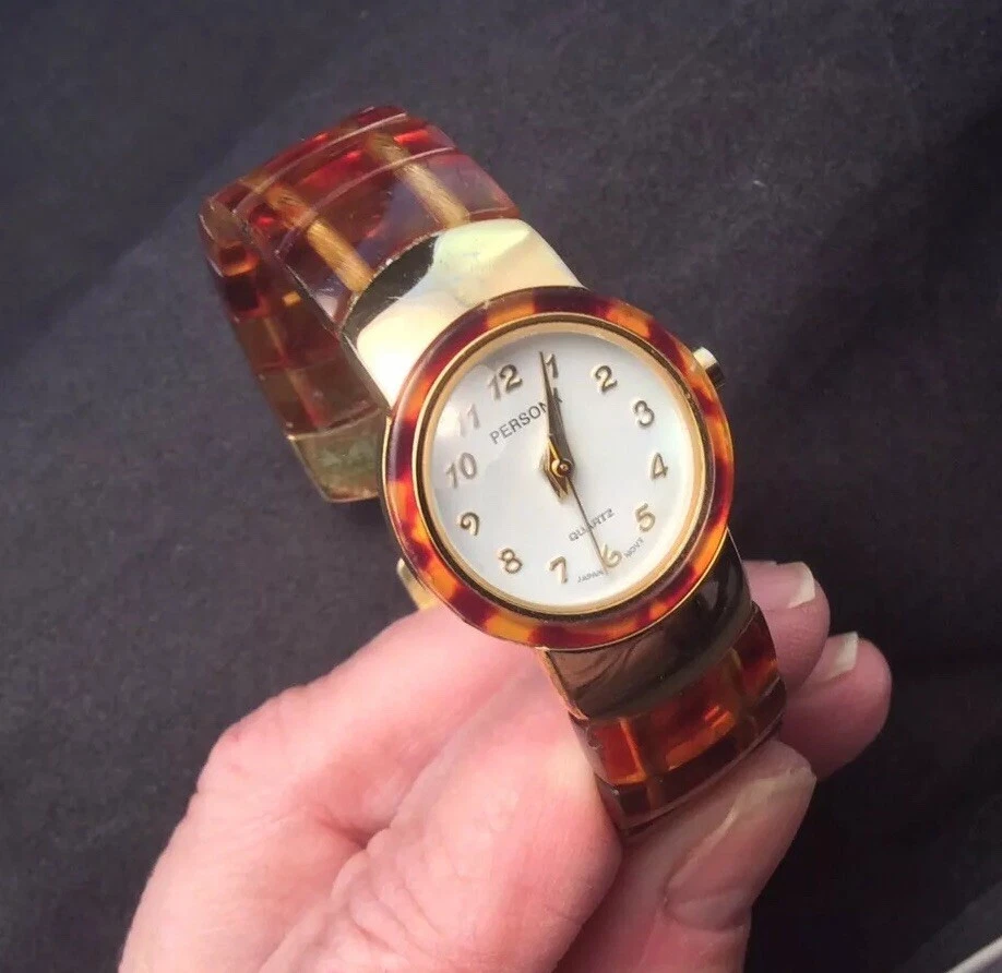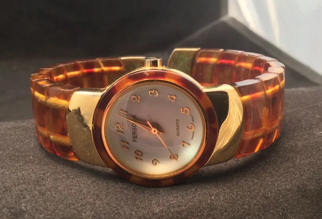 Pretty Persona Gold Tone Quartz Watch With Faux Tortoise Shell Design Cuff