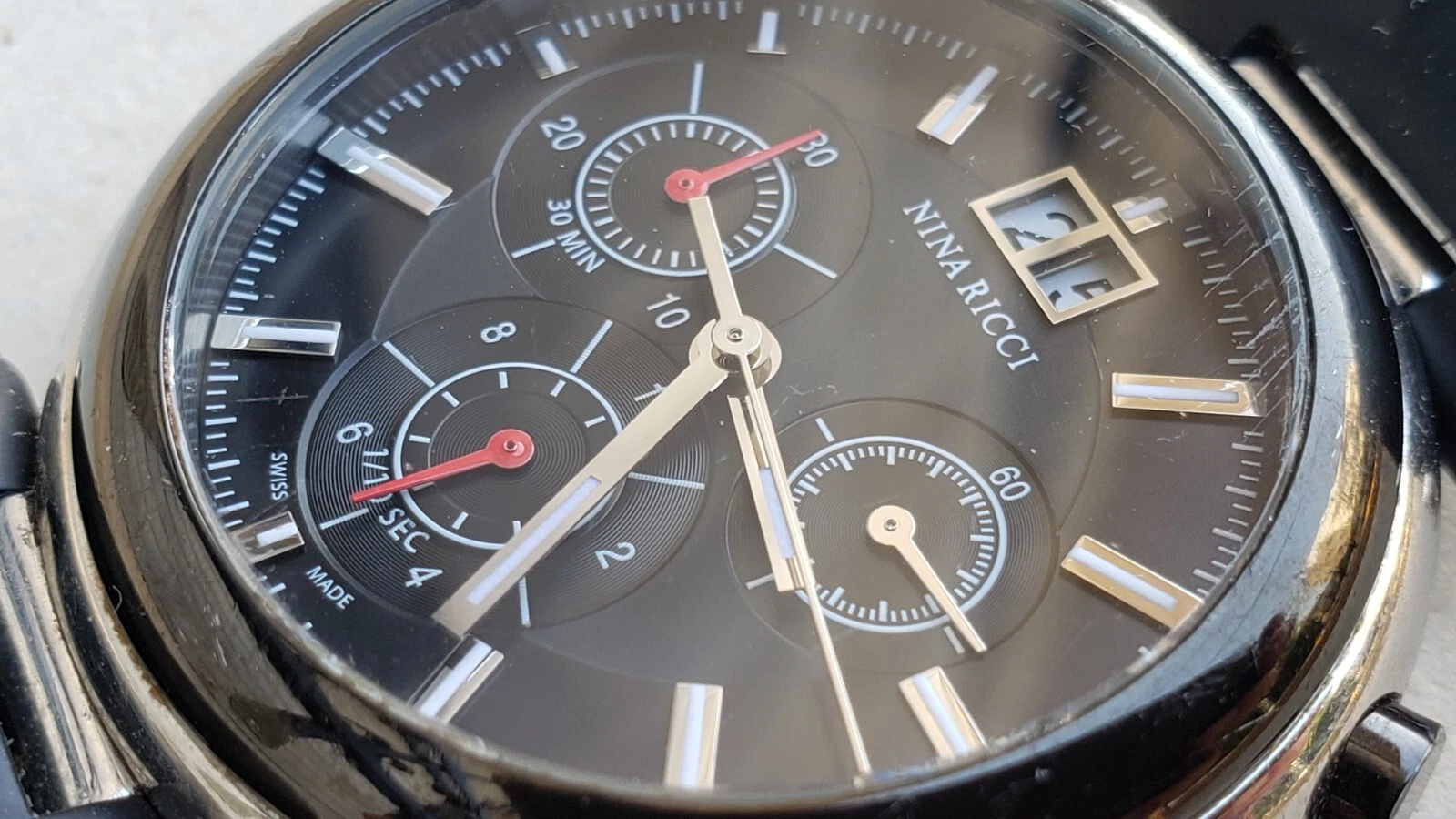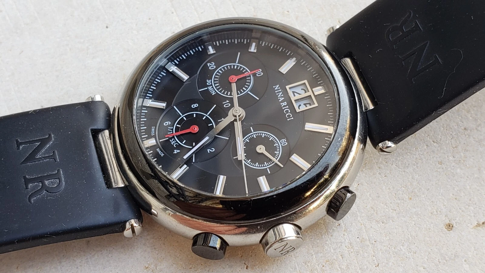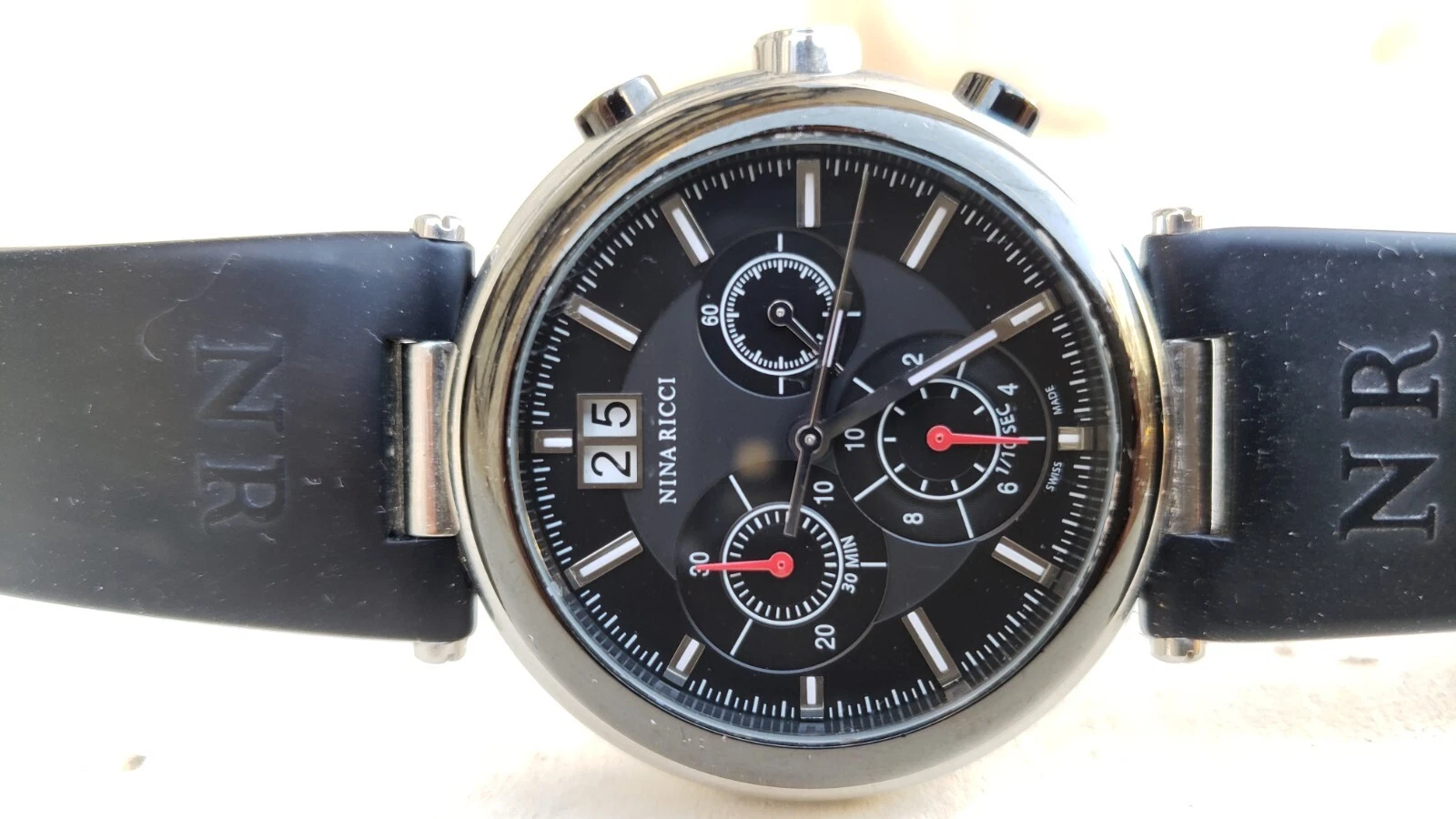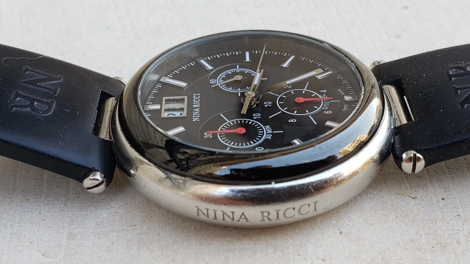 NINA RICCI CHRONOGRAPH BIG DATE STEEL QUARTZ 40MM MENS WATCH