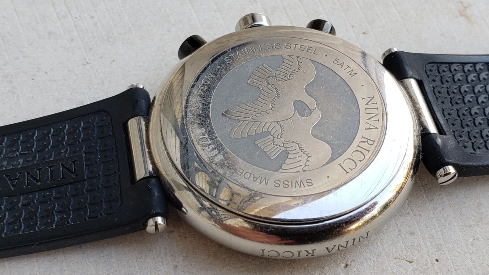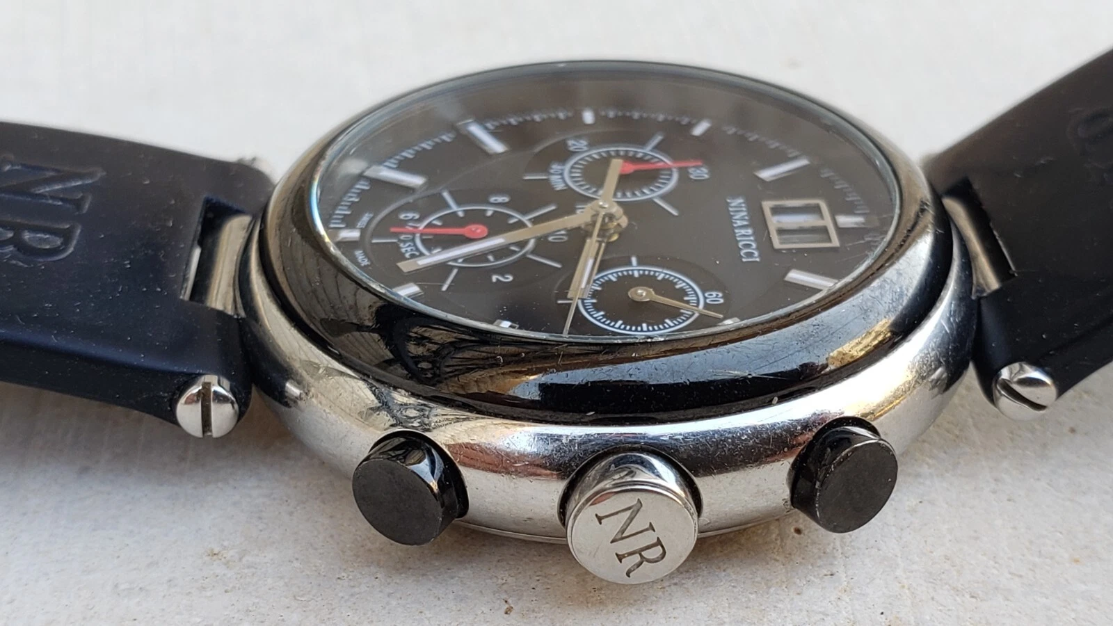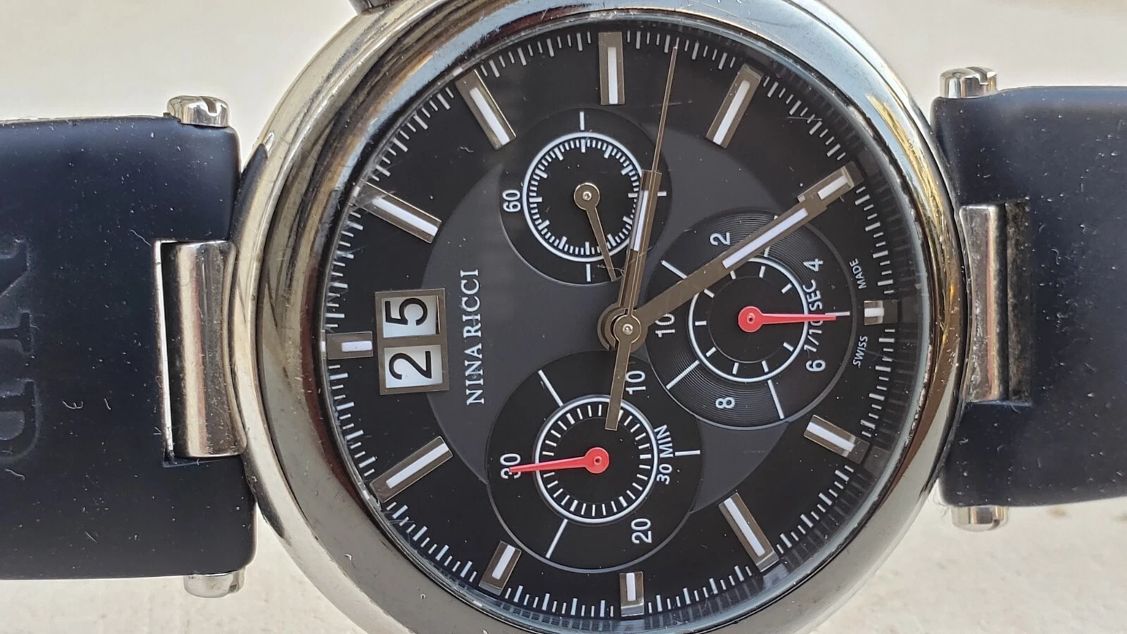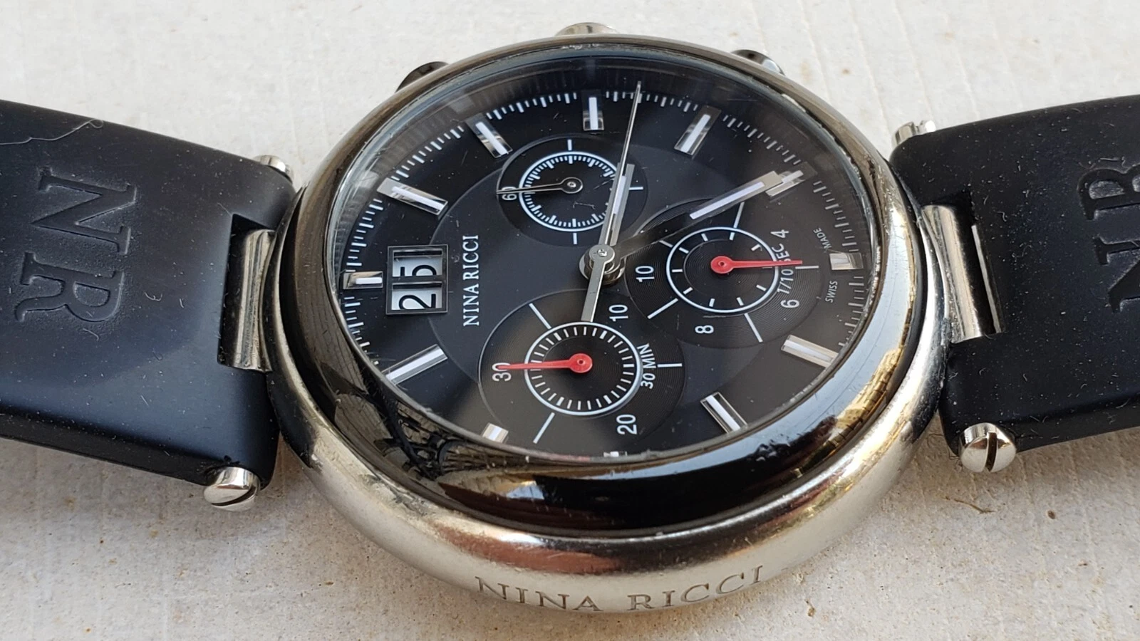 NINA RICCI CHRONOGRAPH BIG DATE STEEL QUARTZ 40MM MENS WATCH